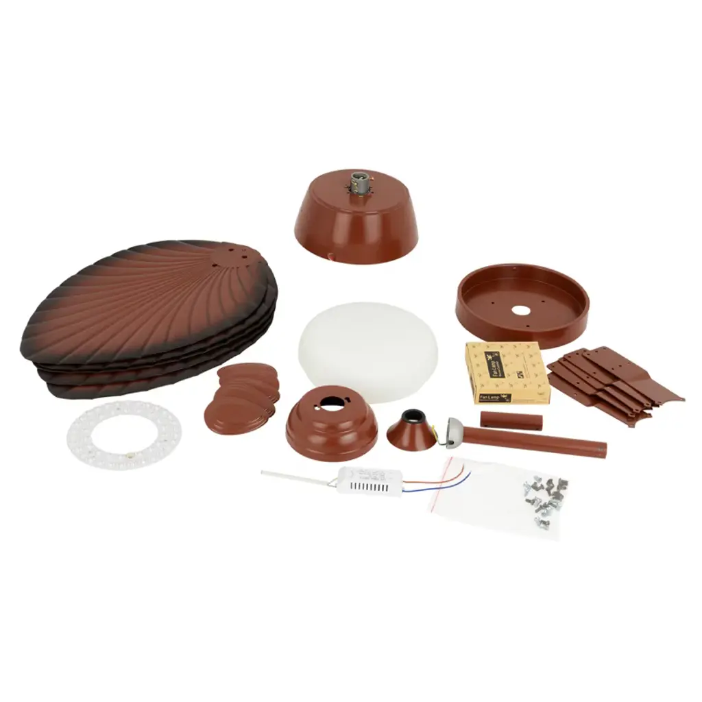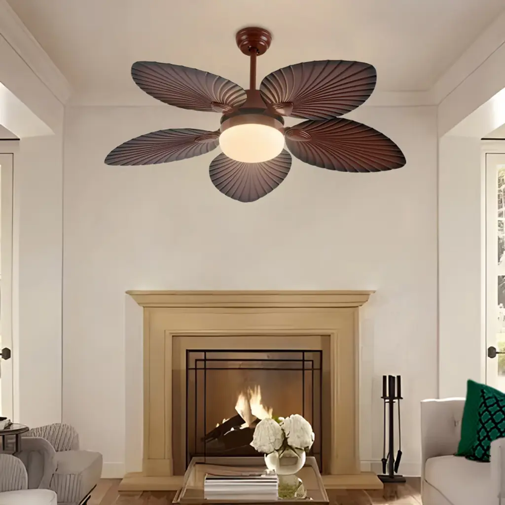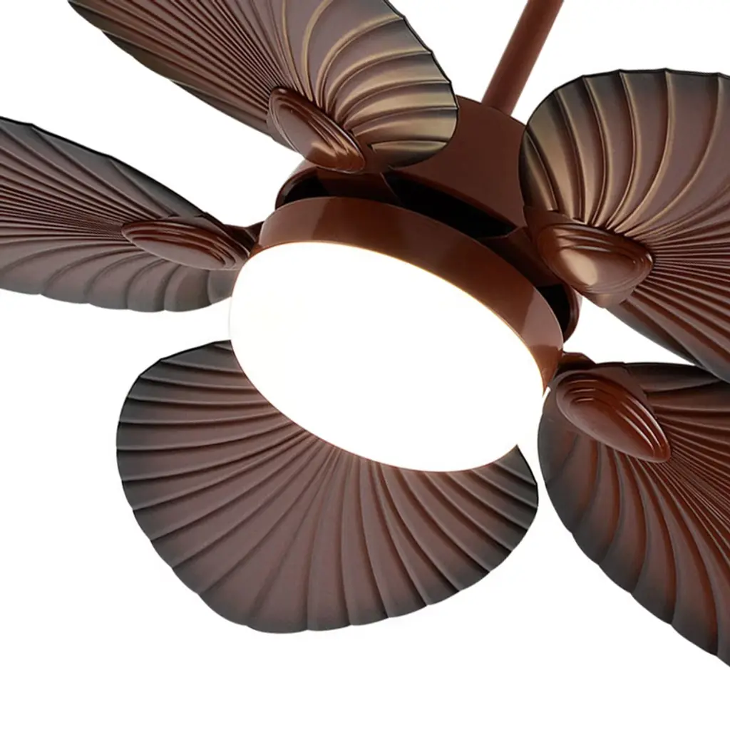 This elegant ceiling fan light features a stunning, leaf-blade design that enhances any home decor. It combines a powerful 6-speed fan with a versatile, energy-saving LED light, offering three color temperatures (3000K-6000K) to create the perfect warm or bright atmosphere. Enjoy year-round comfort with reversible airflow for summer cooling and winter heat circulation. Operated by a convenient remote control, this quiet (<35dB) and durable fixture is an ideal, practical addition to bedrooms, living rooms, and more. Specifications Material: Plastic, Glass, Copper, Iron Process: Baked Paint Color: Brown Style: Modern Efficiency: E Assembly Required: Yes Indoor/Outdoor Usage: Indoor Mounting Type: Ceiling Mounted Control Method: Remote Control(Included), Wall Switch(Not Included) Remote Control Battery Type: 2* AAA Batteries Remote Control Distance: Within 3m/9.84ft Light Color: Warm, White, Neutral Light Source: LED(Included) Color Temperature: 3000K-4500K-6000K Number of Fan Blades: 5 Timing: 1/2/4H Wind Speed Gears: 6 Noise: <35dB Voltage: 110V Light Power: 2*24W Motor Power: 38W Applicable Area: Within 25m²/269.1ft² Base Diameter: 15cm/5.9in Suspension Rod Length: 10cm/3.97in, 20cm/7.87in Product Overall Length: 132.08cm/52in