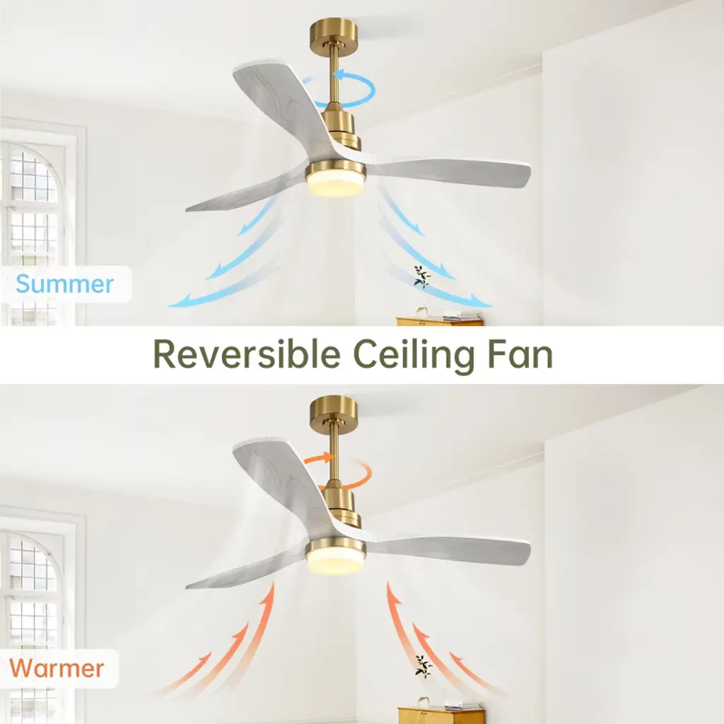 "52 Inch Indoor Decorative Ceiling Fan 52-inch modern wood ceiling fan is simply and beautifully designed to complement any room decor, perfect for those who want to add a touch of sophistication and elegance to their home or outdoor space, suitable for patio, gazebo, living room, bedroom various places. Also features high-quality solid wood leaves that are both durable and long-lasting. Reversible Dc Motor Remote control with forward and reverse two-way rotation function and 6-speed adjustment function. Downward rotation is cool in summer, and reverse rotation in winter makes air flow upward to purify the air. Multifunction Design 52-inch solid wood ceiling fan with low noise, decibels below 35DB, ideal for use in living rooms, bedrooms, corridors, terraces, farmhouses, etc., and can be installed on sloping concrete roofs. Easy to install Most of the functional components have been assembled. You can save on the expensive cost of hiring an electrician and finish the installation alone within an hour."