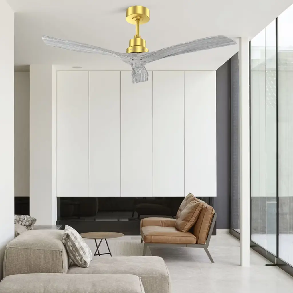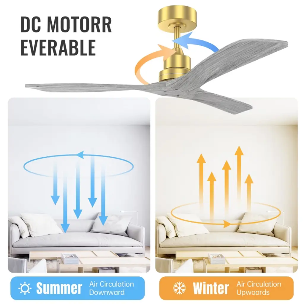 Minimalist Solid Wood Ceiling Fan Three beautiful parasol wood blades with rigorous craftsmanship and a smooth and delicate surface will add a modern design to your space. This is a modern style ceiling fan with light. Stylish in appearance, it can fit with your different decorative styles. Perfect for Patio, Living Room, Bedroom, cafe, etc. High Quality Ceiling Fan This ceiling fan features a high-capacity DC motor, delivering powerful airflow and ensuring years of quiet performance. With its durable and modern design, this 52-inch ceiling fan is perfect for medium to larger-sized rooms ranging from 160-400 sq.ft. Reversible Ceiling Fan Reversible DC Motor Quiet Energysaving, Function Includes Forward and Reverse for Summer and Winter 2 Airflow Modes, Cooling In Summer and Keeping Warm in Winter. 52 Inch Modern Ceiling Fan See the product details page for dimensional drawings. perfect for room sizes up to 25 m2, Restaurant, bedroom, living room, office, loft, balcony, modern living.