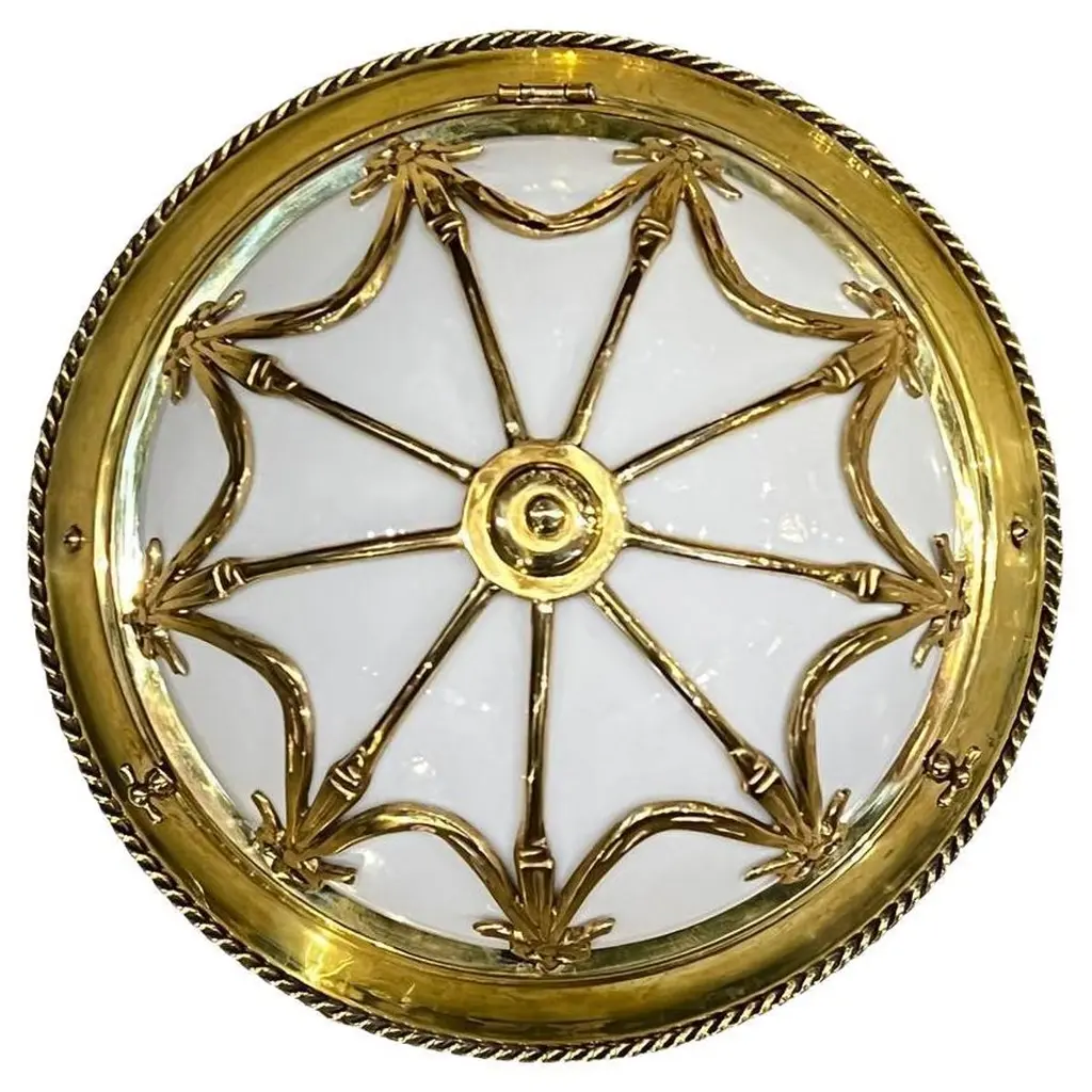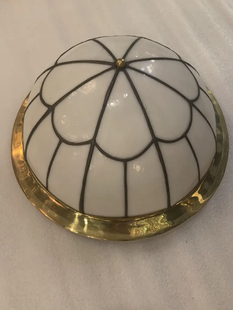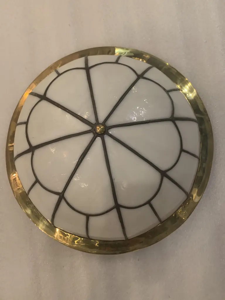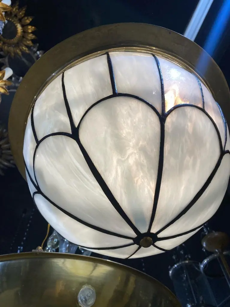 A circa 1930's leaded glass light fixture with 2 interior lights