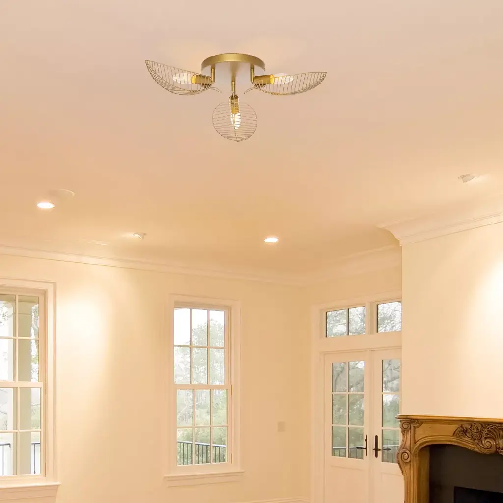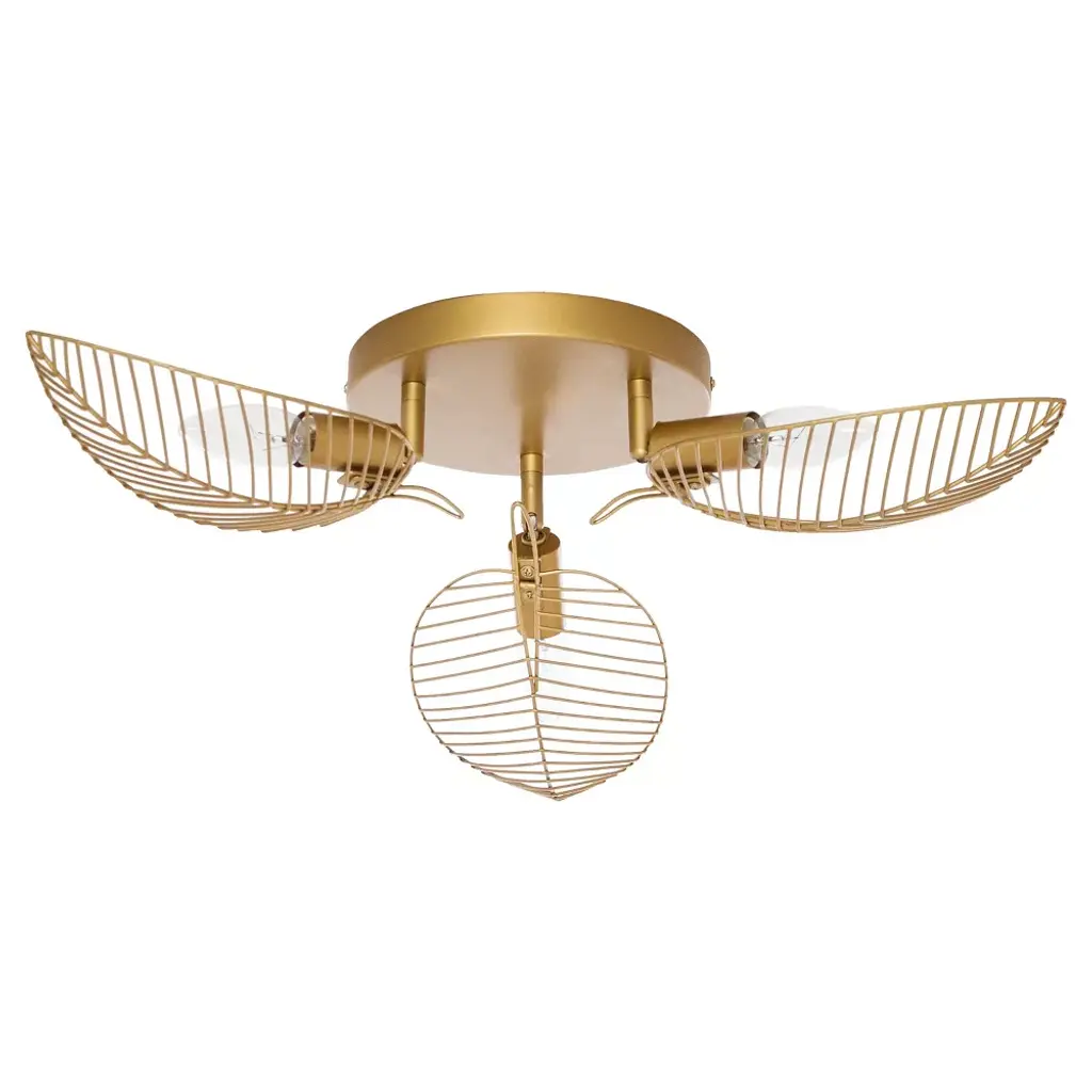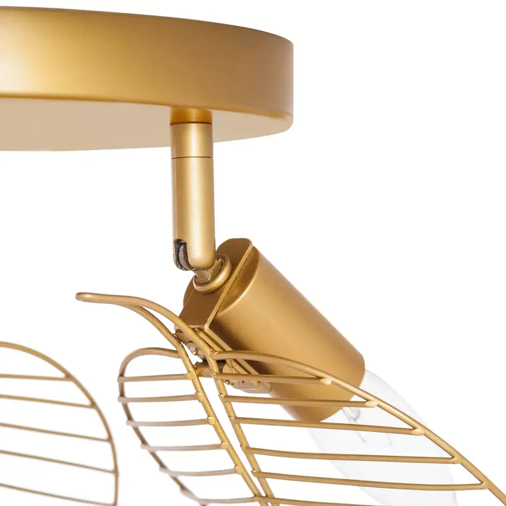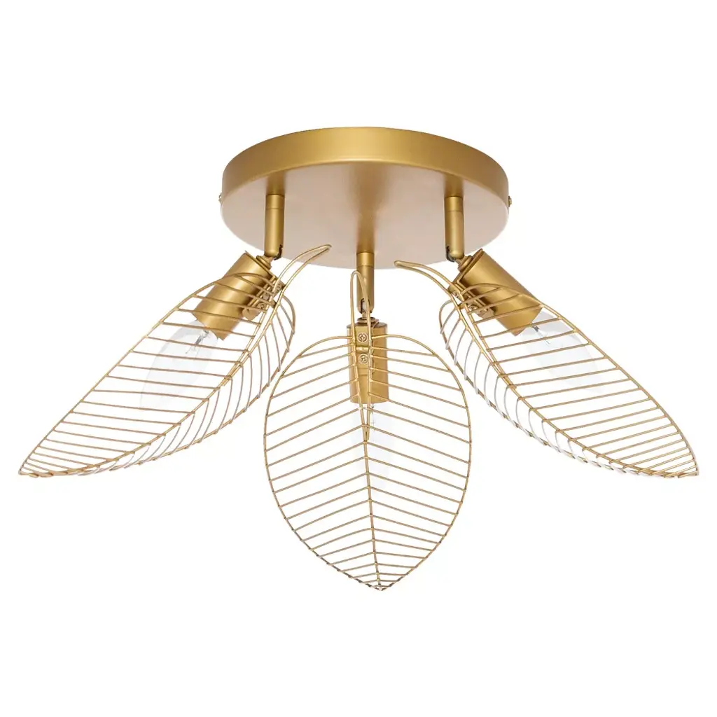 The 24" W Theo Leaf Shade Ceiling Light from River of Goods is sure to make a stunning impression wherever you install it. Made from gold-tone metal, this unique ceiling light showcases a round base and three leaflike shades that can be tilted up or down to adjust the look and lighting. The light requires three 40-watt E12 bulbs (not included) and is LED compatible. An easy pairing with other modern or transitional decor, it's just what you need to fill any space with bright, warm light.