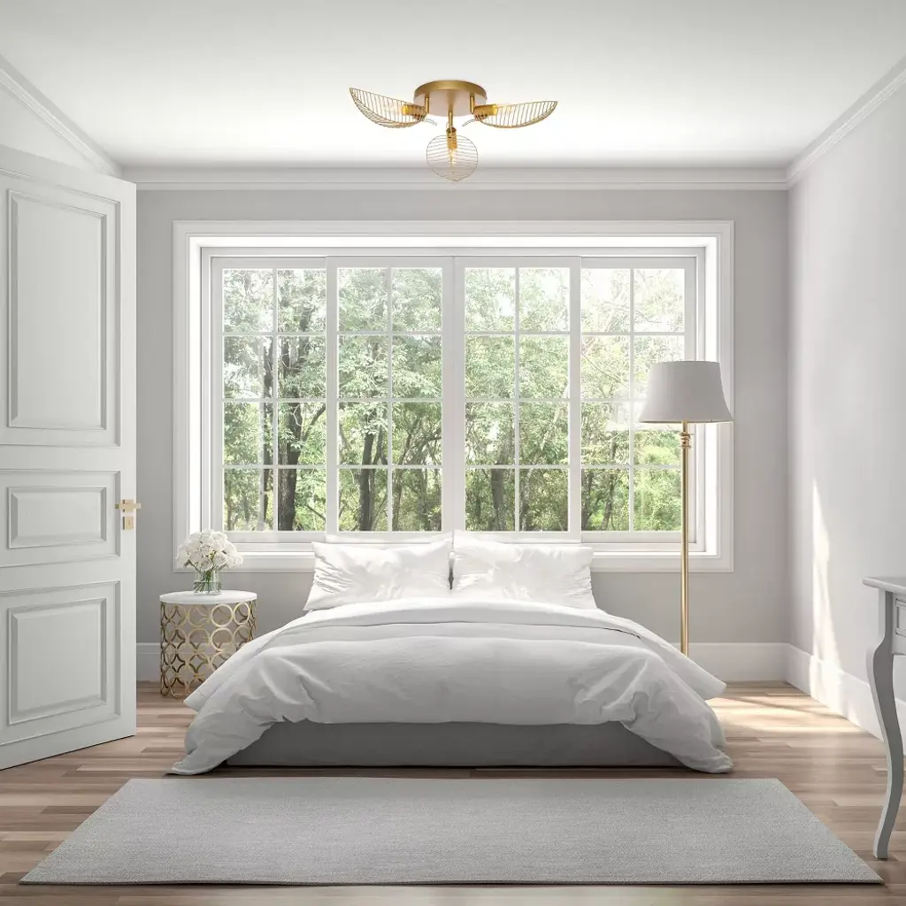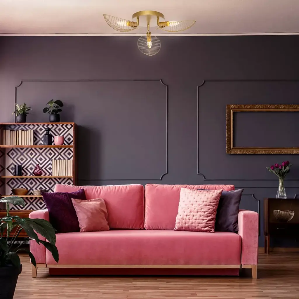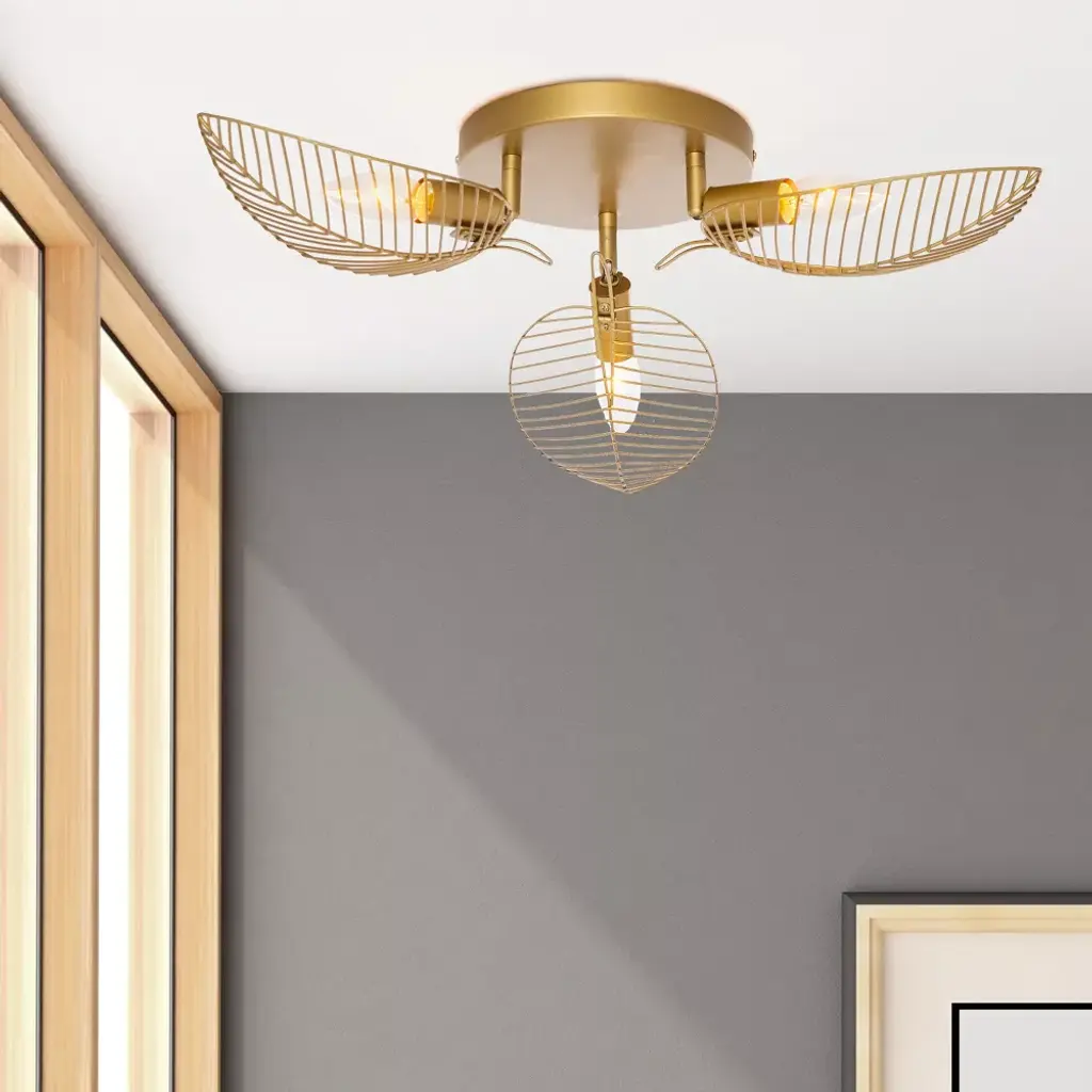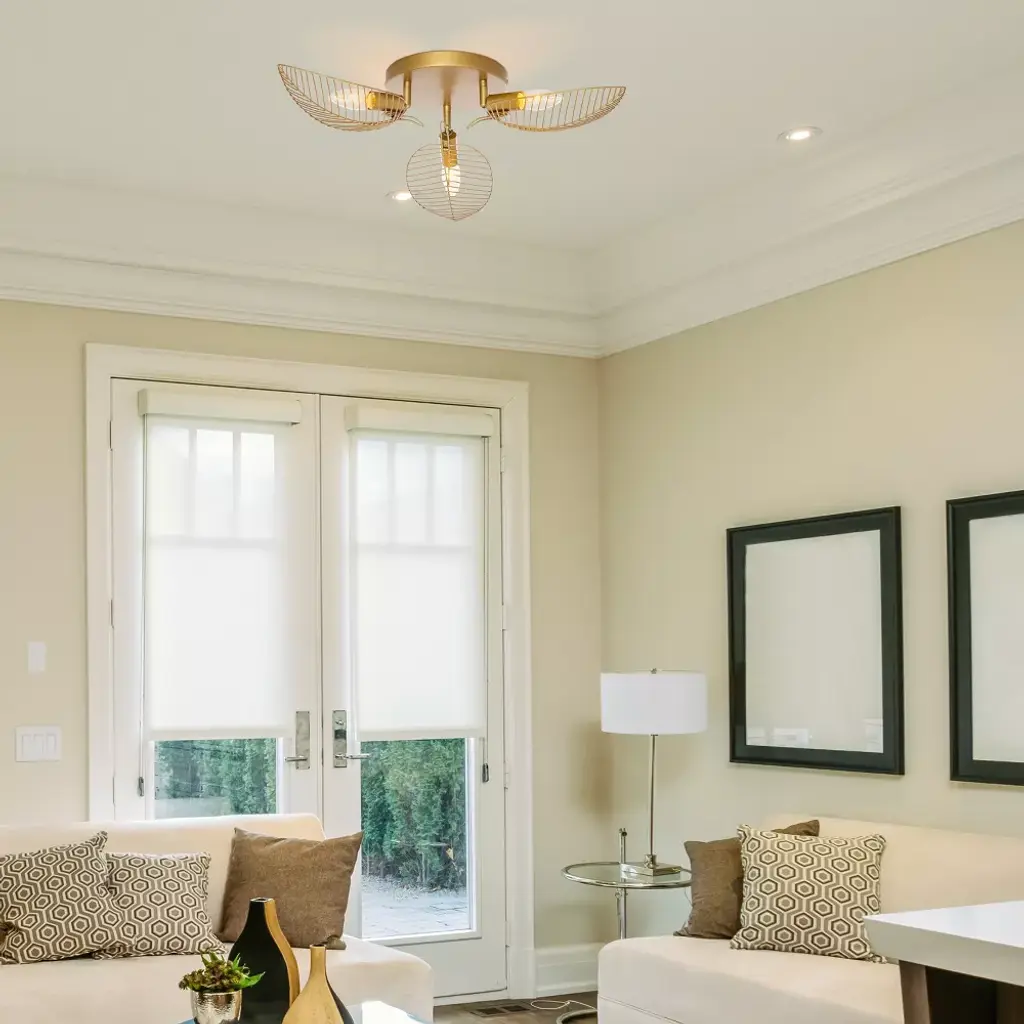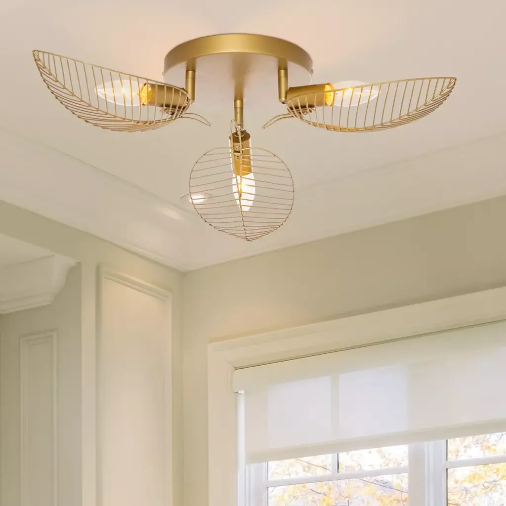 The 24" W Theo Leaf Shade Ceiling Light from River of Goods is sure to make a stunning impression wherever you install it. Made from gold-tone metal, this unique ceiling light showcases a round base and three leaflike shades that can be tilted up or down to adjust the look and lighting. The light requires three 40-watt E12 bulbs (not included) and is LED compatible. An easy pairing with other modern or transitional decor, it's just what you need to fill any space with bright, warm light.