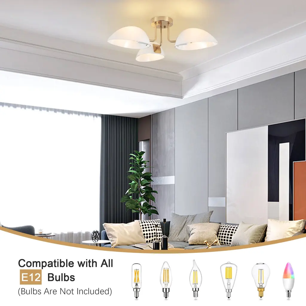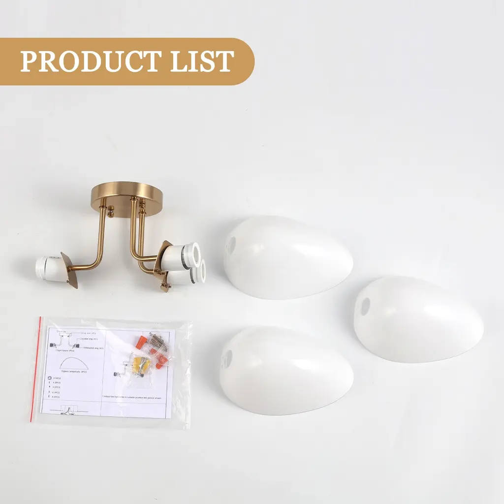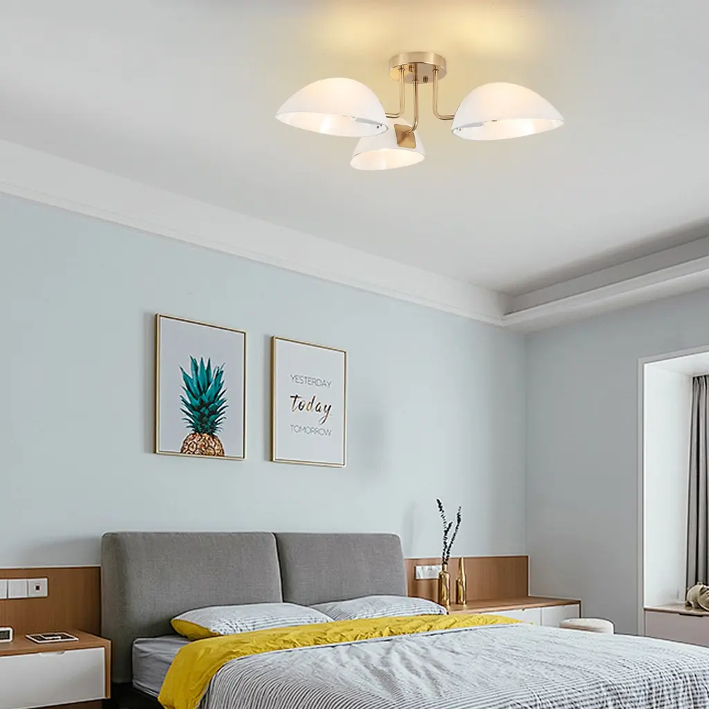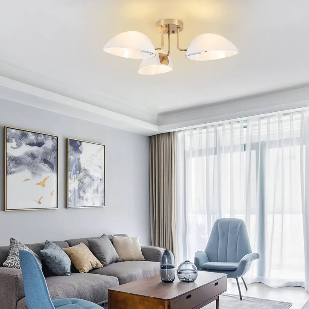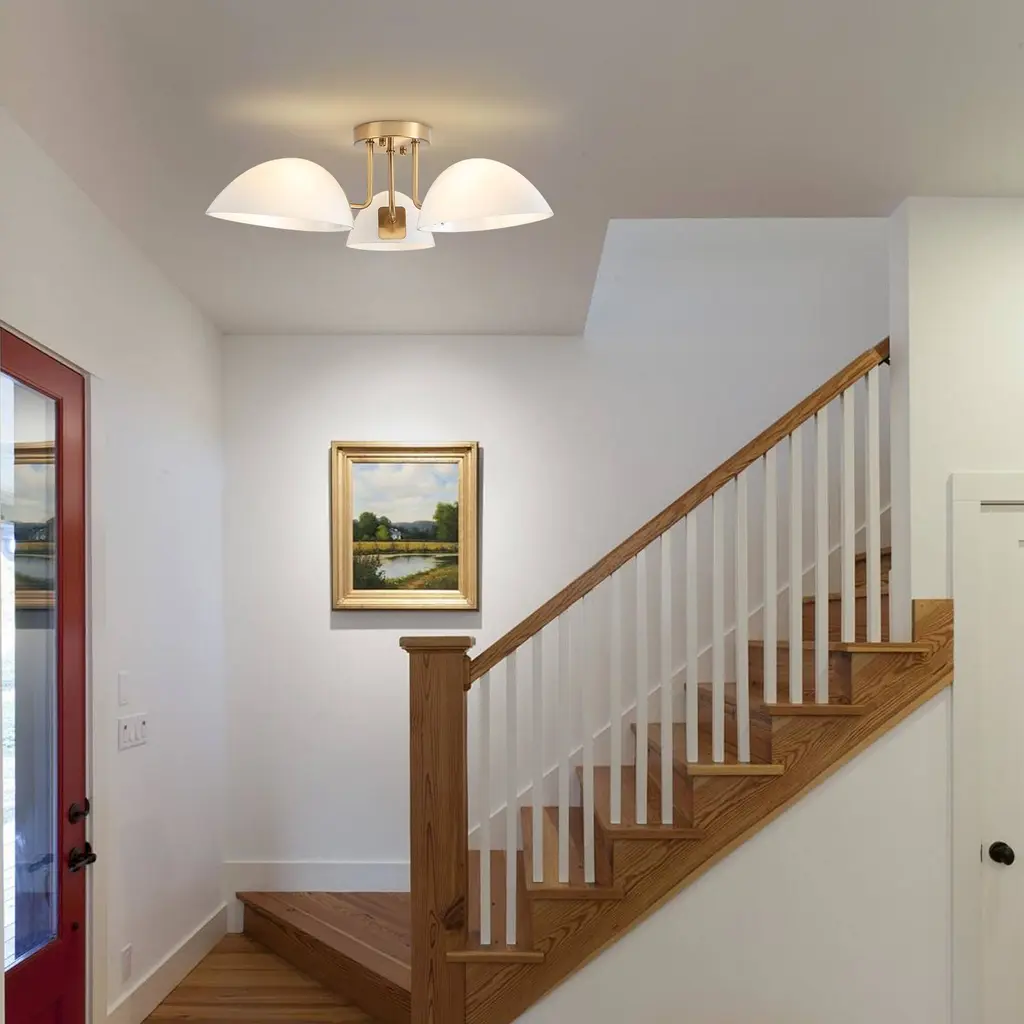 This ceiling light features three light bulbs set in sleek, milk white glass shades, offering a minimalist yet contemporary look. Its semi-flush mount design means the fixture is mounted just slightly below the ceiling, perfect for spaces with lower ceilings or where you want a light that is unobtrusive but still makes a statement. The frosted glass shades provide a gentle, diffused glow, reducing harsh glare and creating a warm, inviting atmosphere.Features: