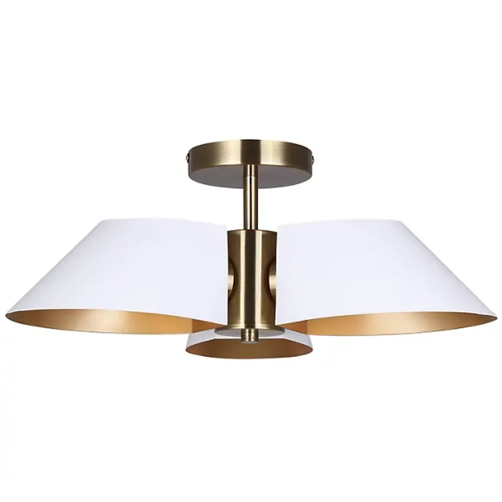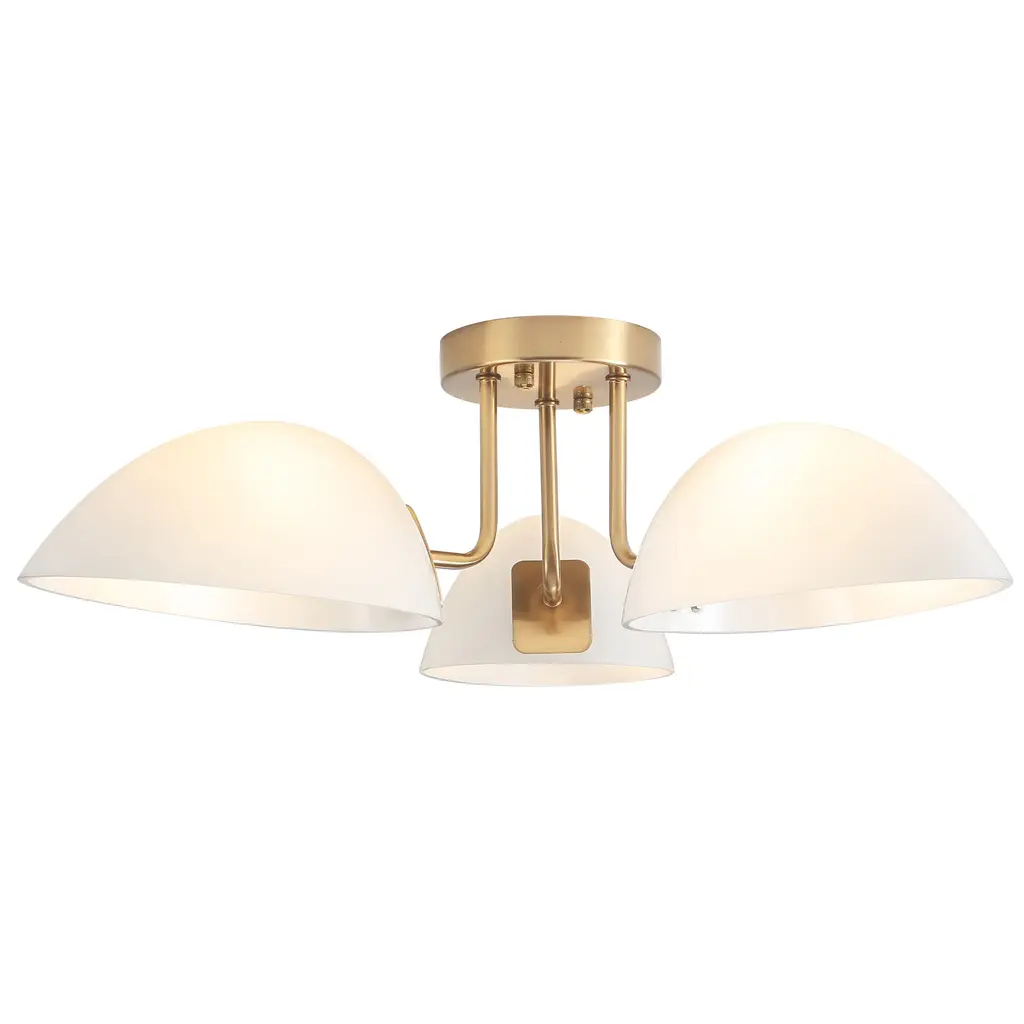 3 - Light Modern Semi Flush Mount Ceiling Light With Milk White Glass - N/a - Brass