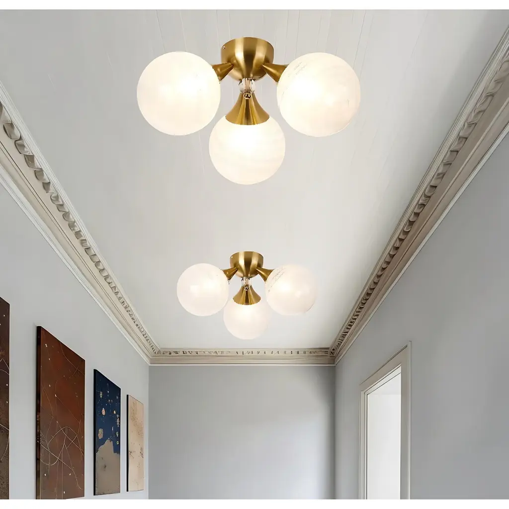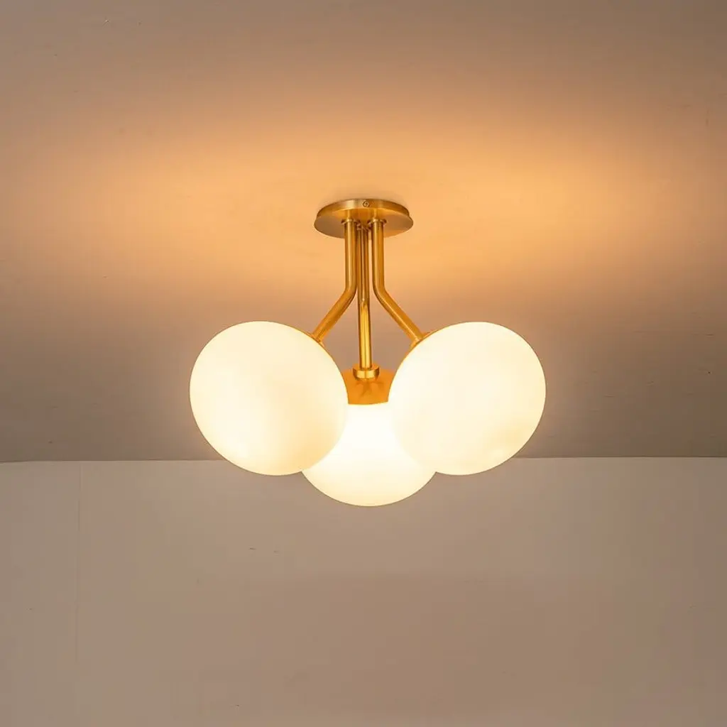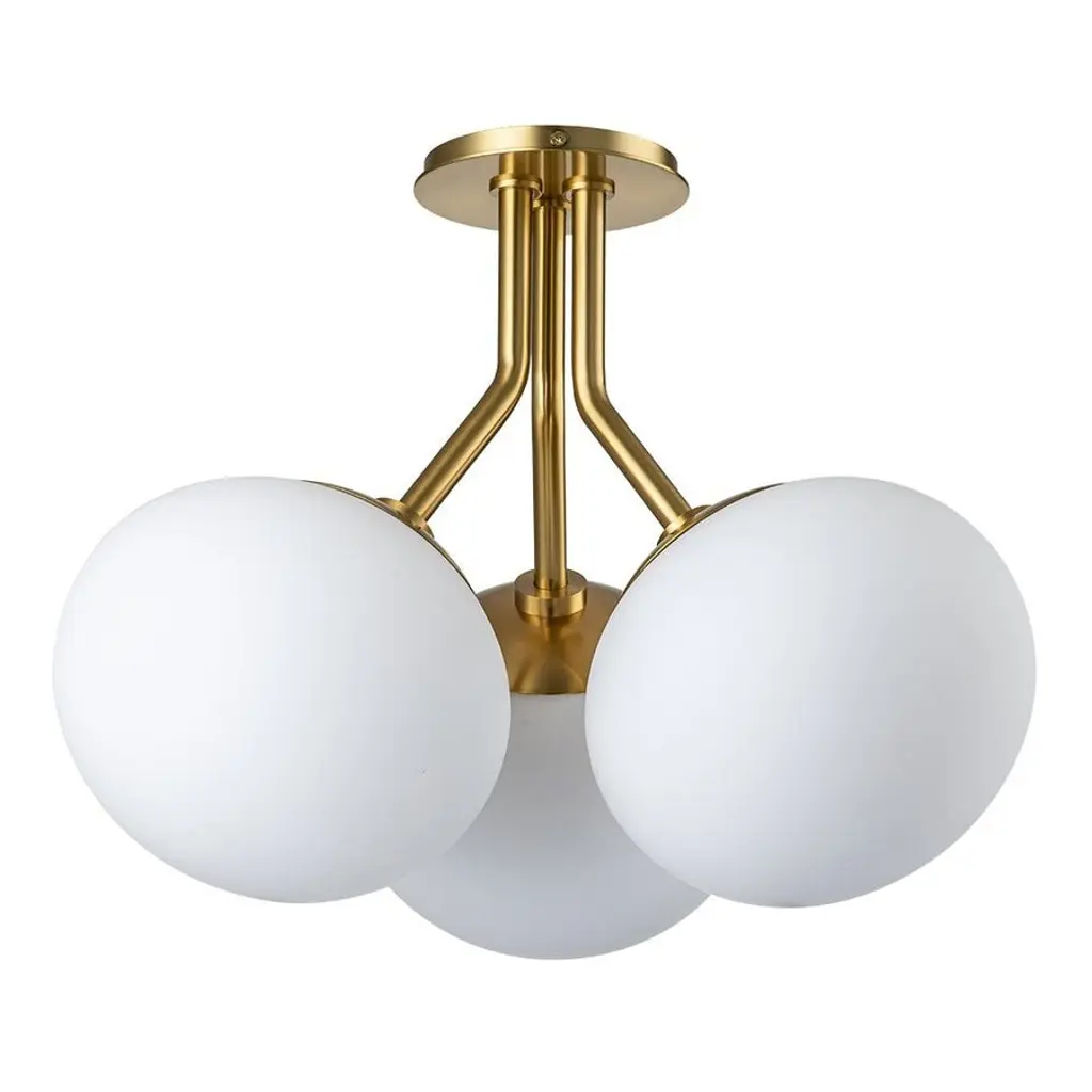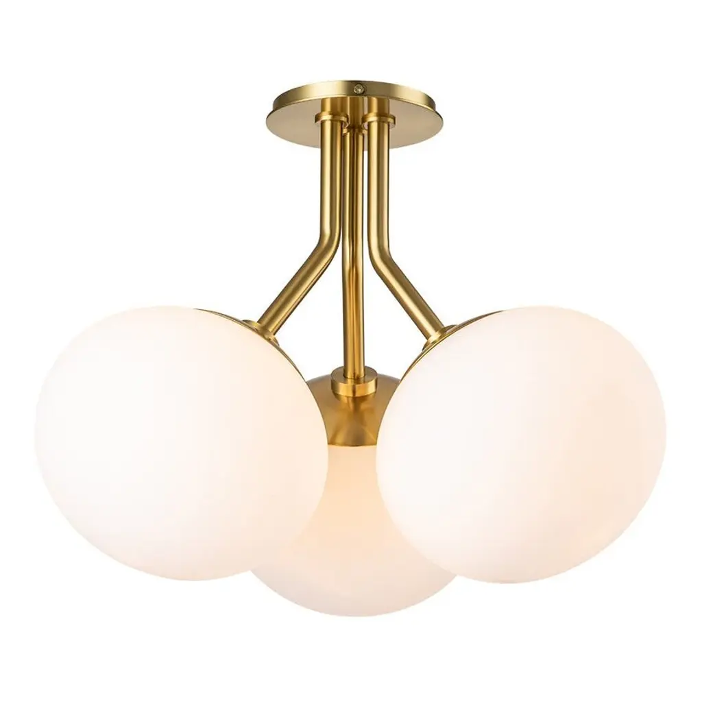 3-Light Opal Glass Globe Semi Flush Ceiling Light - Brass