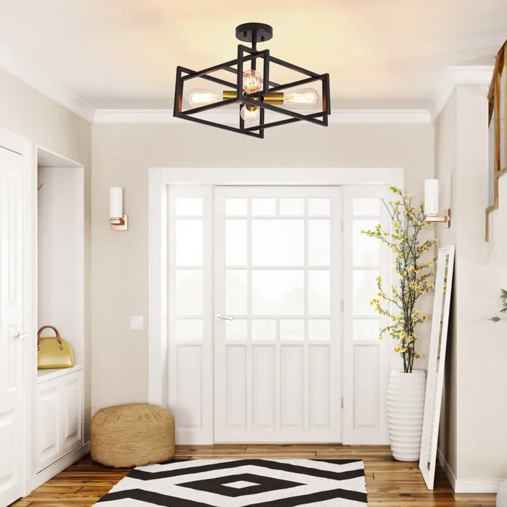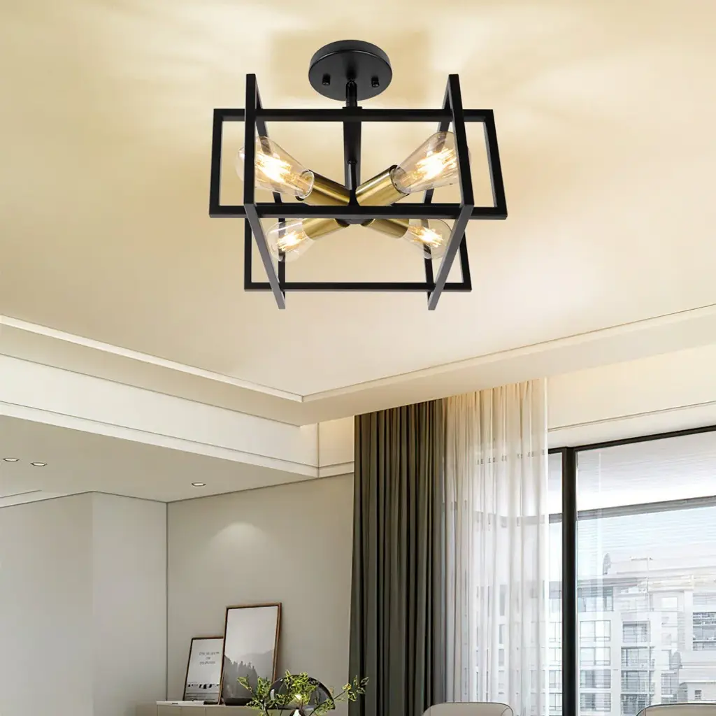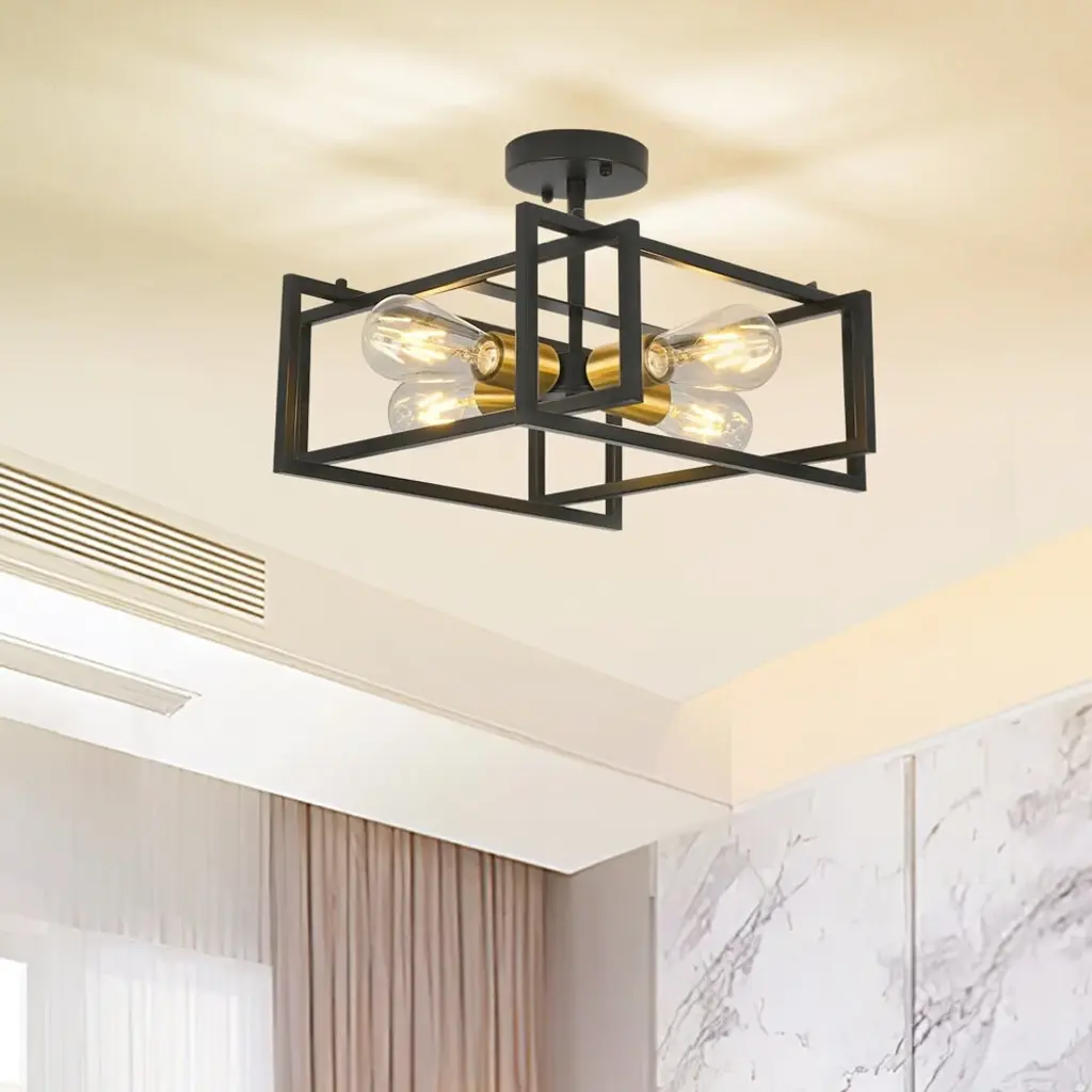 Are you Looking for light fixtures that not only light up your place but also a great decorative element to your house? This black semi-flush mount ceiling light would be a nice pick. The material uses a black metal frame, which has a sturdy and solid effect while retaining a sense of mystery and can be easily disassembled to clean any dead space. Minimalist modern style rectangular open structure fixture design, using cross-shaped light source interface, can easily replace the bulb, multi-directional refraction into any corner in the room, without any blocking light source effect, whether you put into the living room, bedroom or kitchen, can provide a bright view, while adding a touch of charm to your home decor. Features: