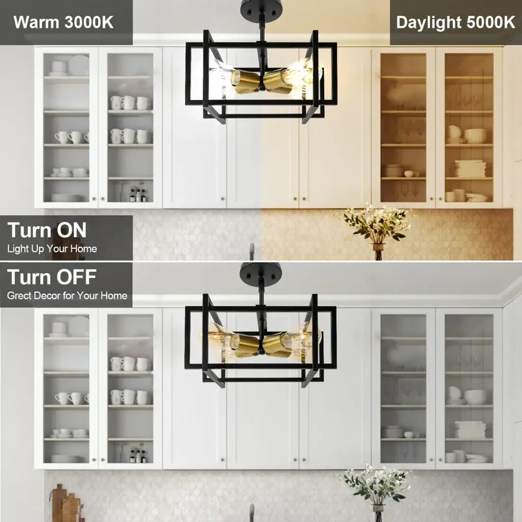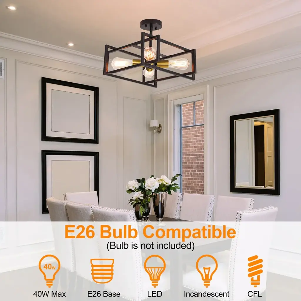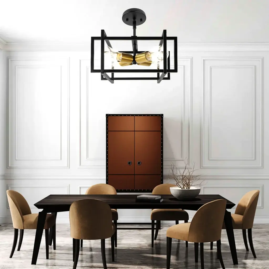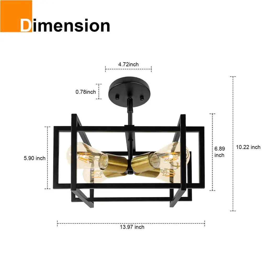 Are you Looking for light fixtures that not only light up your place but also a great decorative element to your house? This black semi-flush mount ceiling light would be a nice pick. The material uses a black metal frame, which has a sturdy and solid effect while retaining a sense of mystery and can be easily disassembled to clean any dead space. Minimalist modern style rectangular open structure fixture design, using cross-shaped light source interface, can easily replace the bulb, multi-directional refraction into any corner in the room, without any blocking light source effect, whether you put into the living room, bedroom or kitchen, can provide a bright view, while adding a touch of charm to your home decor. Features: