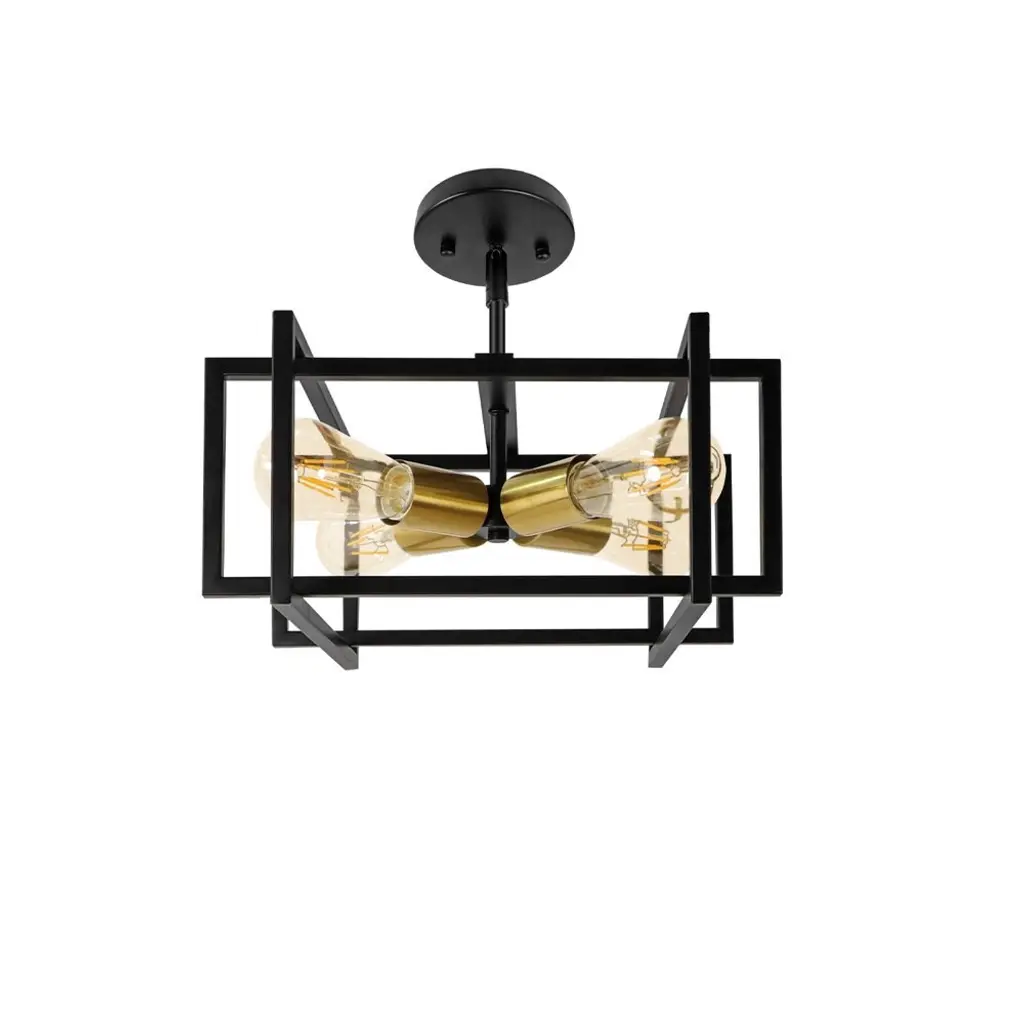 4-Light Farmhouse Semi Flush Mount Ceiling Light Fixture Industrial Ceiling Lamp - N/a - Black Gold