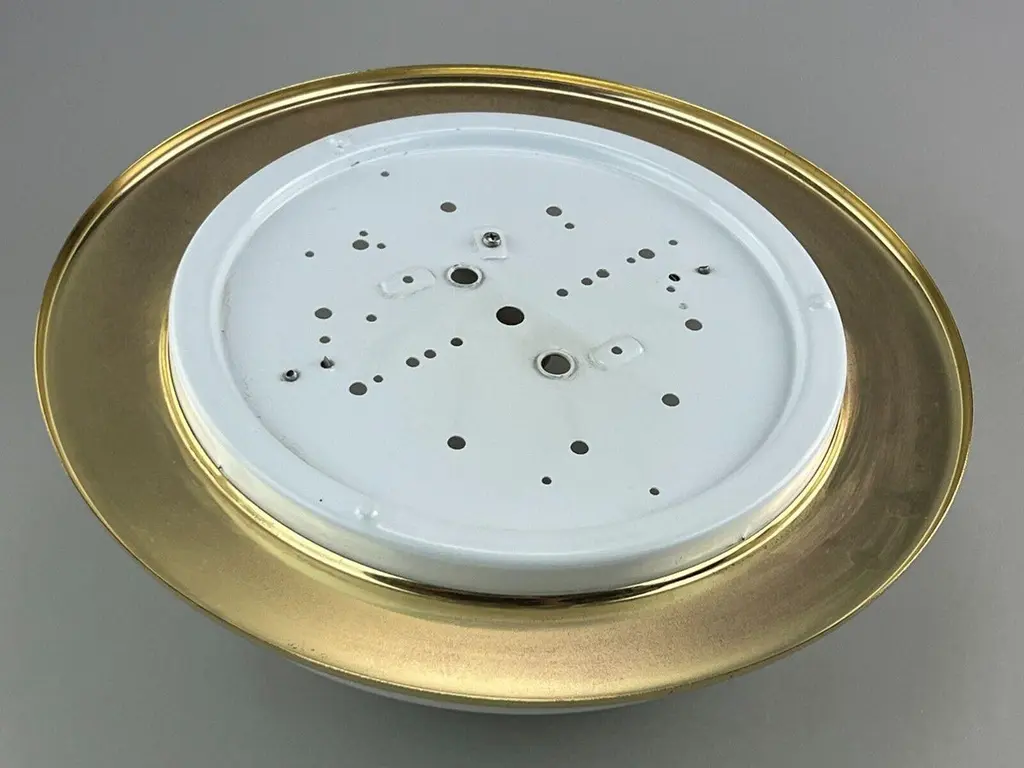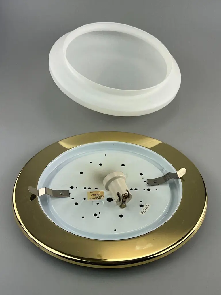 60s 70s Hustadt Leuchten Plafoniere ceiling lamp glass space age designObject: lampManufacturer: Hustadt lightsCondition: goodAge: around 1960-1970Dimensions:Diameter = 34cmHeight = 11cmOther notes:E27 socketThe pictures serve as part of the description!Please keep in mind that we are offering used goods for sale here - they are notnew goods - this means that the items may show signs of wear!