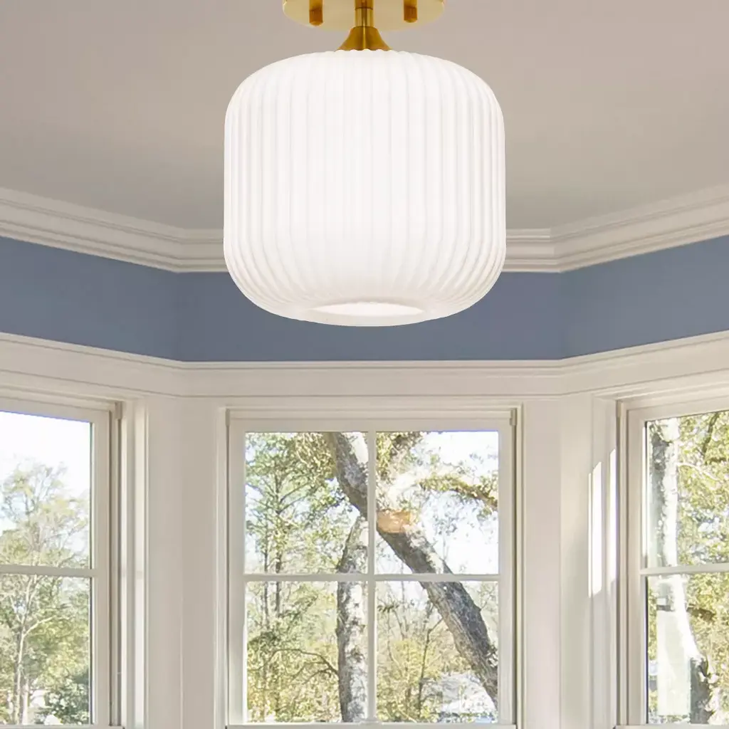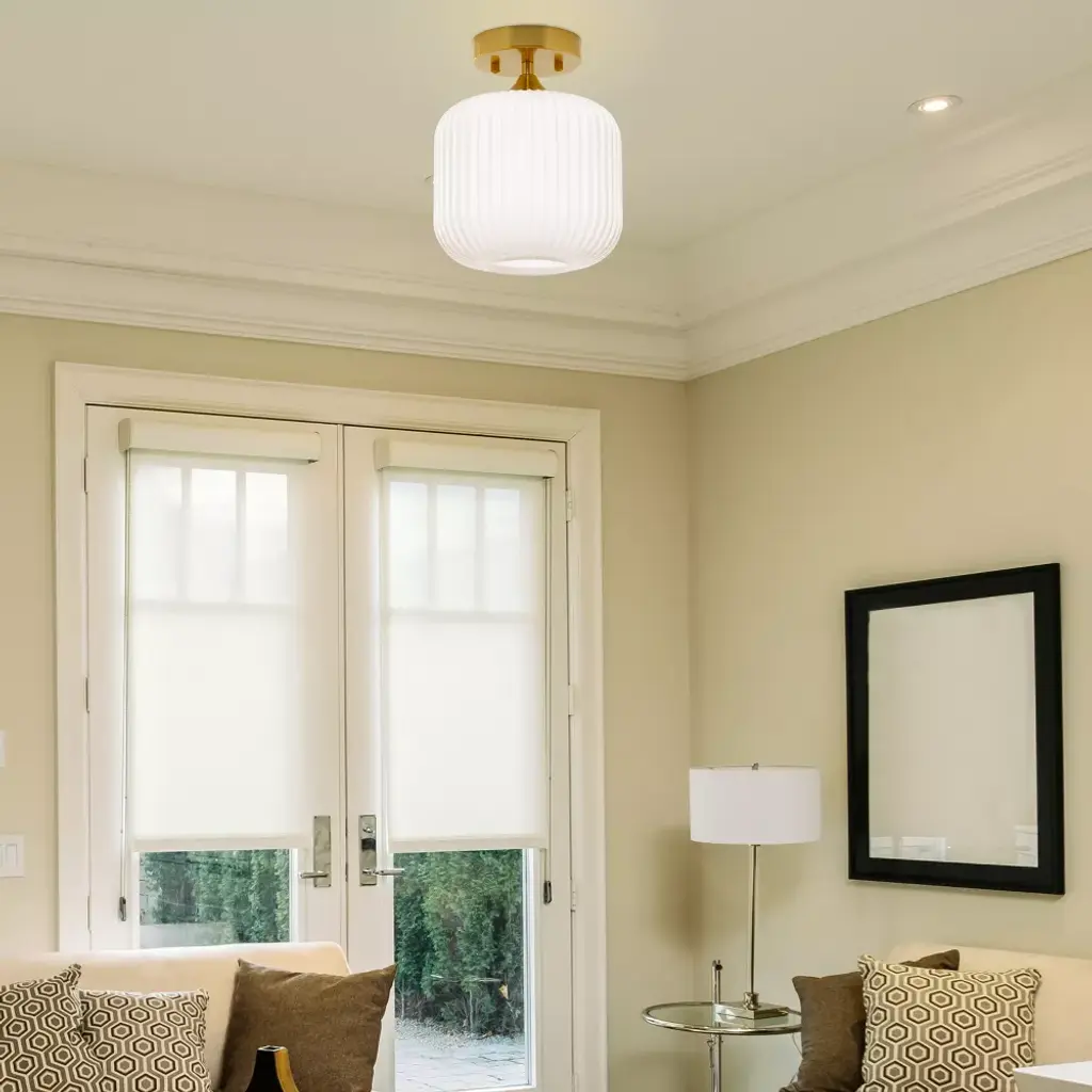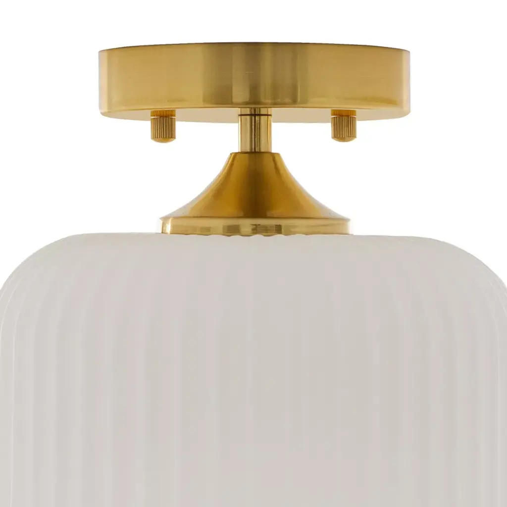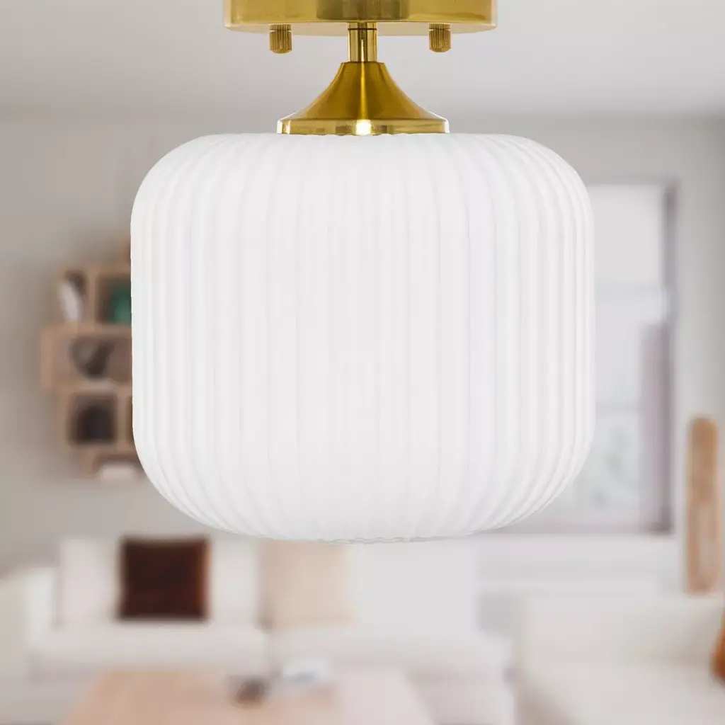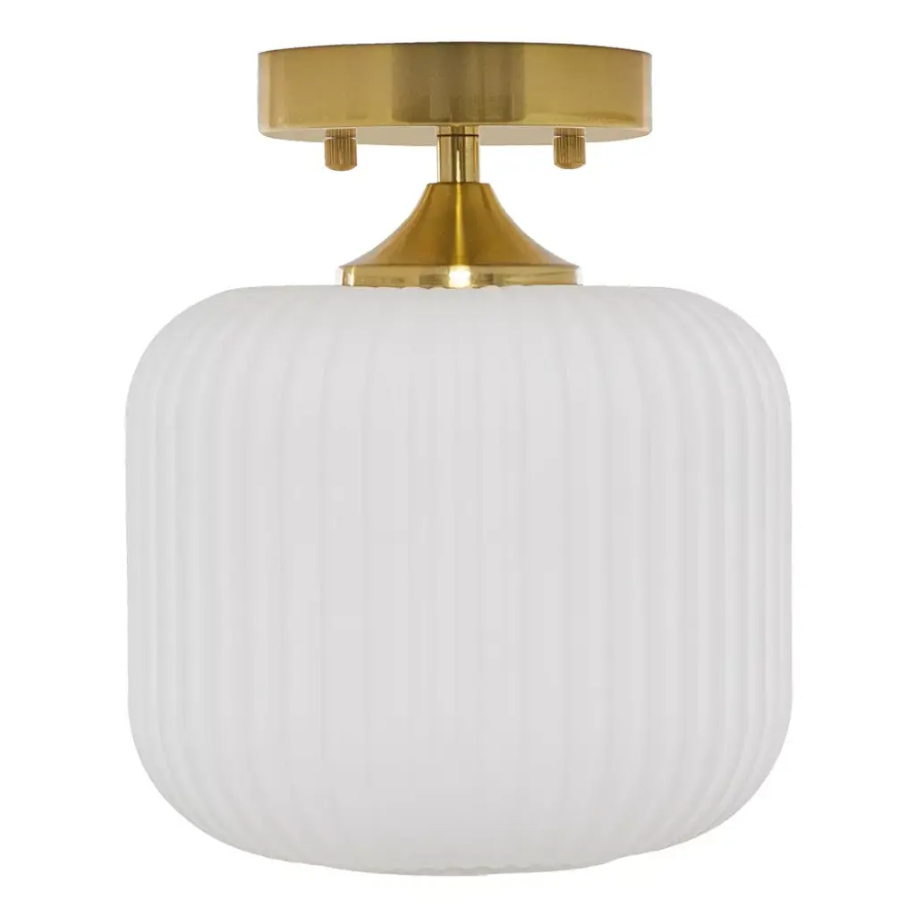 The 10.25" H William White Globe Ceiling Light from River of Goods gives you a fun, retro-style lighting option for any space in your home. This ceiling light showcases a white frosted glass globe shade and a brushed gold-finish metal base for eye-catching contrast. It requires one 40-watt E26 bulb (not included), and it's also LED compatible. Easy to pair with a variety of retro or contemporary decor schemes, it's sure to cast a soft, warm glow in whatever room you install it in.