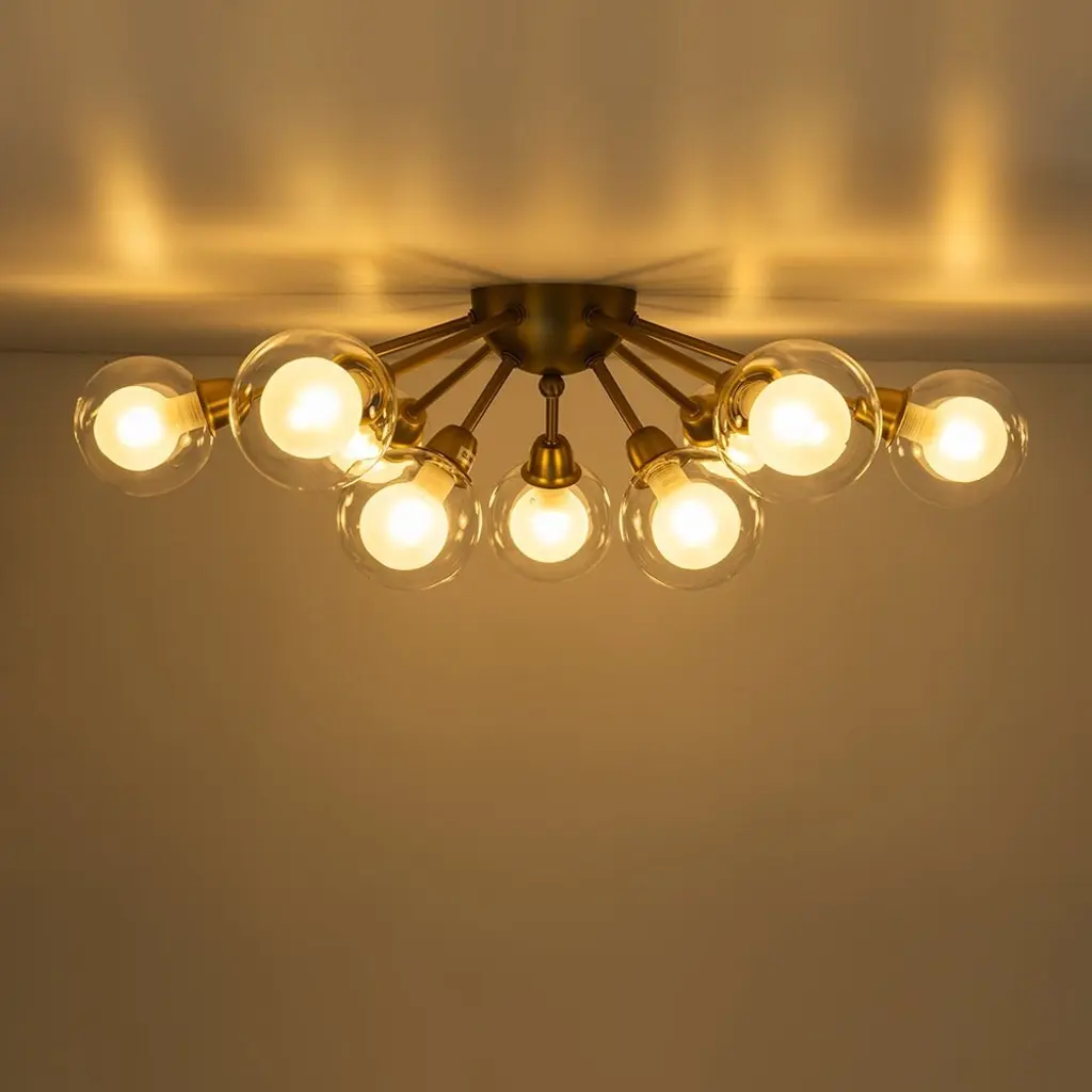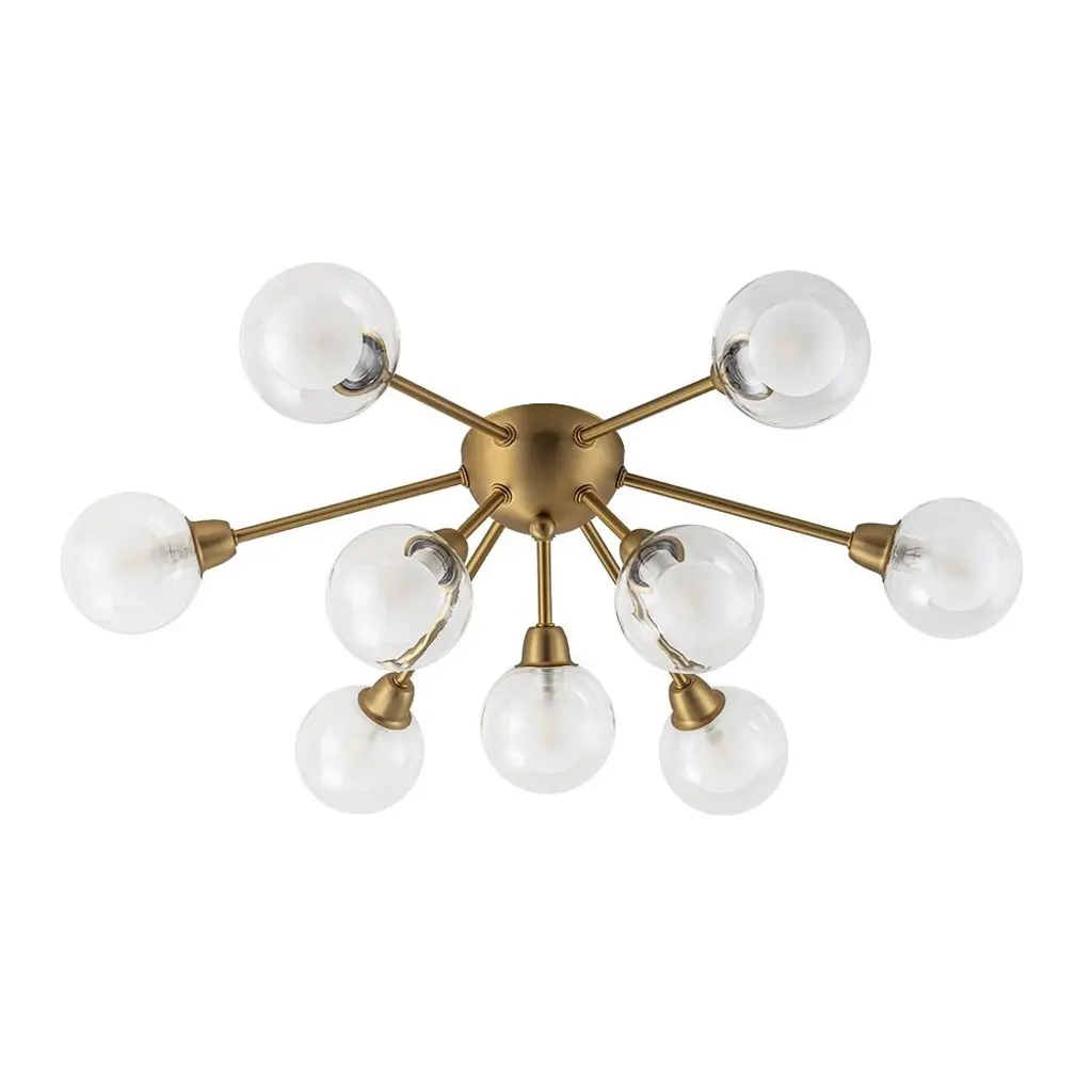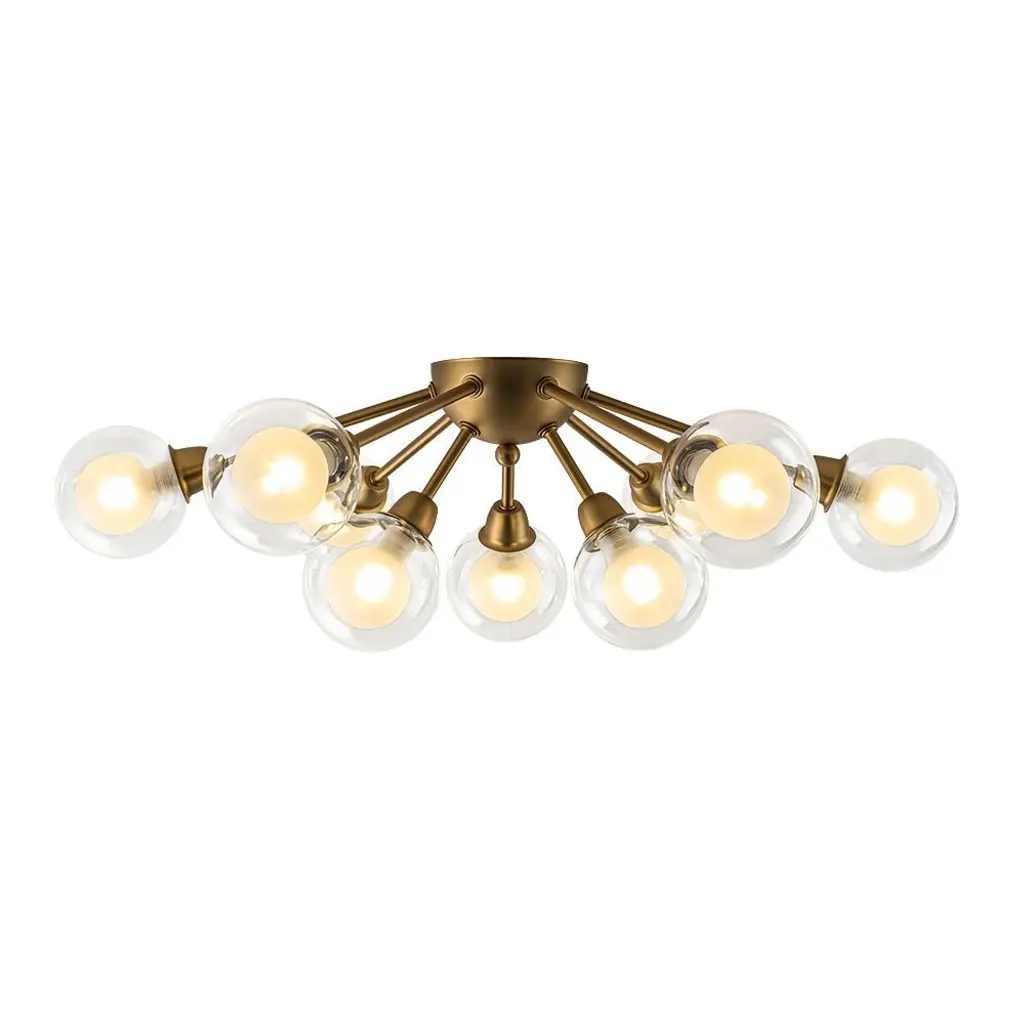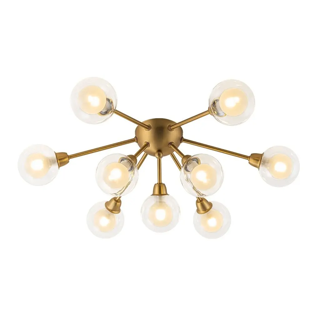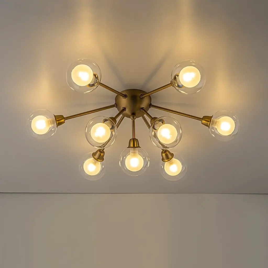 9-Light Dimmable Glass Globe Bubble Sputnik Ceiling Light - 11.8in - Brass