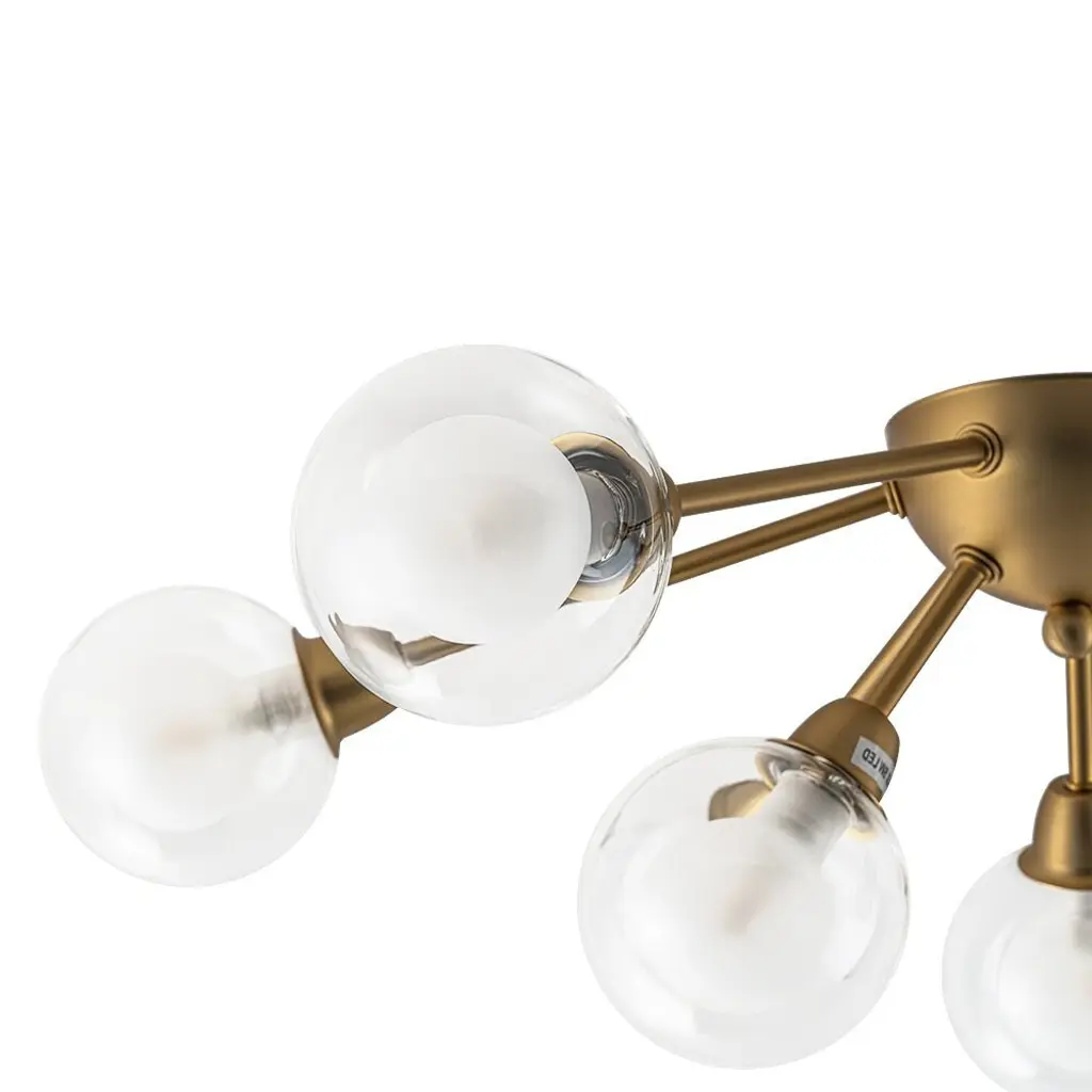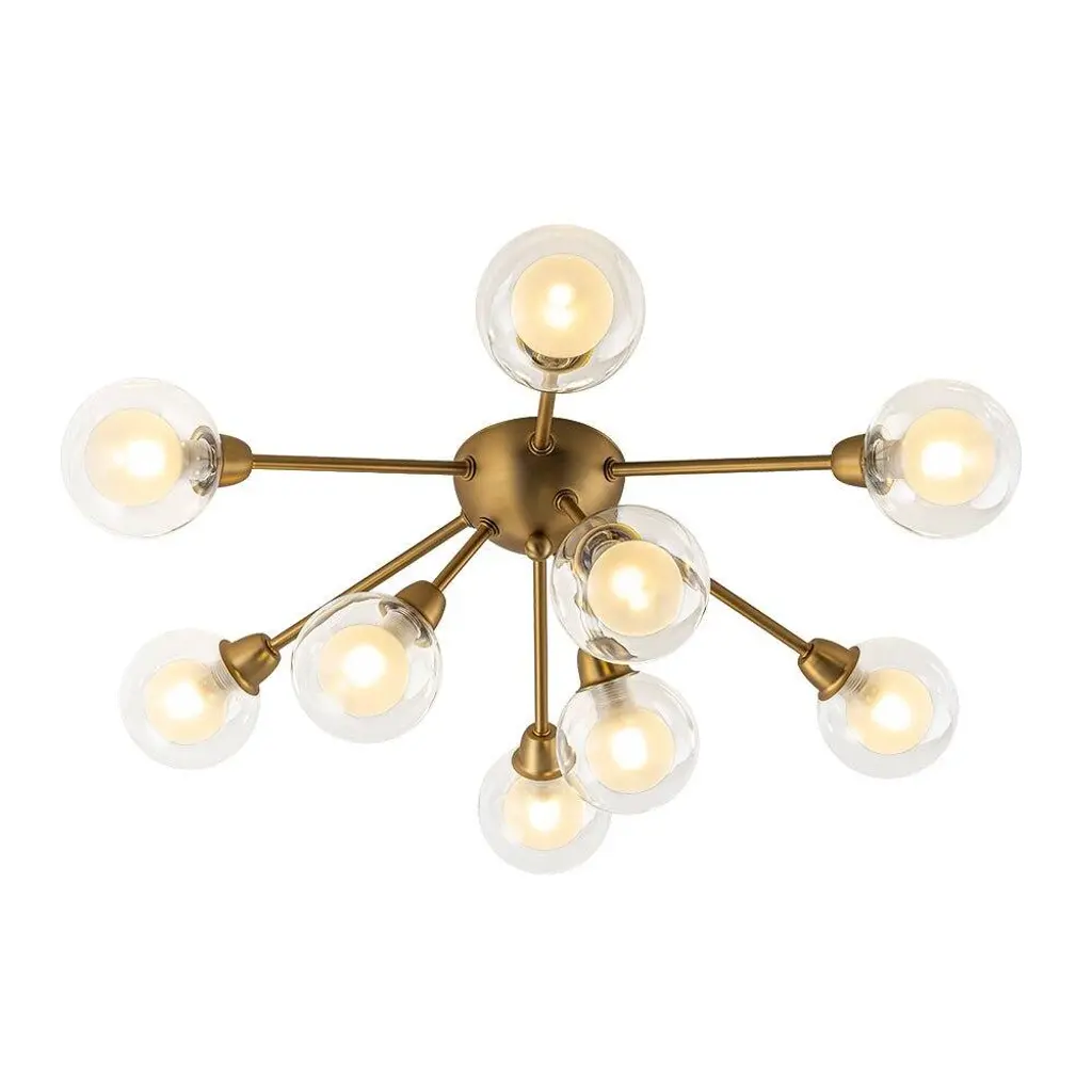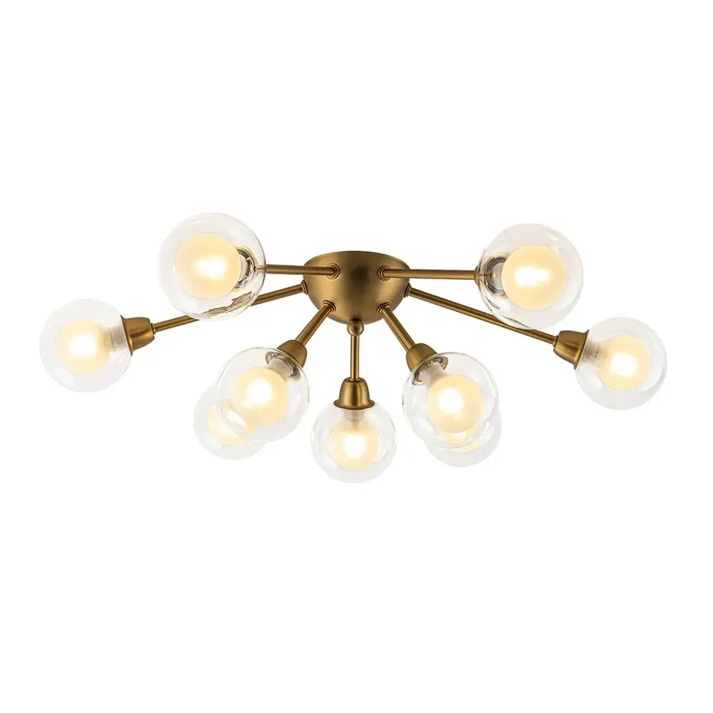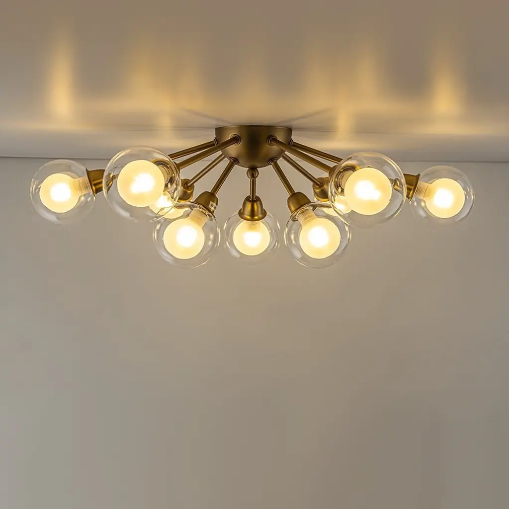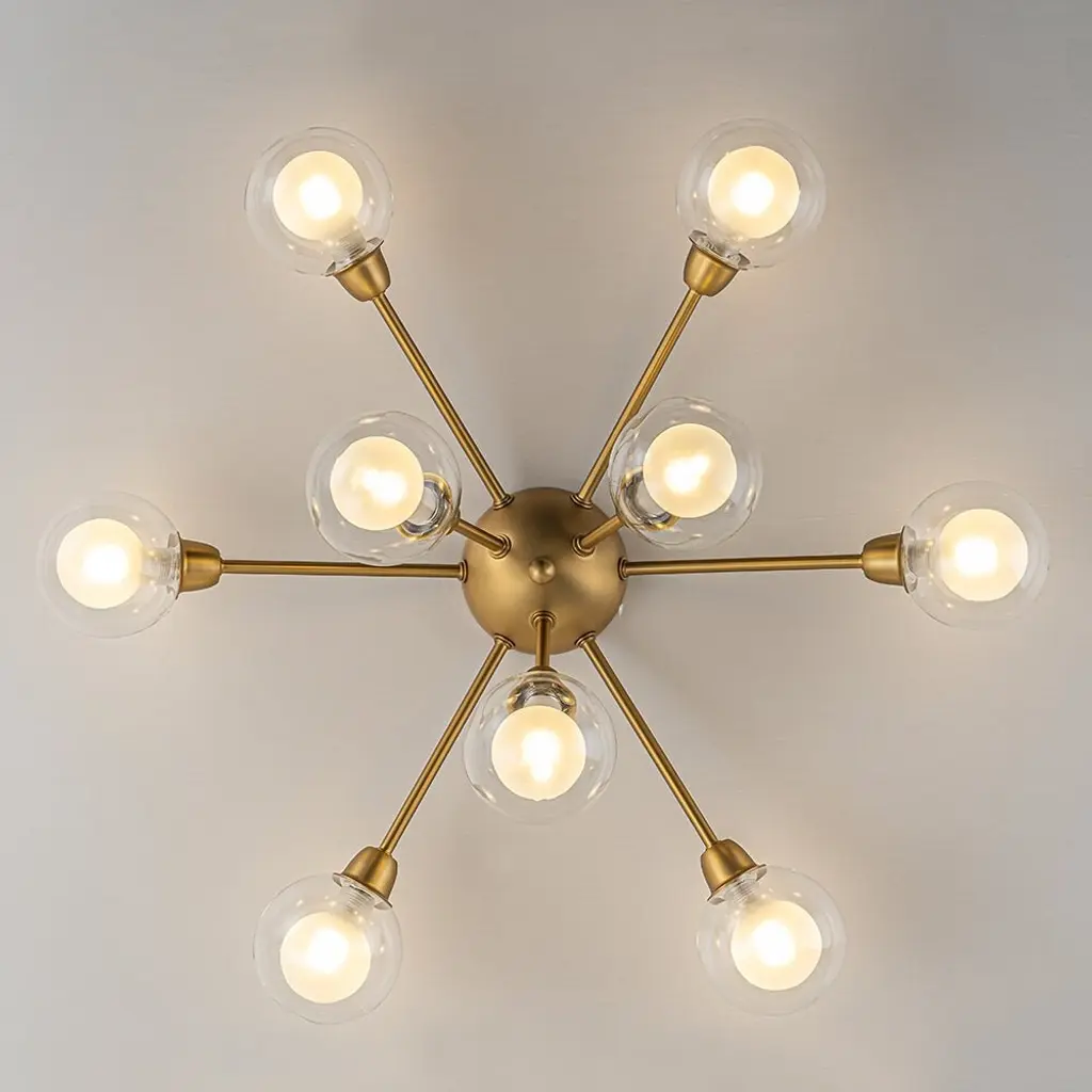 9-Light Dimmable Glass Globe Bubble Sputnik Ceiling Light - 11.8in - Brass