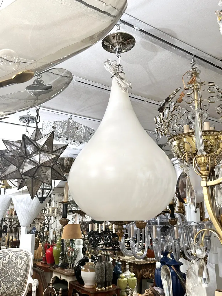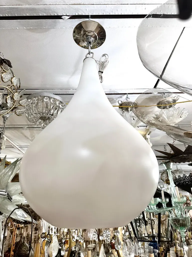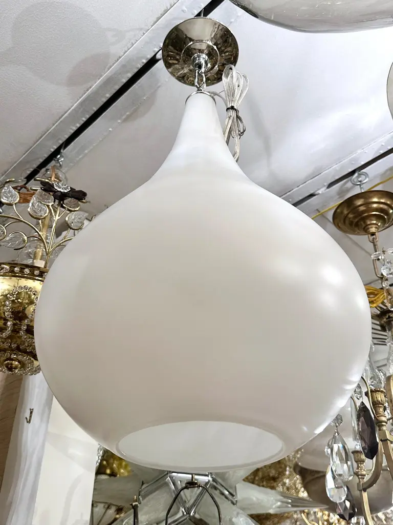 A set of three circa 1960's Italian glass light fixture with four interior candelabra lights. Sold individually.Measurements:Diameter: 14"Drop: 26"