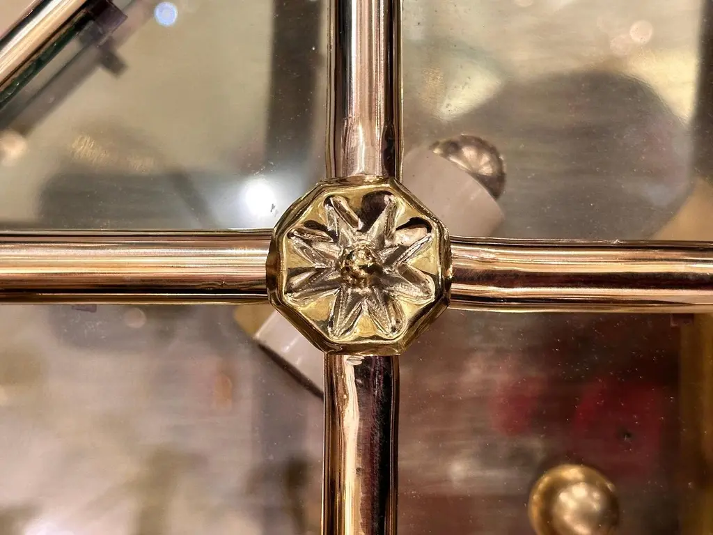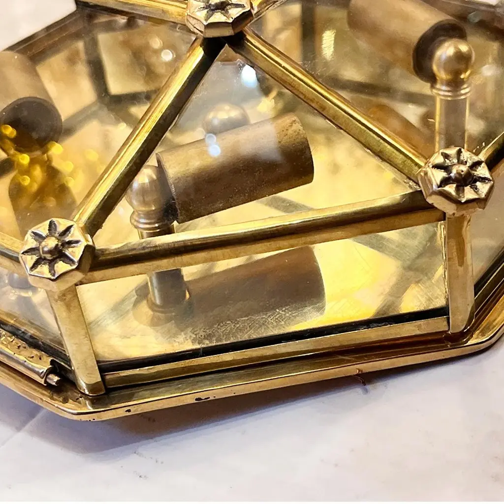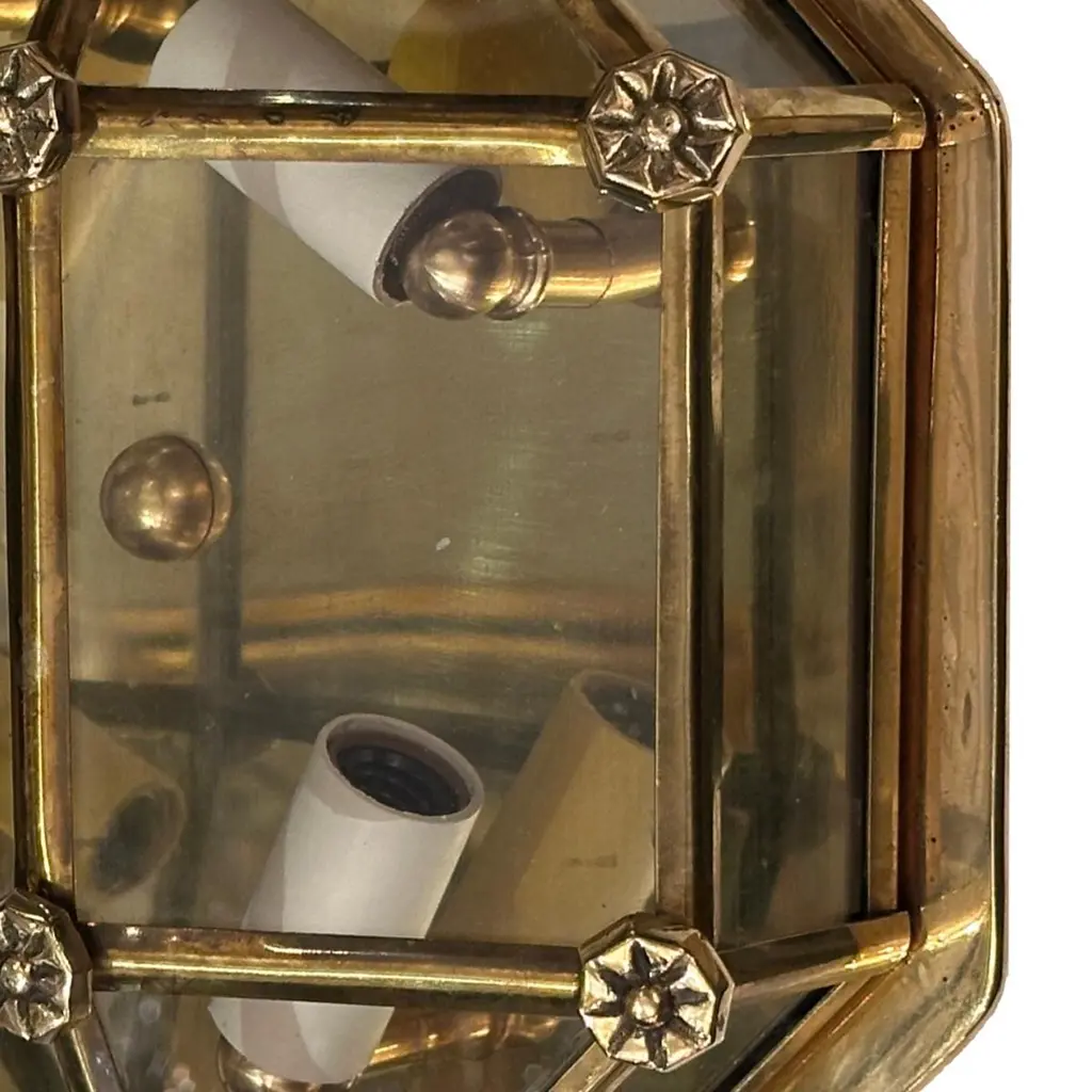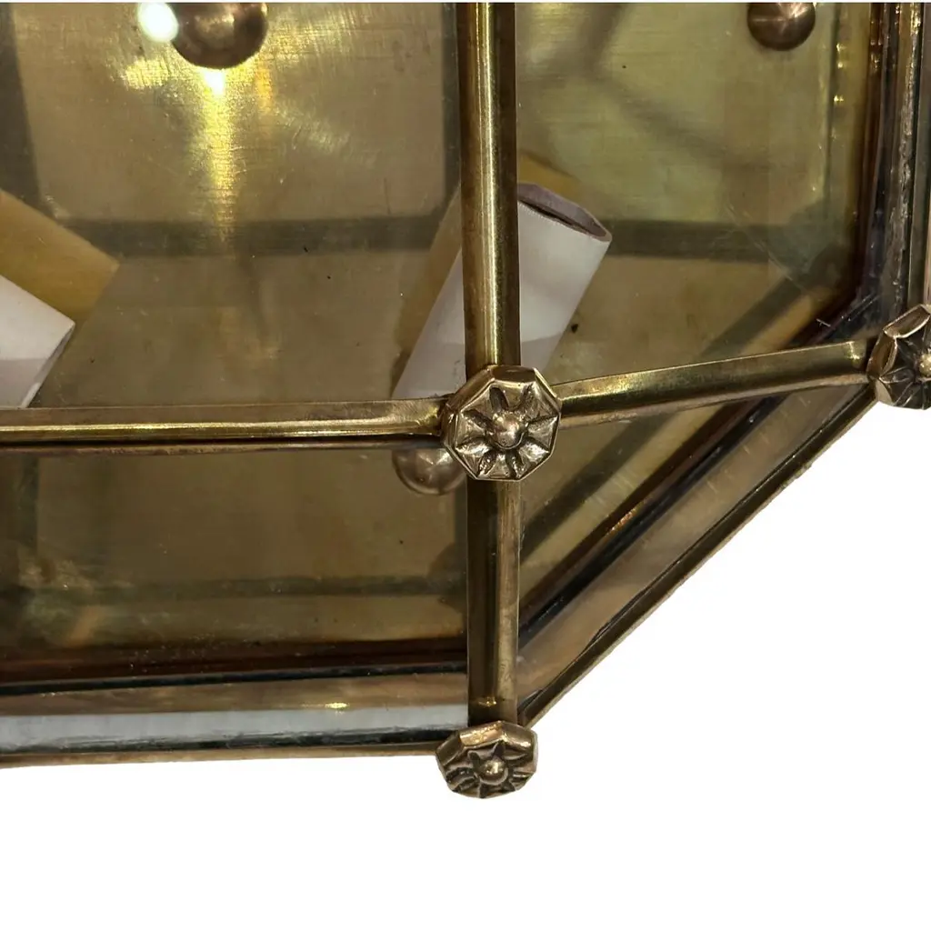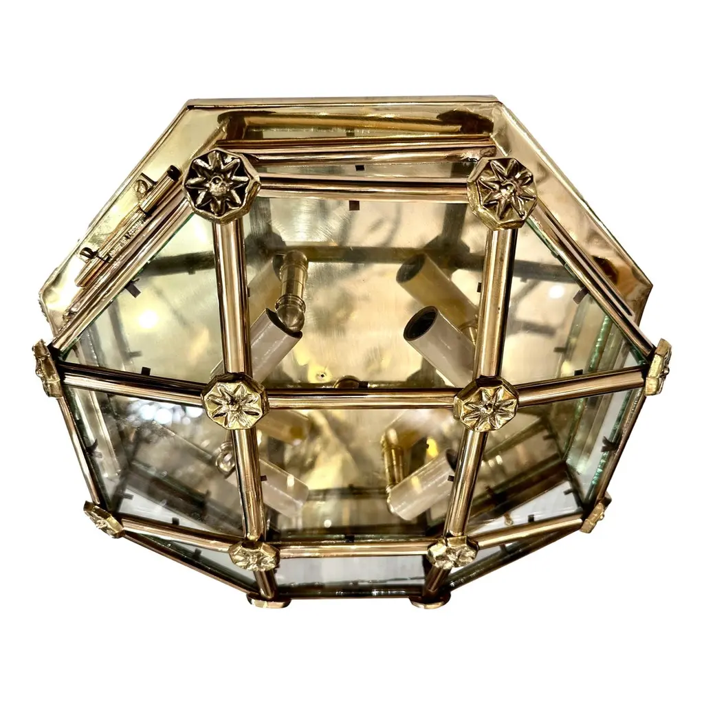 A set of 13 circa 1950's English bronze light fixtures with 4 interior lights each. Sold and priced individually.Measurements:Drop: 3″Diameter: 13″