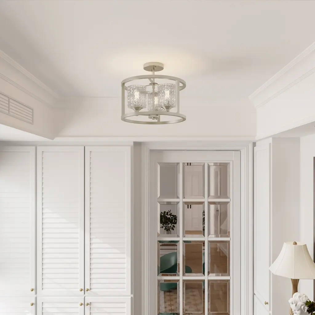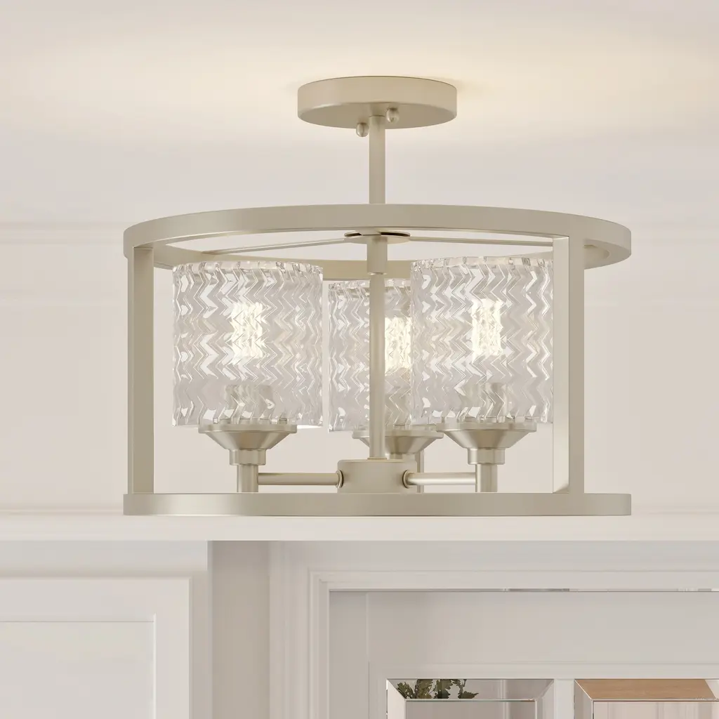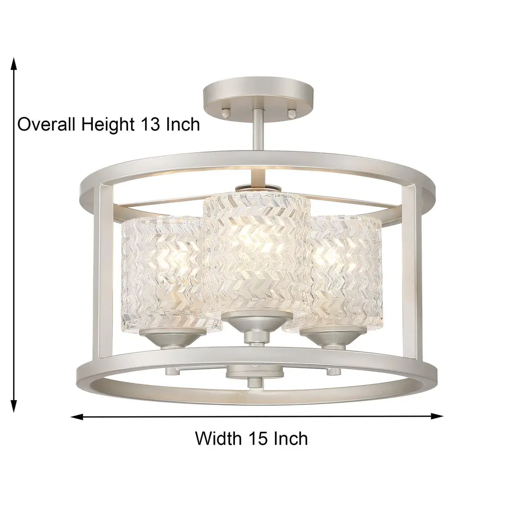 The Acroma 3-Light Shaded Drum Semi Flush Mount Lights are the perfect addition to any room in your home. Featuring a sleek and modern design, these lights will add warmth and style to your living space. The semi flush mount design is perfect for low ceilings, making it an ideal lighting solution for bedrooms, hallways, and other areas of your home.The Acroma 3-Light Shaded Drum Semi Flush Mount Lights feature three elegantly curved arms that support three wave glass shade, providing a warm and inviting glow to your home. The metal frames are available in a variety of colors, so you can choose the one that best suits your decor.The UL certification ensures safety and quality, while the handmade craftsmanship guarantees a unique and durable chandelier that will stand the test of time.Feature:Fixture: 12.75'' H x 15'' W x 15'' DOverall Product Weight: 9.9 lb.Modern glam design that is unique and stylishHandcrafted with attention to detail and durabilityUL certified for safety according to US standardsSuitable for a variety of spaces including living rooms, dining rooms, and home officesProvides bright illumination while adding a luxurious charm to your home decorCan be installed on dimmer or smart controller. Mounting hardware included.Easy assembly.