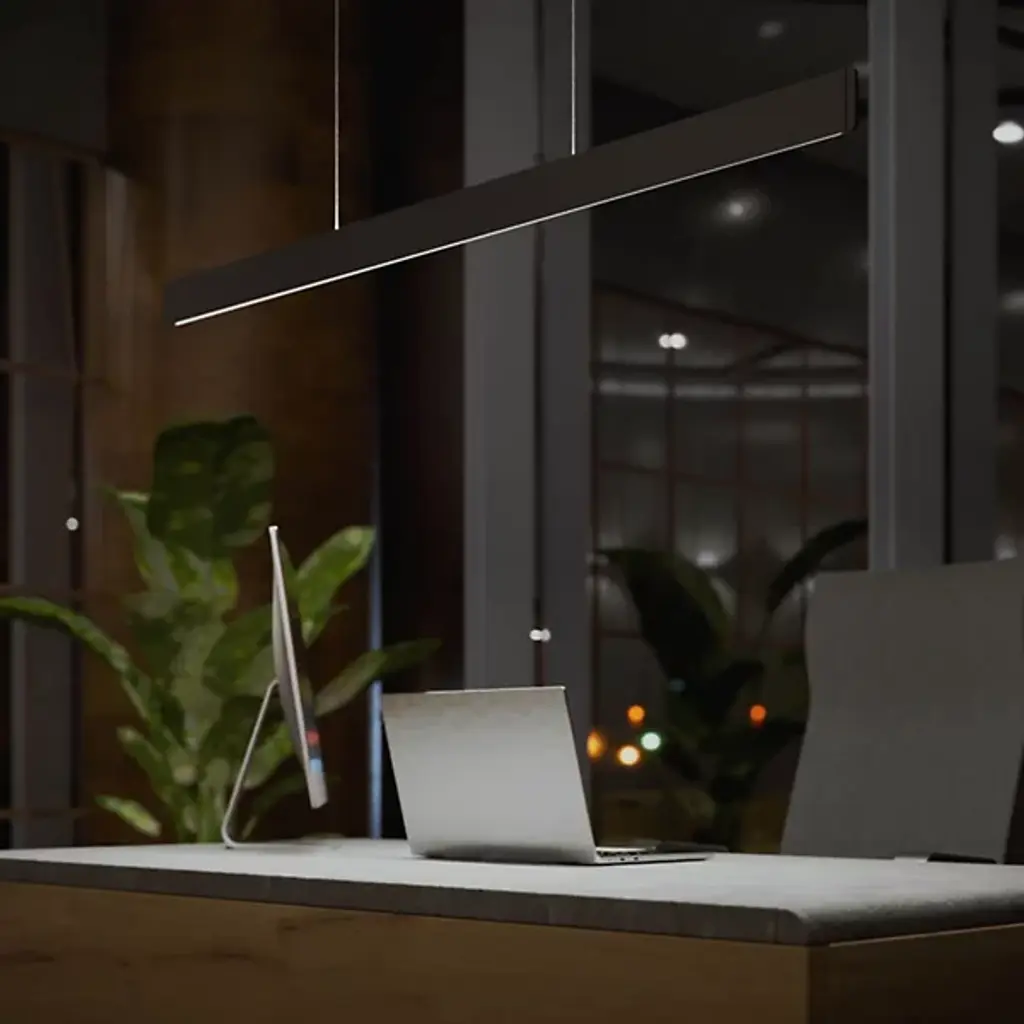 The After 8 LED Linear Suspension by Bruck Lighting is an embodiment of modern simplicity and efficiency. It's perfect for those seeking a touch of class in their residential or office settings. This pendant light features a slim aluminum body with an integrated LED source. The continuous LED up and down light source provides a broad and even distribution of light, perfect for any dining room or office environment. Combining a sleek, stylish design with outstanding performance, this pendant bridges the gap between decorative and commercial lighting.