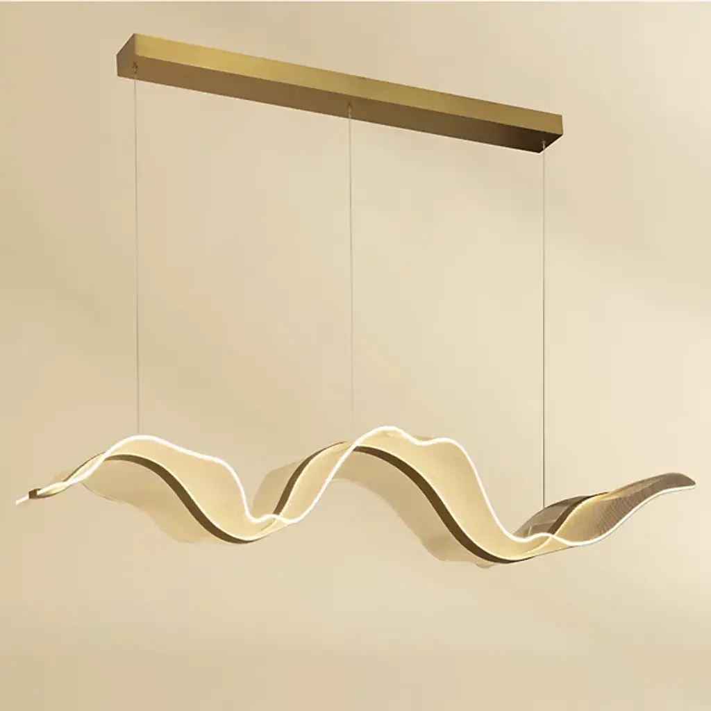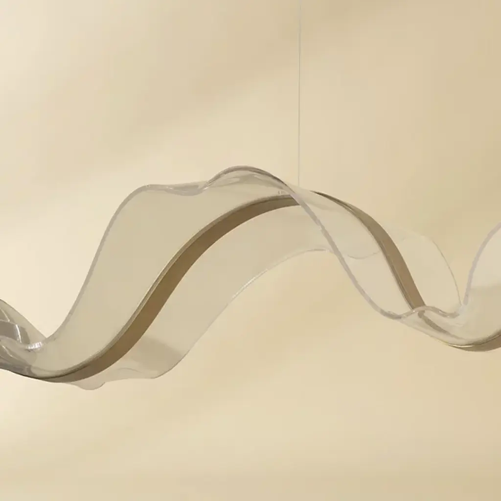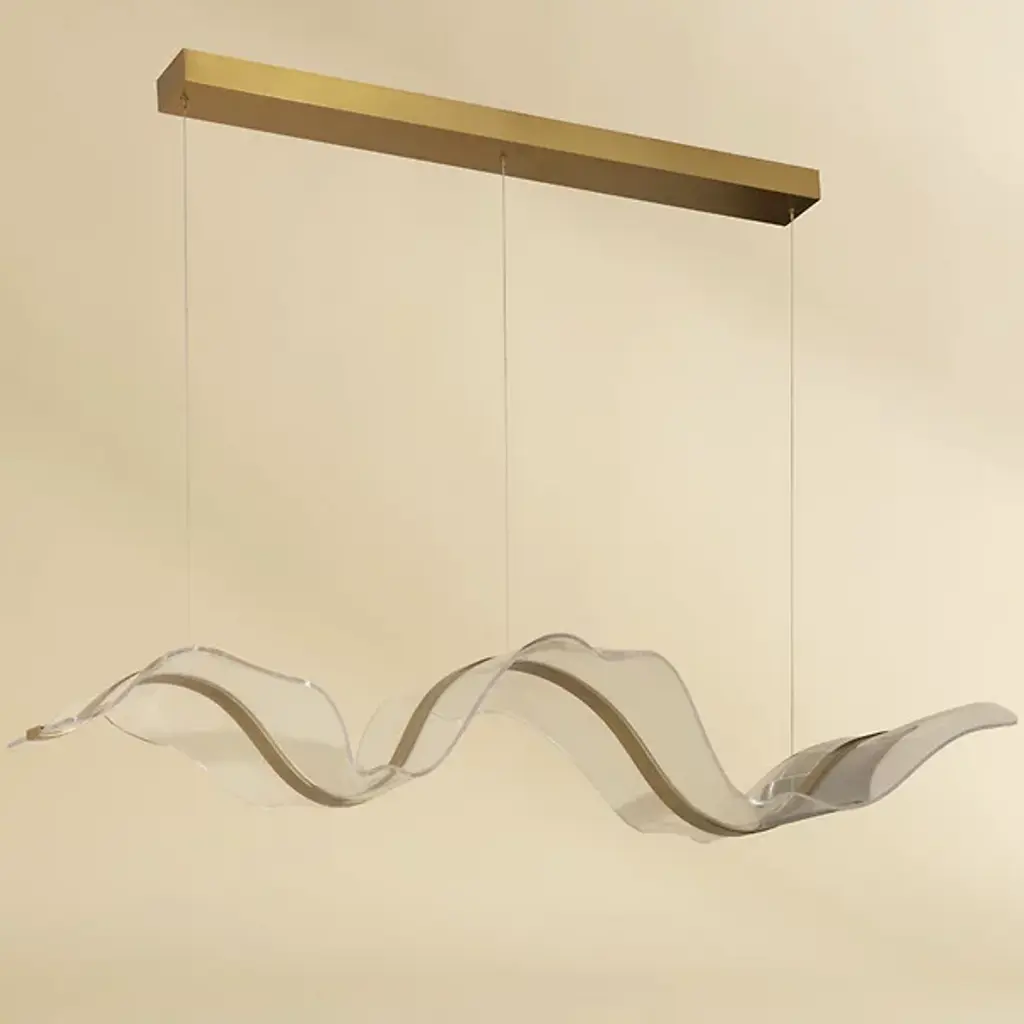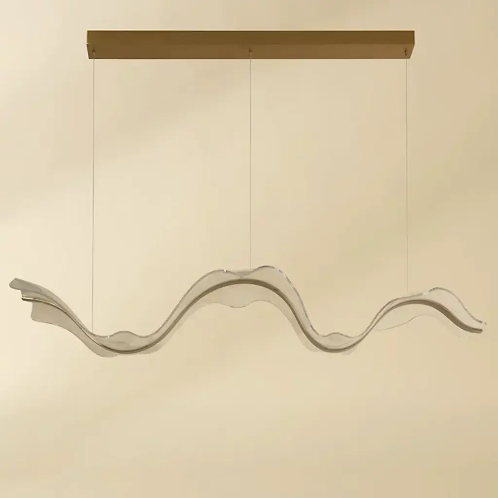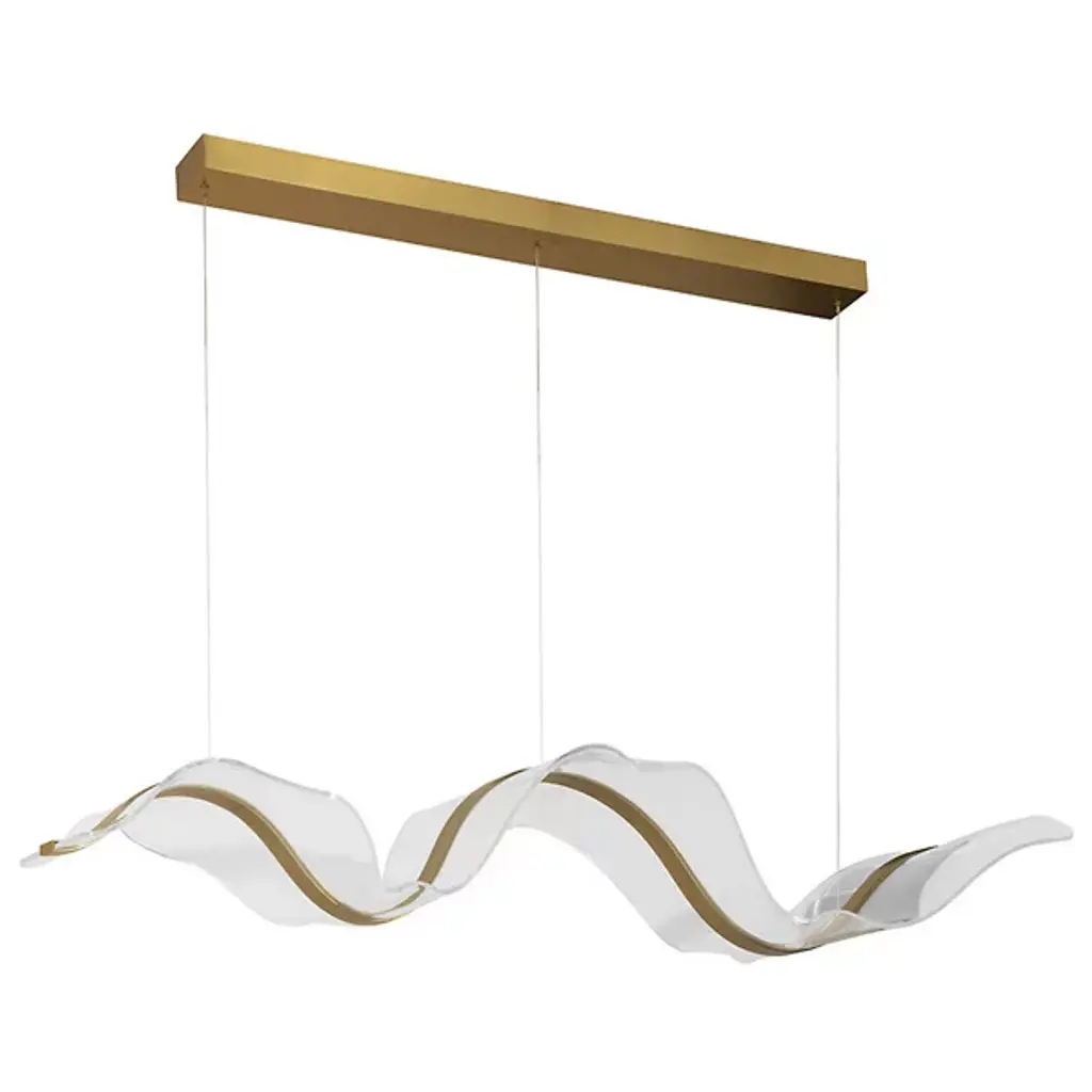 The Alun Linear Suspension from Sunpan translates the rhythmic movement of ocean waves into an architectural lighting statement. Its fluid acrylic form seems to freeze a moment of water’s natural motion, suspended from an iron ceiling mount with a brushed gold finish. The integrated LED lights illuminate the translucent acrylic waves, creating gentle diffusion across spaces. Multiple units can be installed in sequence to mimic continuous wave patterns, ideal for open areas where the fixture’s minimal aesthetic contributes to an uncluttered environment. This ceiling-mounted, hardwired fixture brings a sense of natural motion to static interiors.
