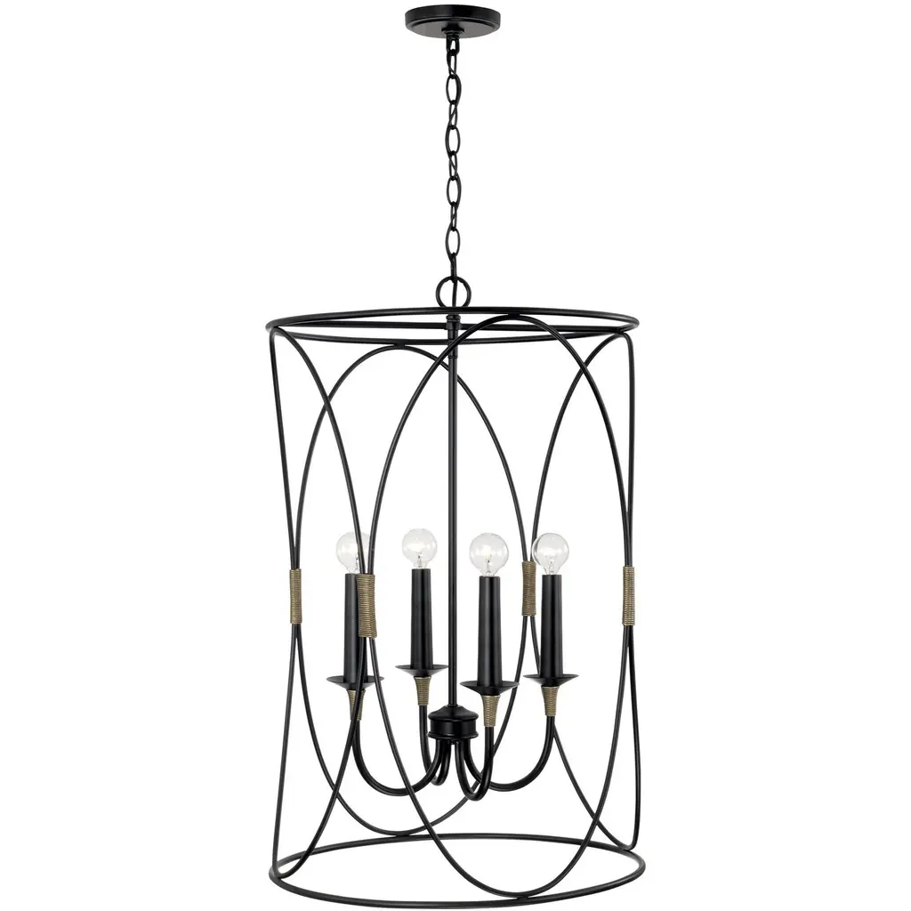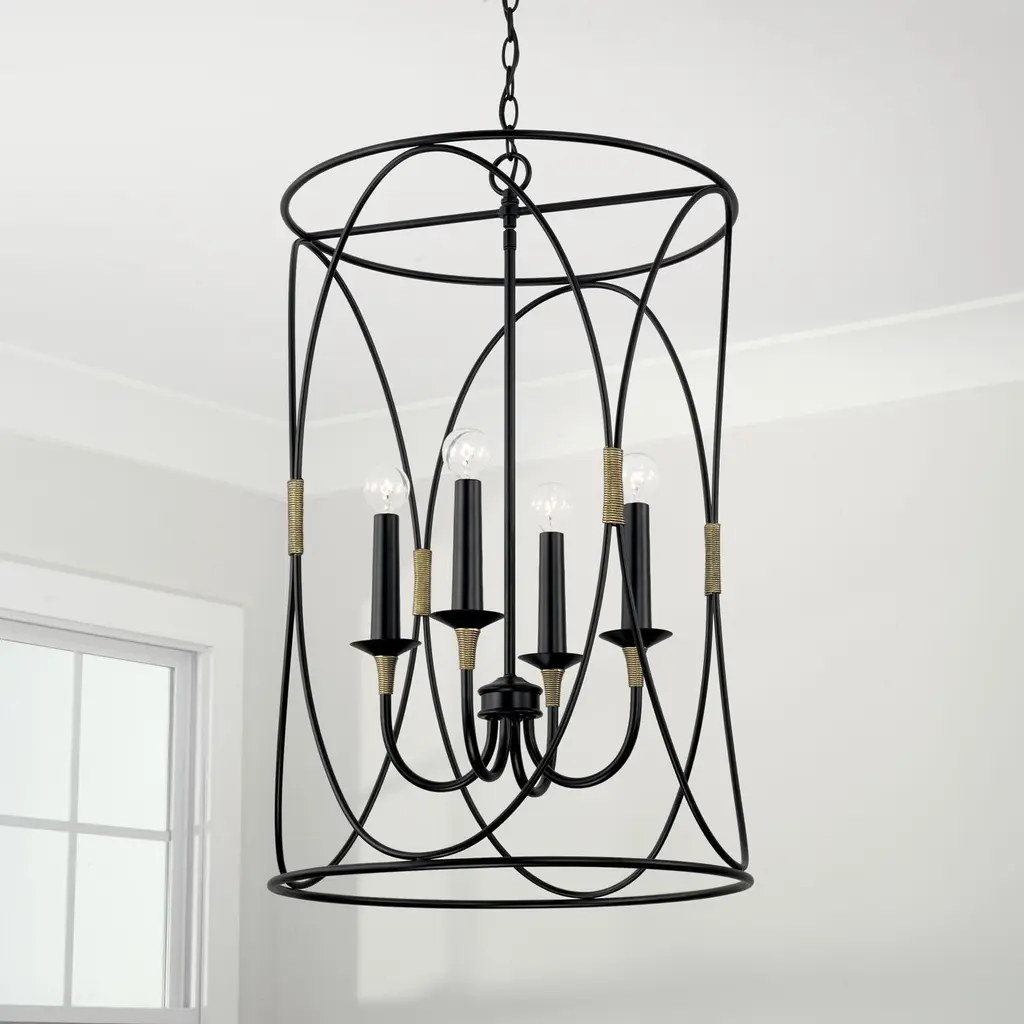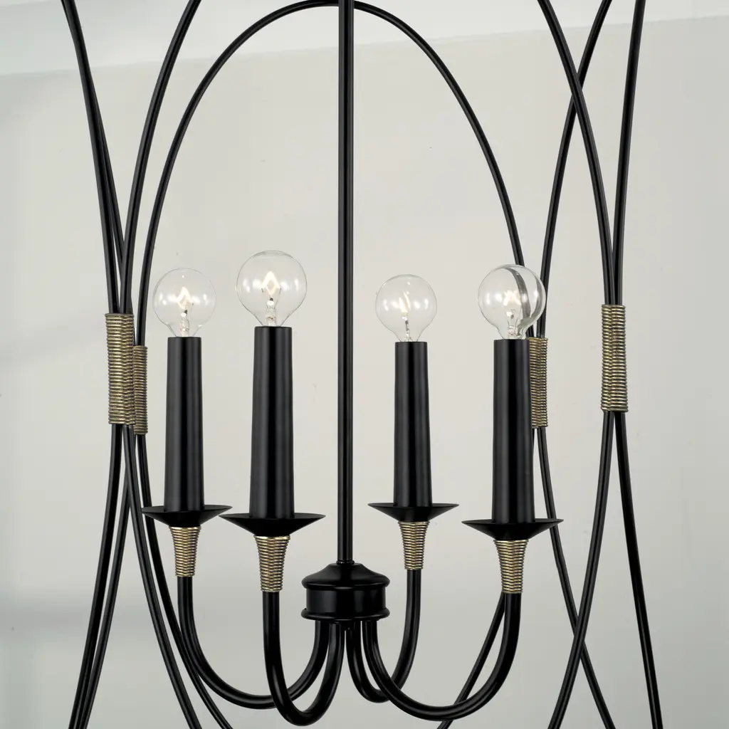 Amara 4 Light 19 Inch Matte Black With Brass Foyer Ceiling Light
