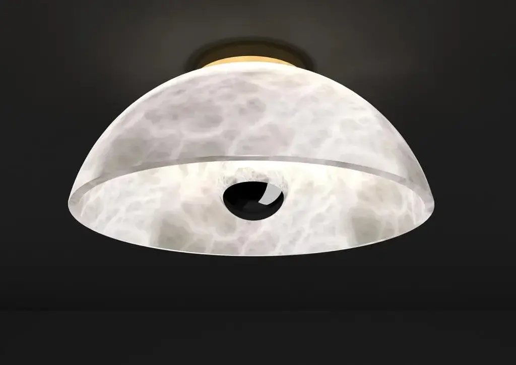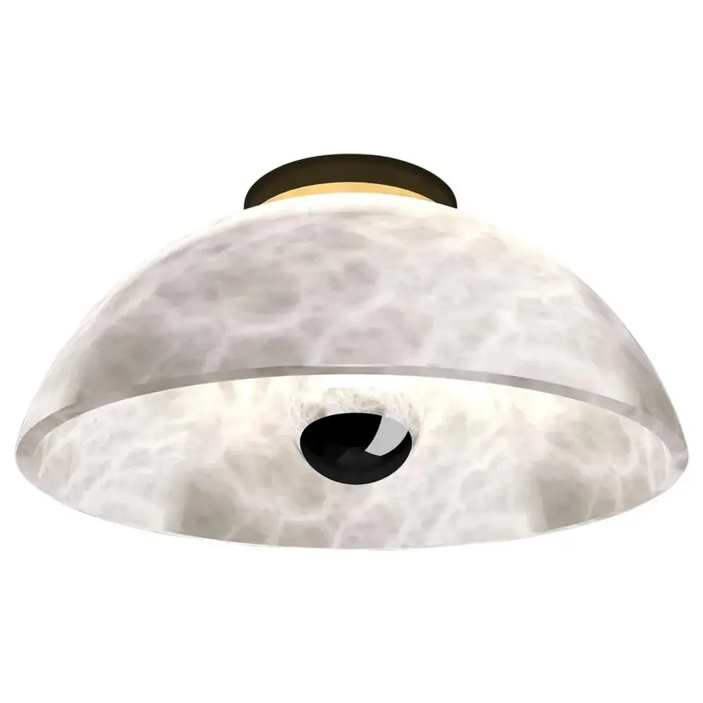 Apollo Shiny Gold Metal Ceiling Lamp by Alabastro Italiano Dimensions: Ø 30 x W 17,5 cm. Materials: White alabaster and metal. Up to 250V (Europe/UK Standard).