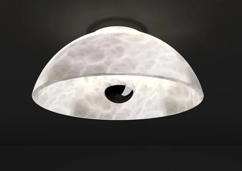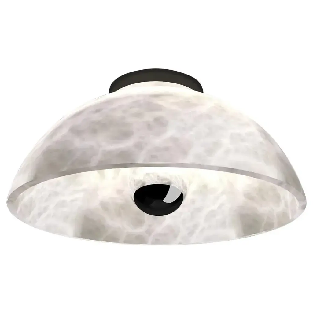 Apollo Shiny Silver Metal Ceiling Lamp by Alabastro Italiano Dimensions: Ø 30 x W 17,5 cm. Materials: White alabaster and metal. Up to 250V (Europe/UK Standard).