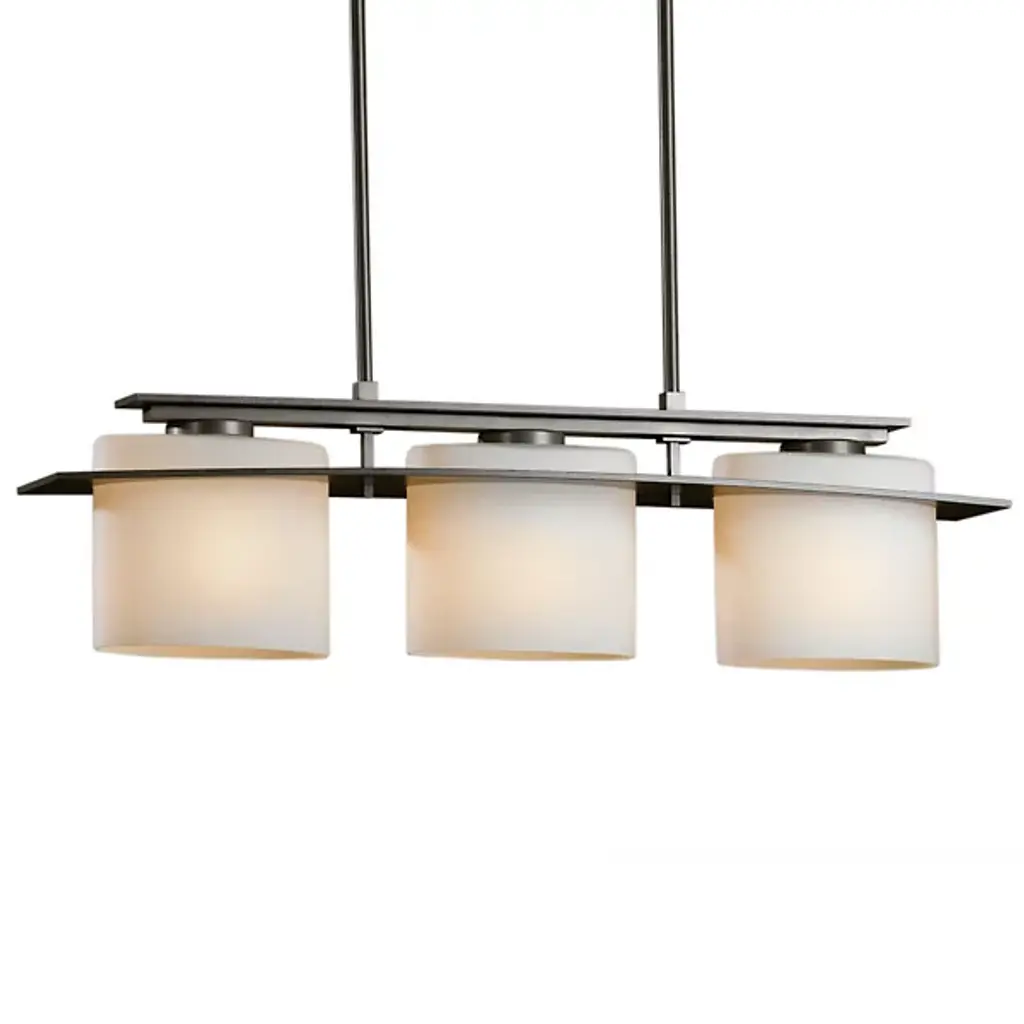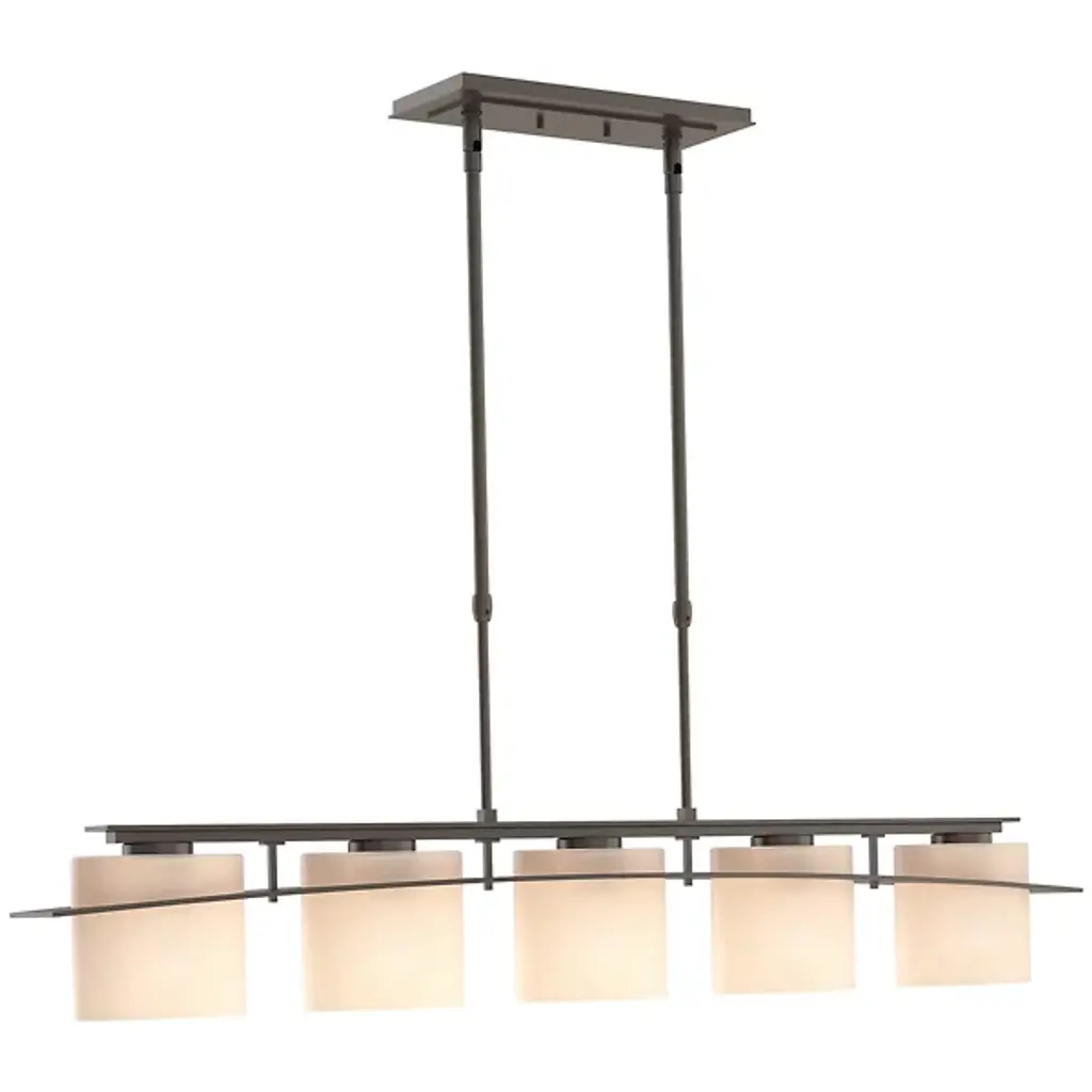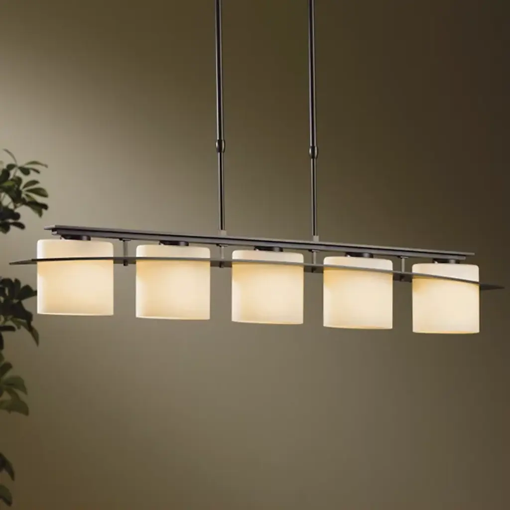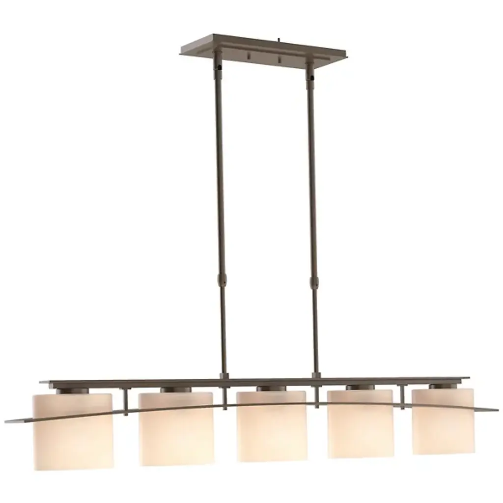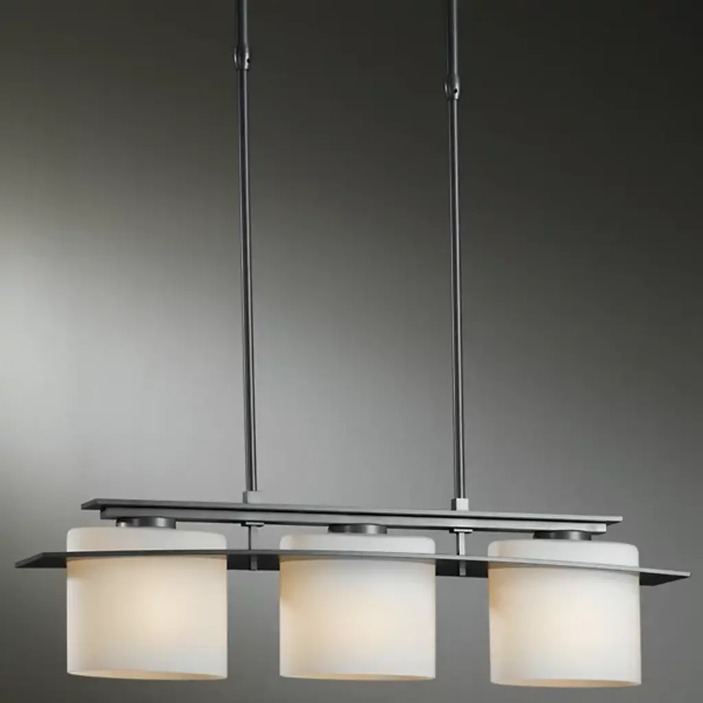 Modern design with flexibility. The Arc Ellipse Linear Suspension from Hubbardton Forge has a simple enough design that it can work in a lot of different decors, from sleek and contemporary to warm and homey. Several Glass shades appear square at first glance but are gently curved. A Steel band gently arcs across the shades, giving the product its name, and looks like it’s the one traveling through the glass, when, in truth, the opposite is true.