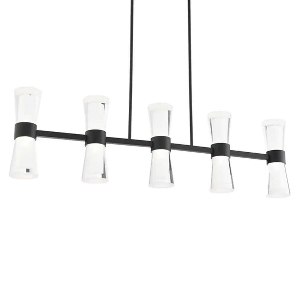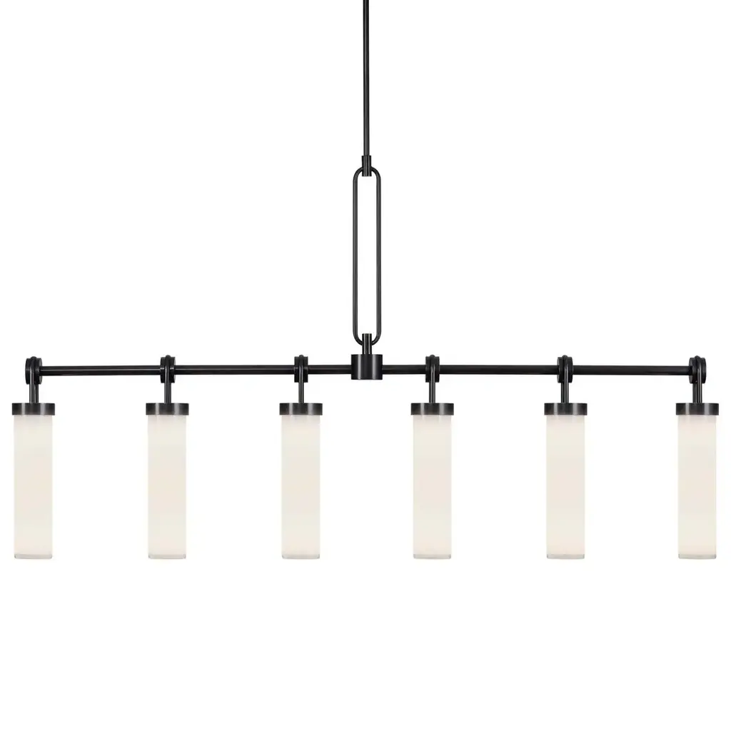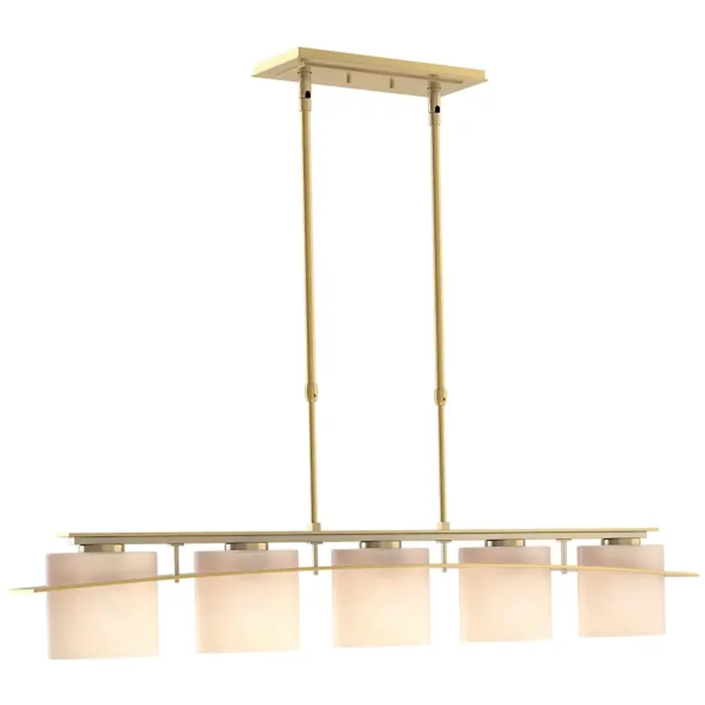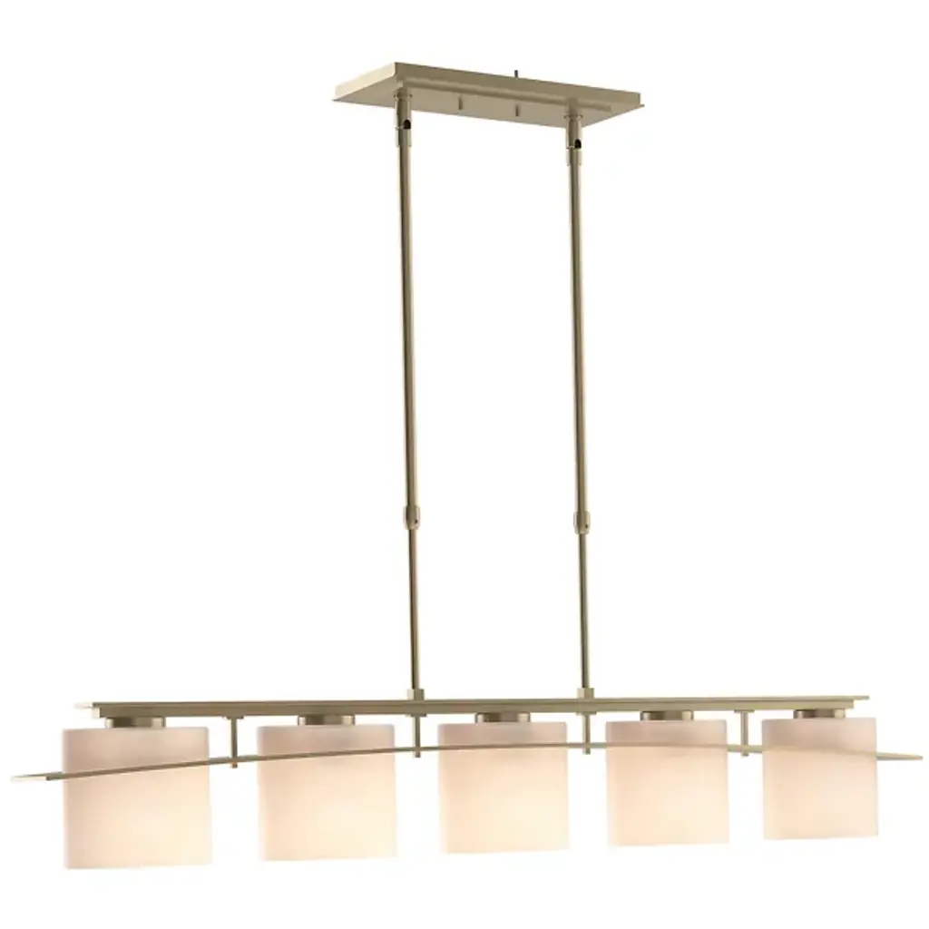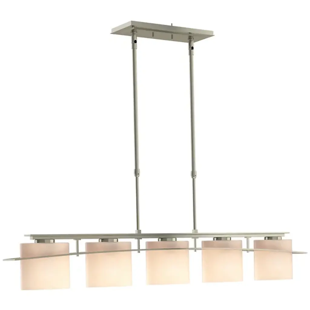 Modern design with flexibility. The Arc Ellipse Linear Suspension from Hubbardton Forge has a simple enough design that it can work in a lot of different decors, from sleek and contemporary to warm and homey. Several Glass shades appear square at first glance but are gently curved. A Steel band gently arcs across the shades, giving the product its name, and looks like it’s the one traveling through the glass, when, in truth, the opposite is true.