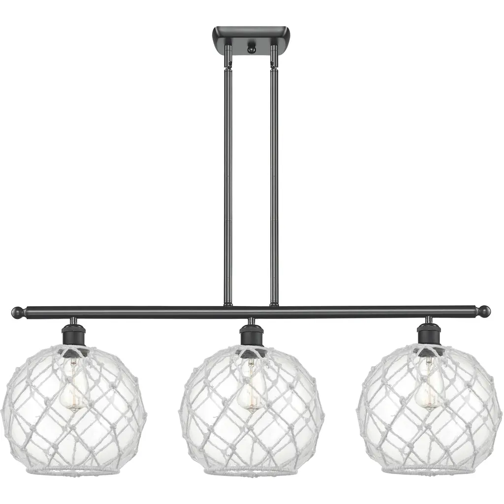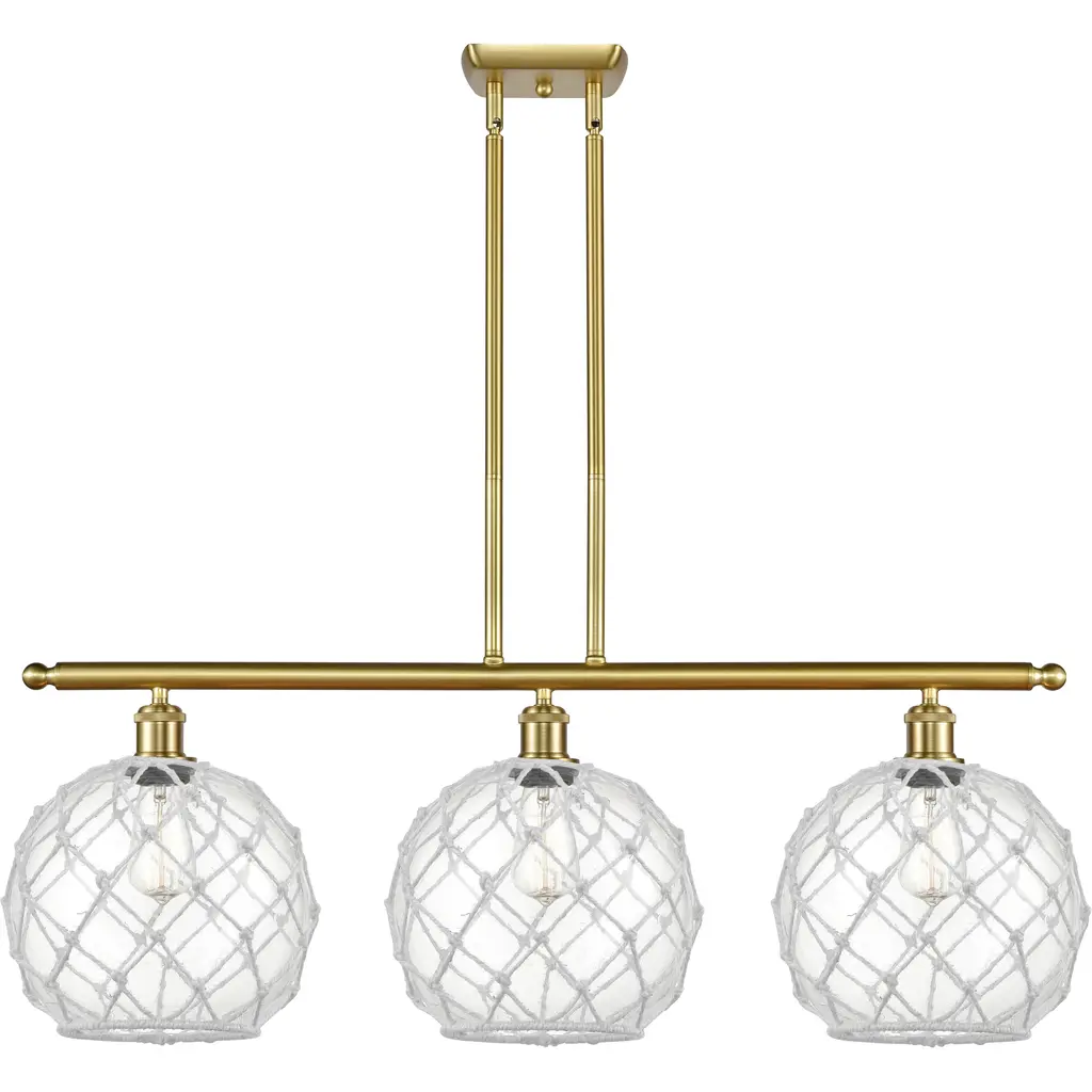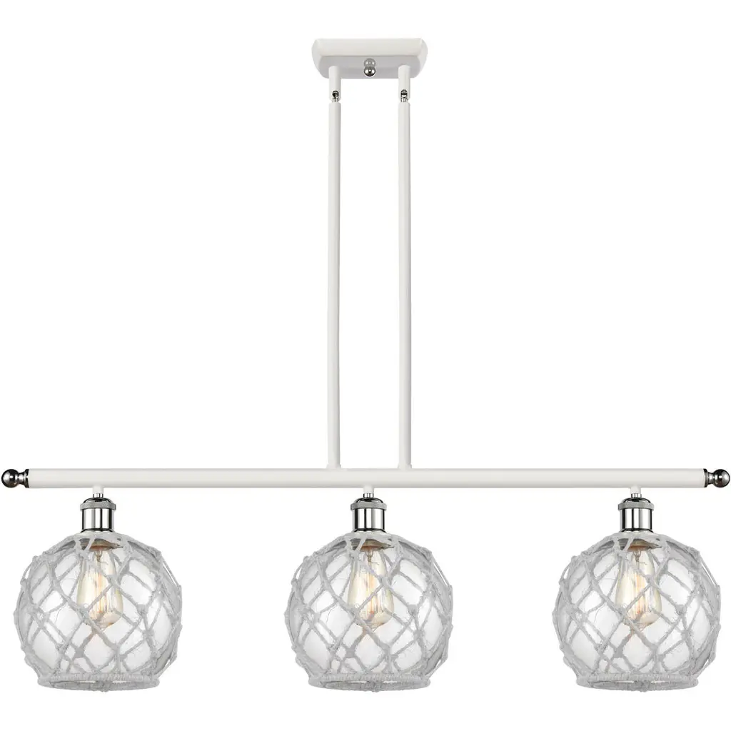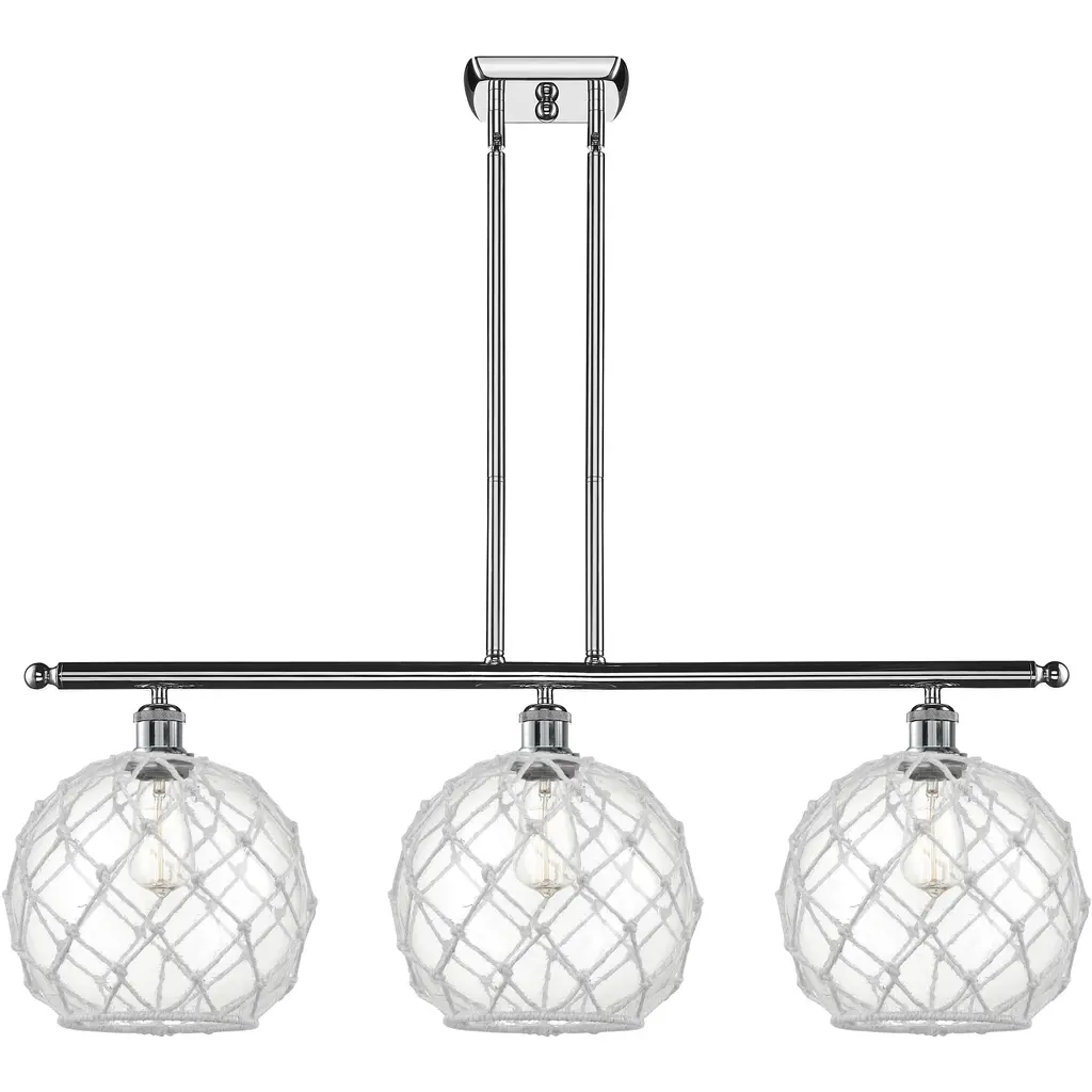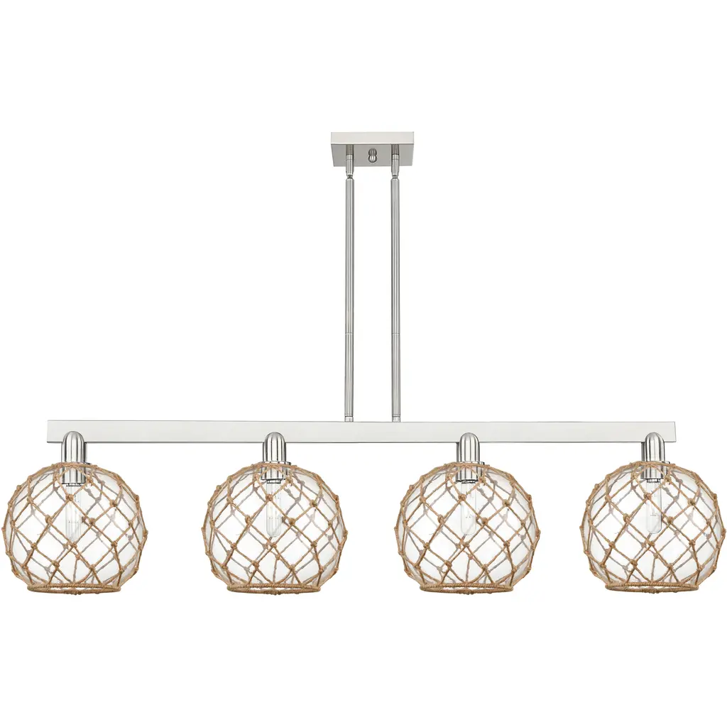 Arcadia Farmhouse Rope Island Light Ceiling Light In Polished Chrome, Clear Glass With Brown Rope