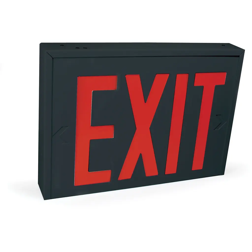 Architectural 1.75 Inch Aluminum Exit / Emergency Ceiling Light In Red, Single-Faced, With Battery Backup, Single-Faced, Black Housing