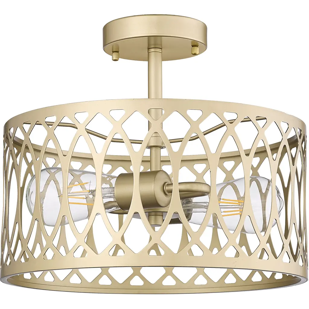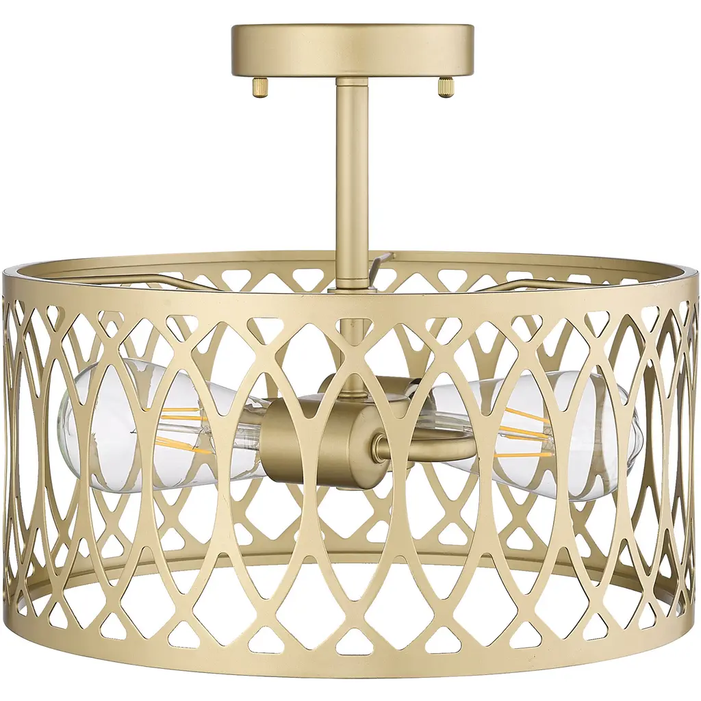 Characterized by a contemporary interpretation of delicate 13th-century Moorish-style patterns, The Arelyn Collection of semi-flush pendant lights is truly a work of art. The organic lines of the fixtures meld perfectly with any interior design movement from contemporary to classic elegance. The beautifully patterned metal design, either matte black or modern gold, creates a stunning light display, perfect for hallway, bedroom, or foyer.