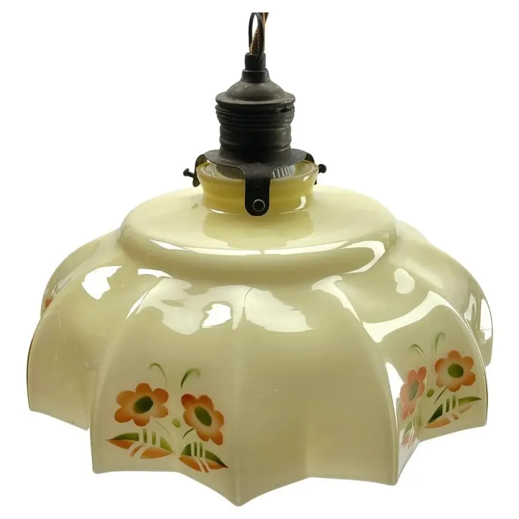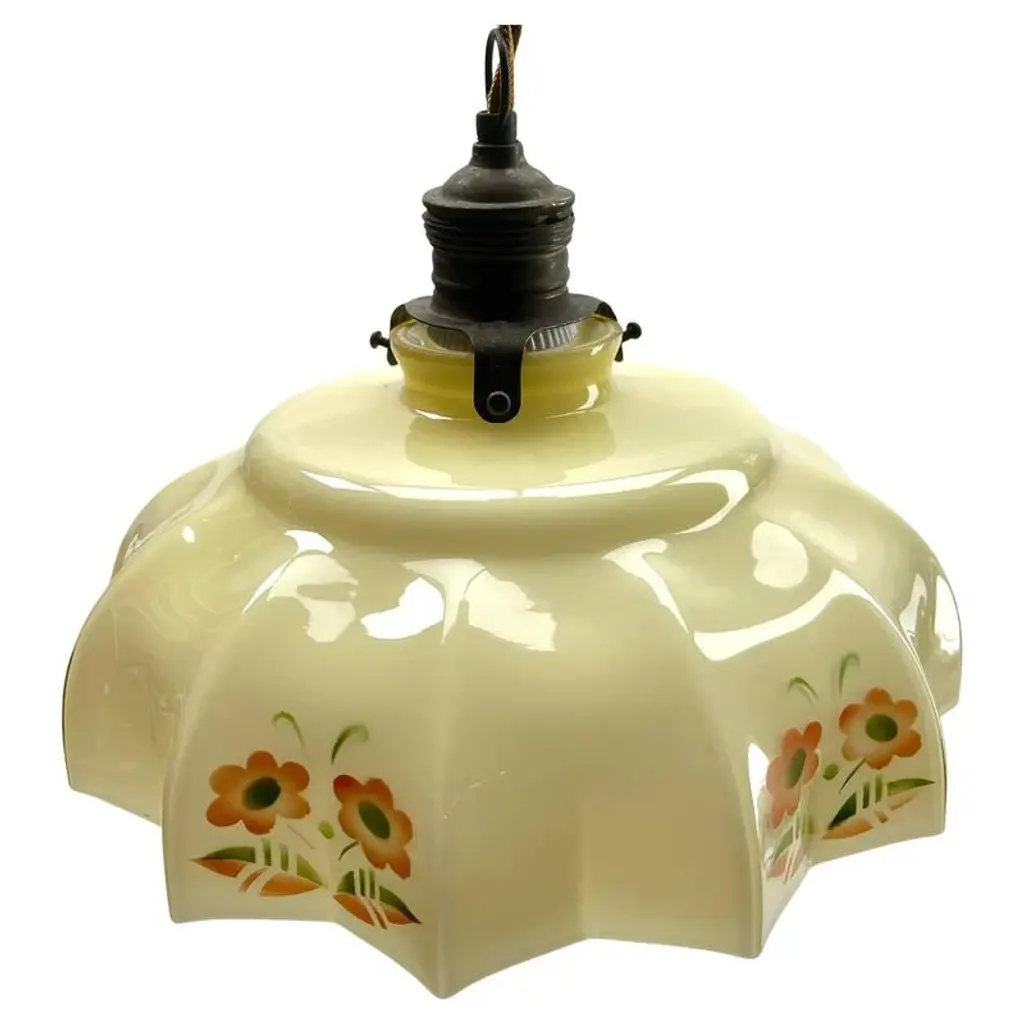 Art Nouveau Opaline Ceiling Lamp With Scailmont Belgium Glass Shade, 1930s