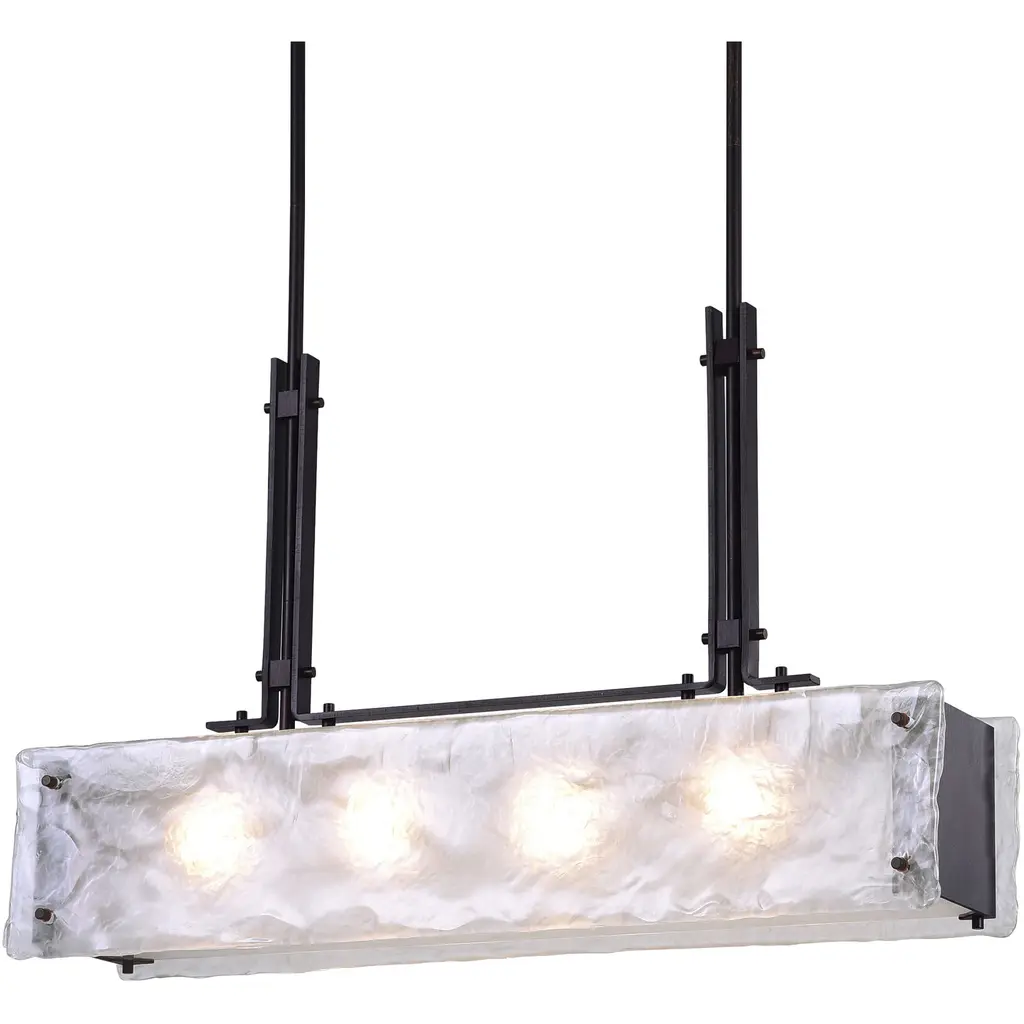 The Assunta 4 Light Chandelier dazzles without being blingy. This drum shade chandelier features a 28 inch long cuboid shade made of textured frosted glass. Four G9 bulbs are concealed inside the shade, diffusing light that is warm and inviting. Providing a stunning visual, this chandelier can dress up your kitchen island to make it look like a more formal dining space.