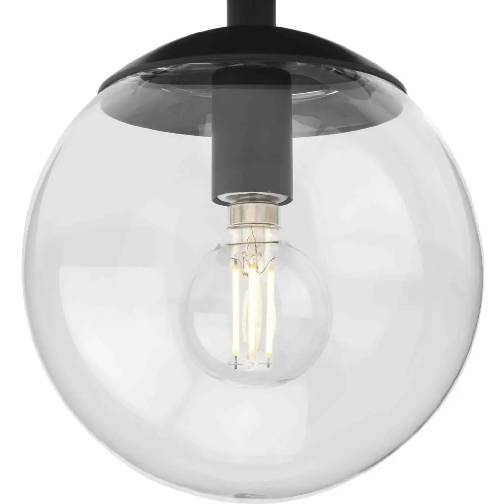 Long lines ending in a clear glass globe shade defines the Atwell Close-to-Ceiling fixture's modern aesthetic. One central stem is capped by clear glass, creating bright illumination from the light source glowing within. Atwell fits beautifully into mid-century modern and contemporary settings, delivering ambient illumination to bedrooms, halls and foyers and kitchens.