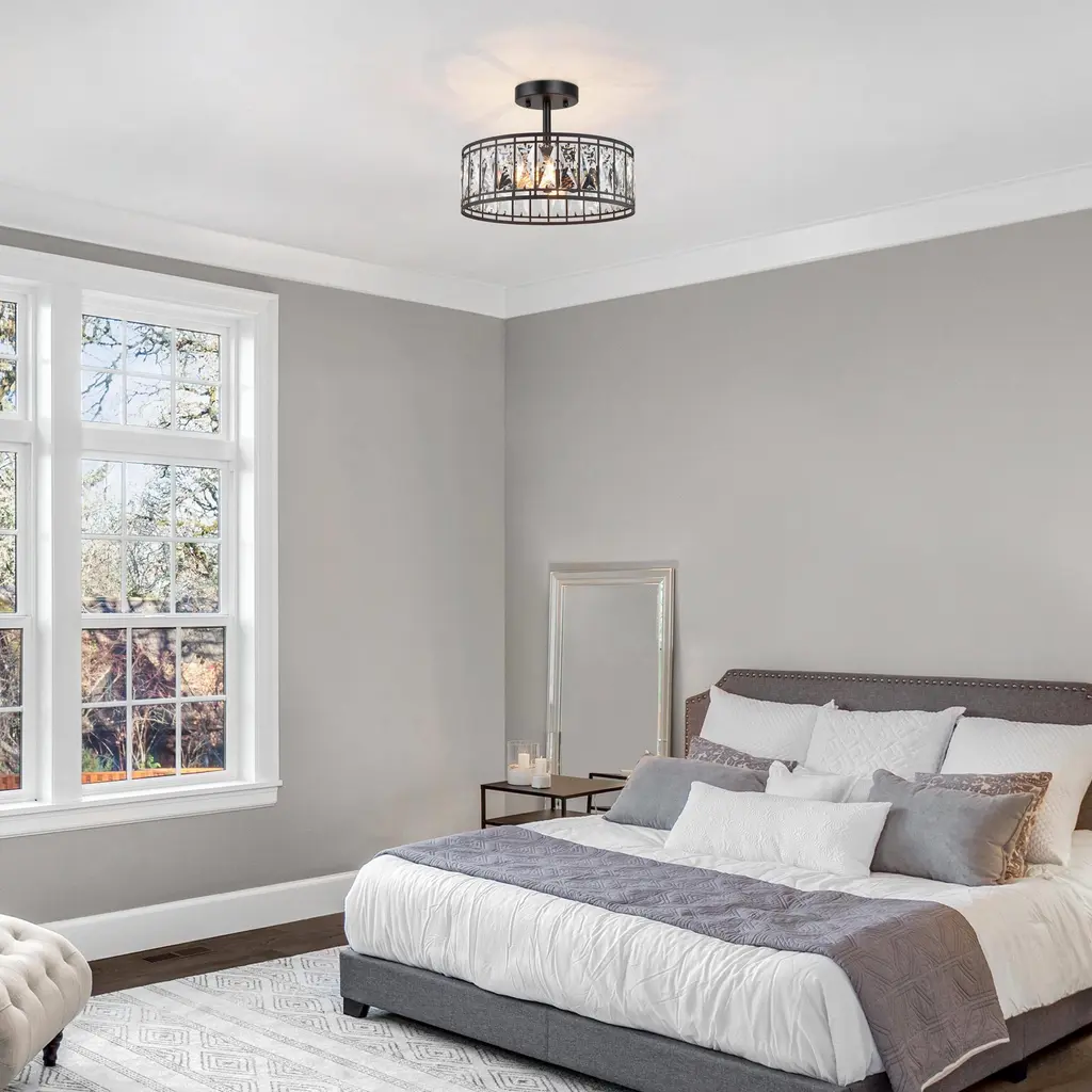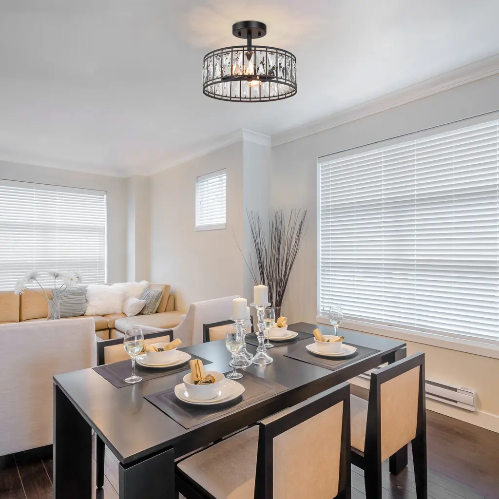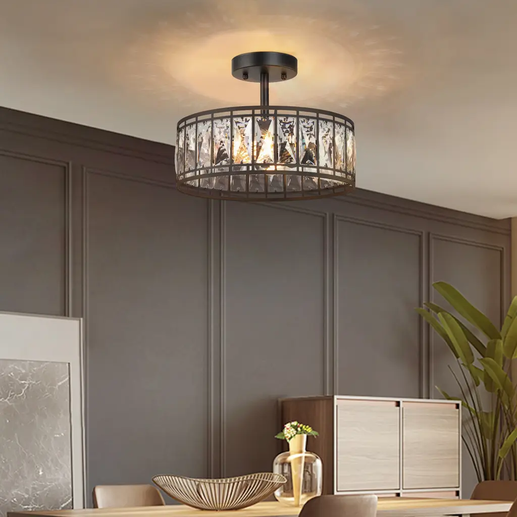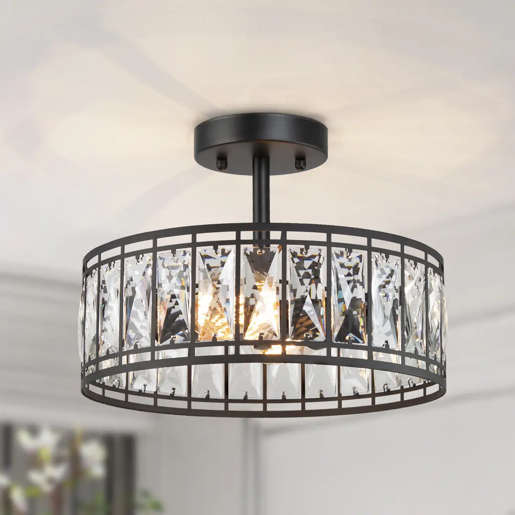 Aulia Modern Crystal 2-Light Drum Semi Flush Mount Black Ceiling Light - 12.5'' D X 9.5'' H - 12.5'' D X 9.5'' H - Black