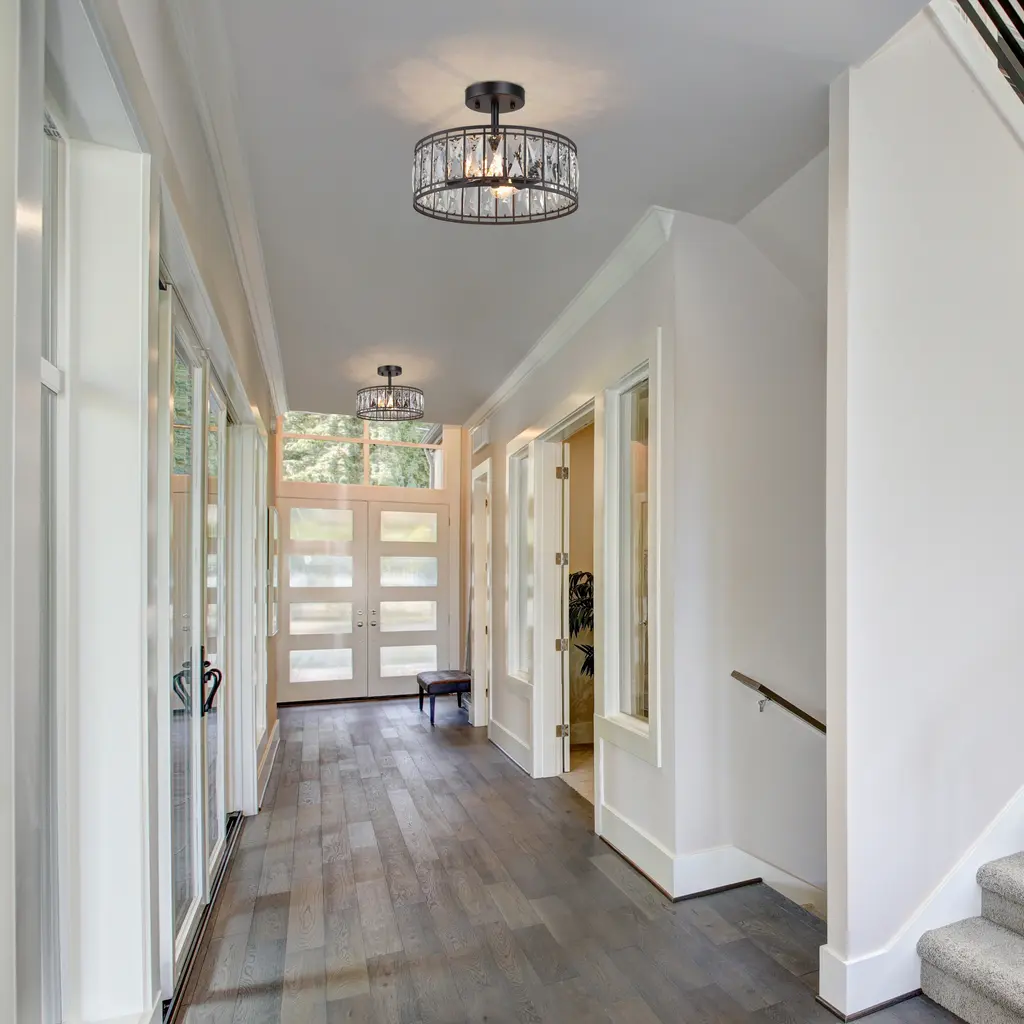 Want to go modern and elevate your home decor? This gorgeous flush mount is here to really help. Sure to make a splash in any setting, it is a metal drum frame surrounded by shimmering crystals for a glint of glamour. Try hanging it in your kitchen, dining room or entryway for more wow moments. Aulia Crystal CollectionFeatures:Specifications: