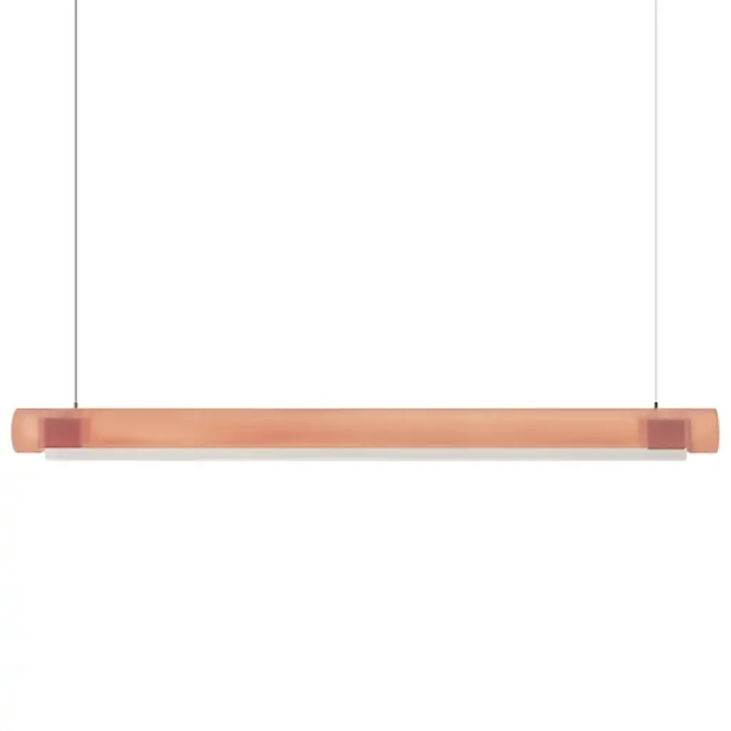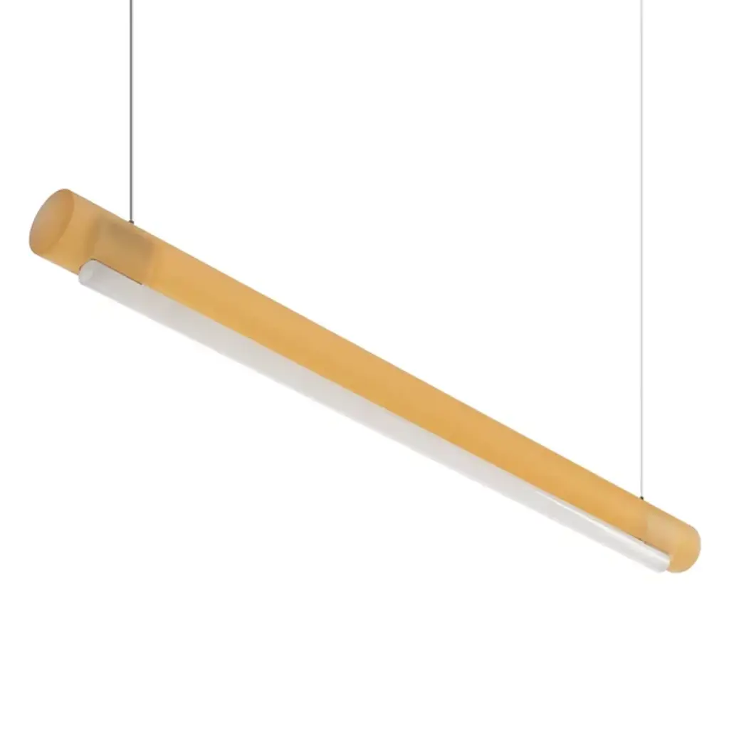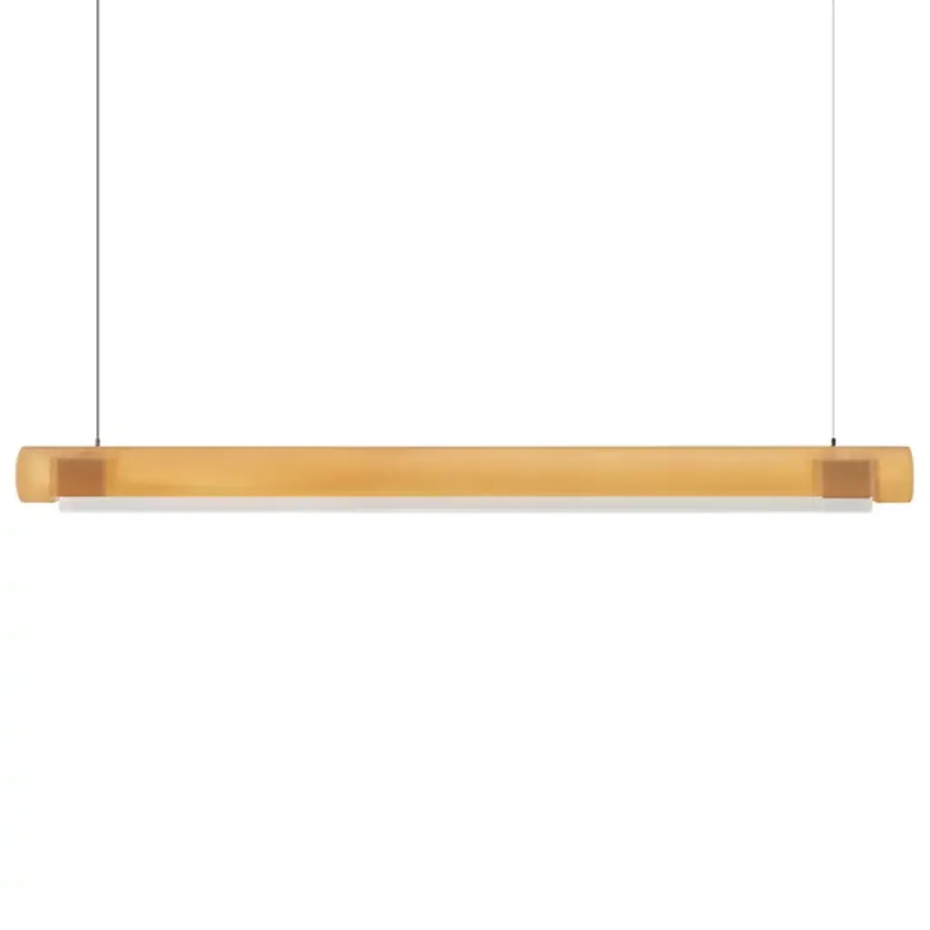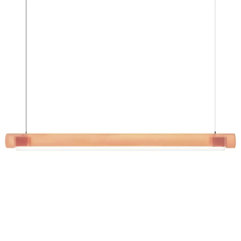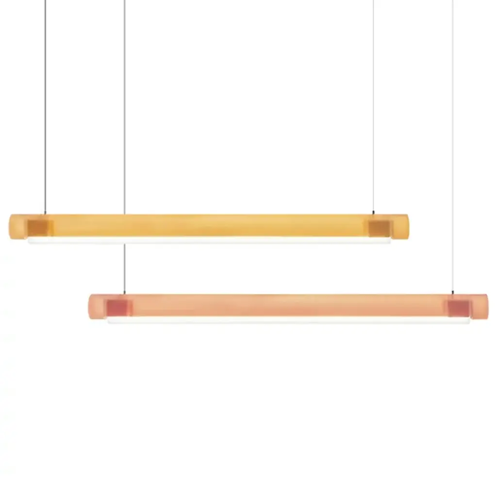 Transform open interiors with the organic artistry of the Aura LED Linear Suspension from Established & Sons. A mix of contemporary simplicity and Mid-Century Modern refinement, this Sabine Marcelis design leverages her experience with cast translucent materials, relying on a cylinder-shaped bar suspended via a cable that houses LED lamping within. The polyester and acrylic structures are recyclable and soften direct light through their translucent material, casting a softer ambiance that can work in larger living spaces or even a home office.