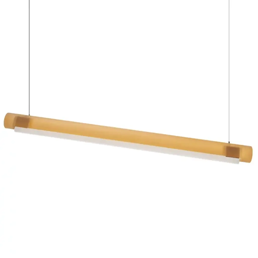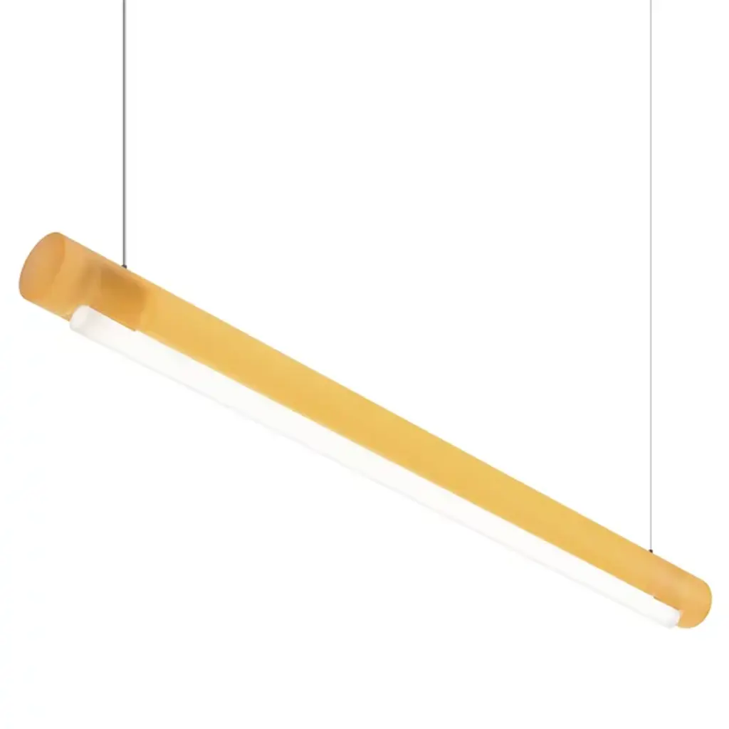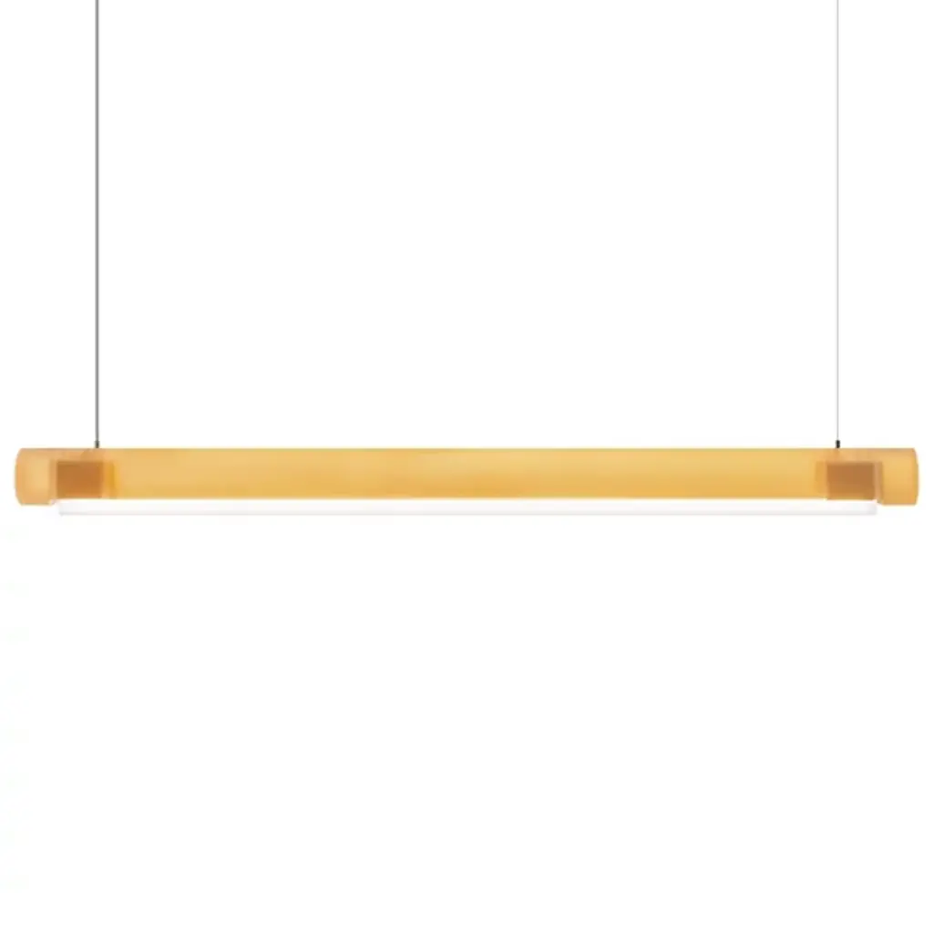 Transform open interiors with the organic artistry of the Aura LED Linear Suspension from Established & Sons. A mix of contemporary simplicity and Mid-Century Modern refinement, this Sabine Marcelis design leverages her experience with cast translucent materials, relying on a cylinder-shaped bar suspended via a cable that houses LED lamping within. The polyester and acrylic structures are recyclable and soften direct light through their translucent material, casting a softer ambiance that can work in larger living spaces or even a home office.