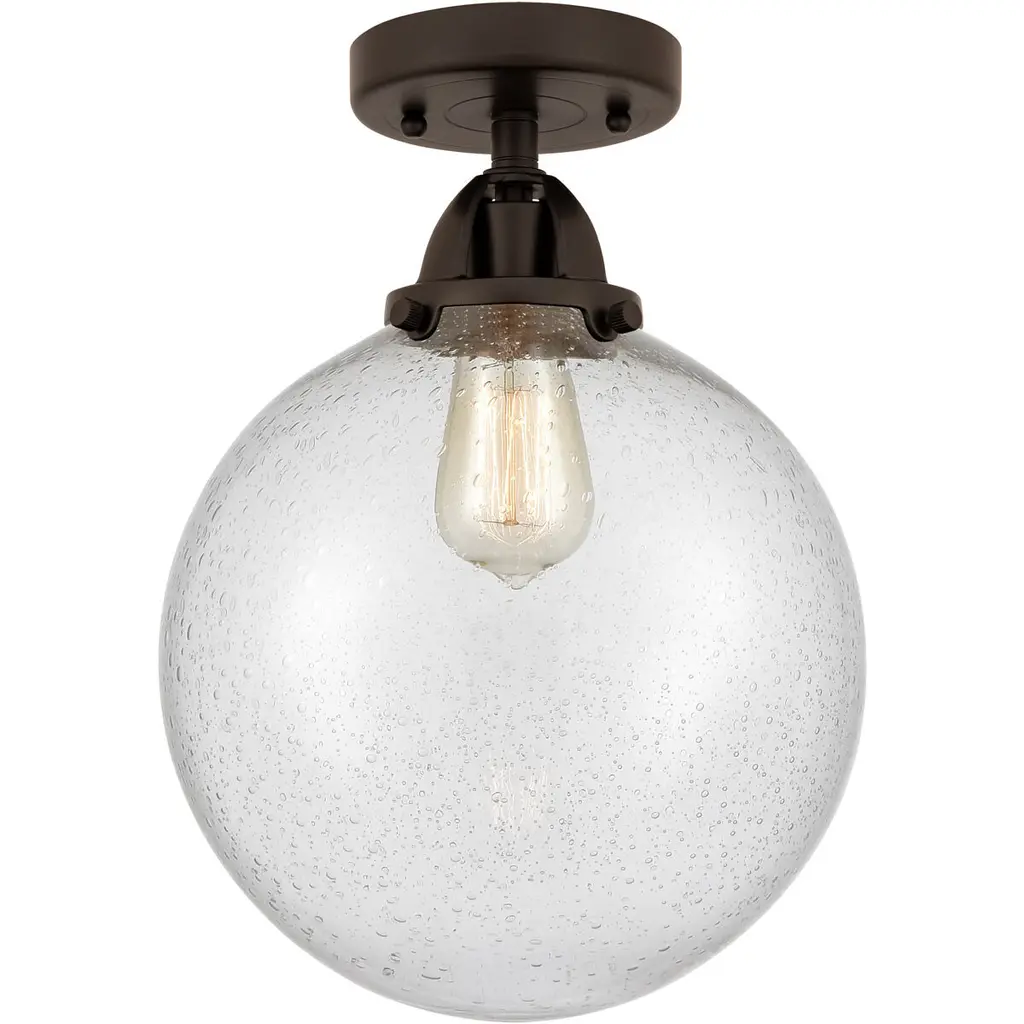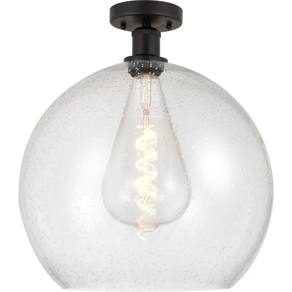 This Olde Bronze 1 light semi flush ceiling light from the Avery collection make a simple yet elegant statement featuring a clear seeded globe that adds the perfect finishing touch.