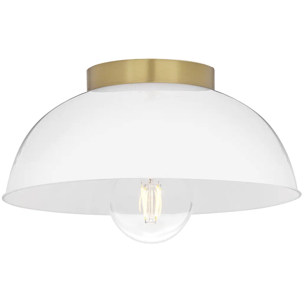 Avery 1 Light 11 Inch Aged Brass Semi Flush Ceiling Light In Cream Metal