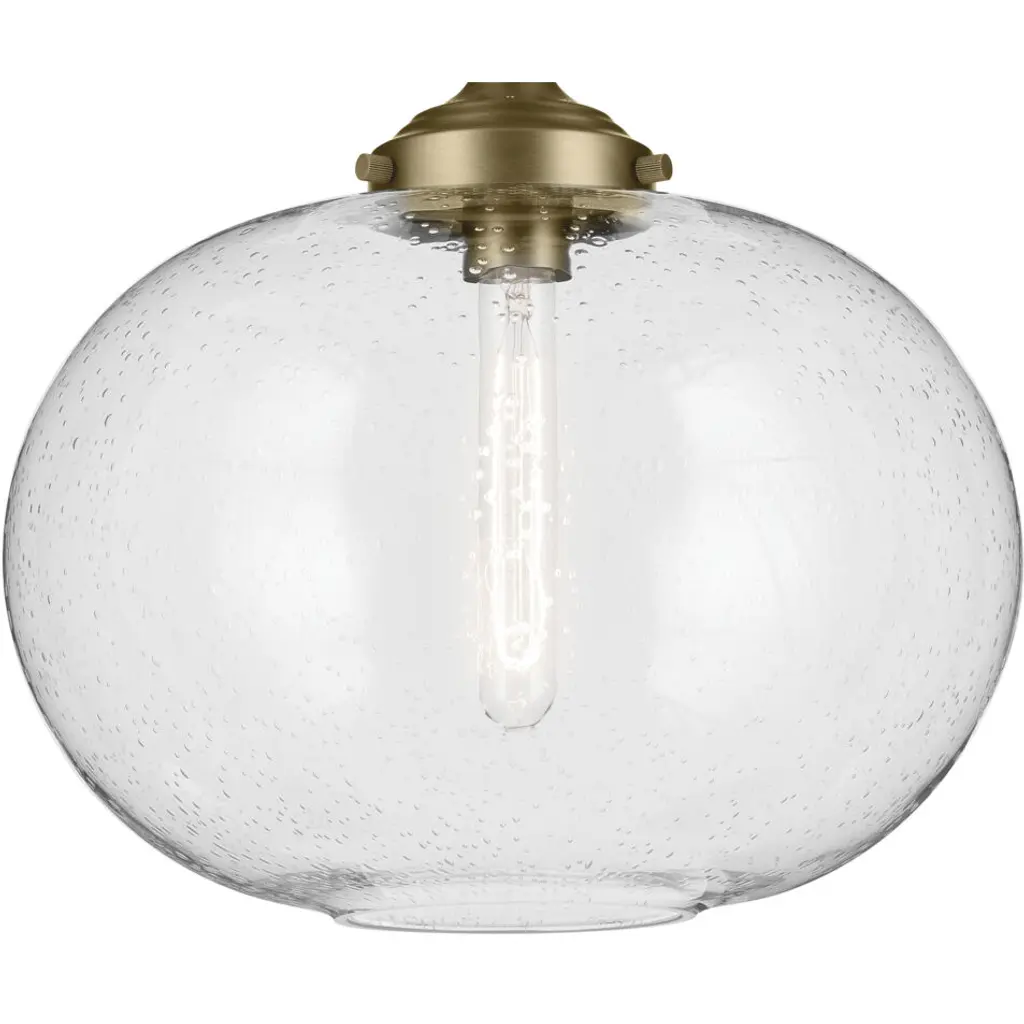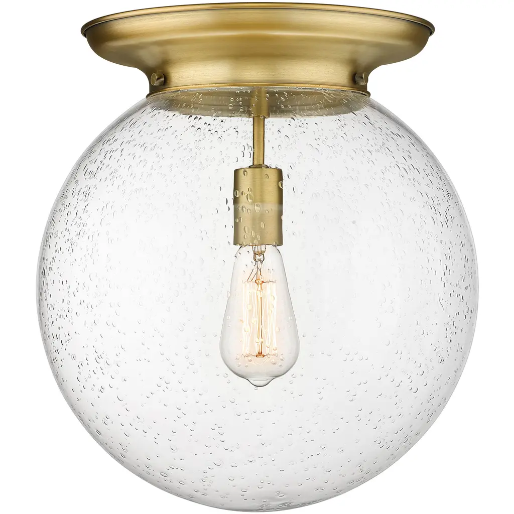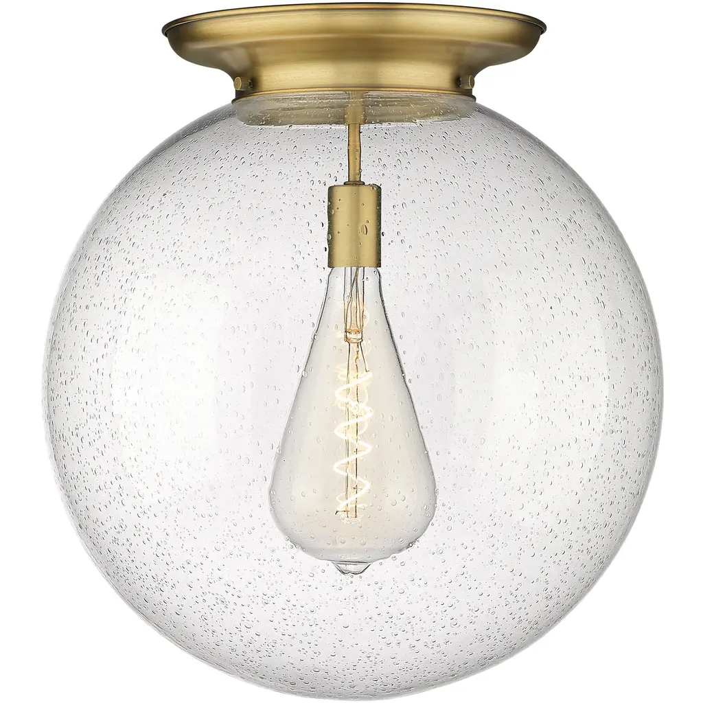 Offering convenience and ease in coordinating with other lighting options, the Avery 1 Light Flush Mount is truly as versatile as it is beautiful. Avery's on-trend natural brass finish creates a classic yet dramatic statement to any space while it complements a variety of decor, including industrial aesthetics. Its clear seeded glass adds to its charm by providing a beautiful, ambient lighting to the entire room and is easy to remove for convenience and ease of cleaning and replacement.