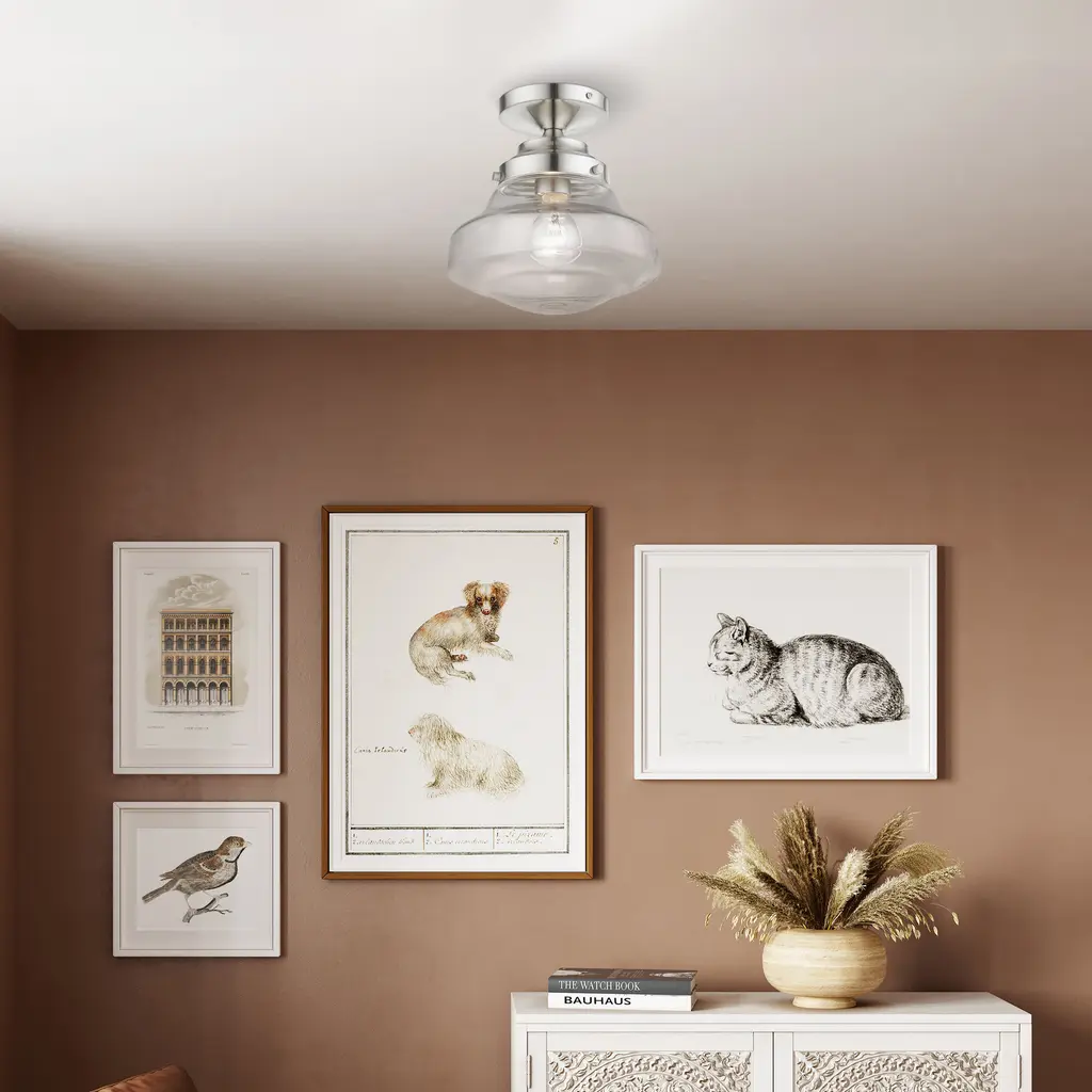 Avondale 1 Light 9 Inch Brushed Nickel Semi-Flush Ceiling Light