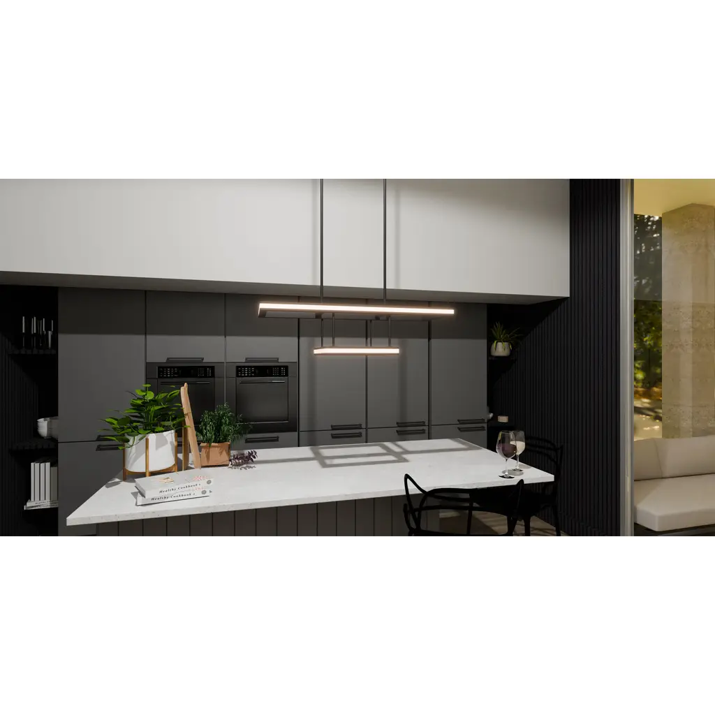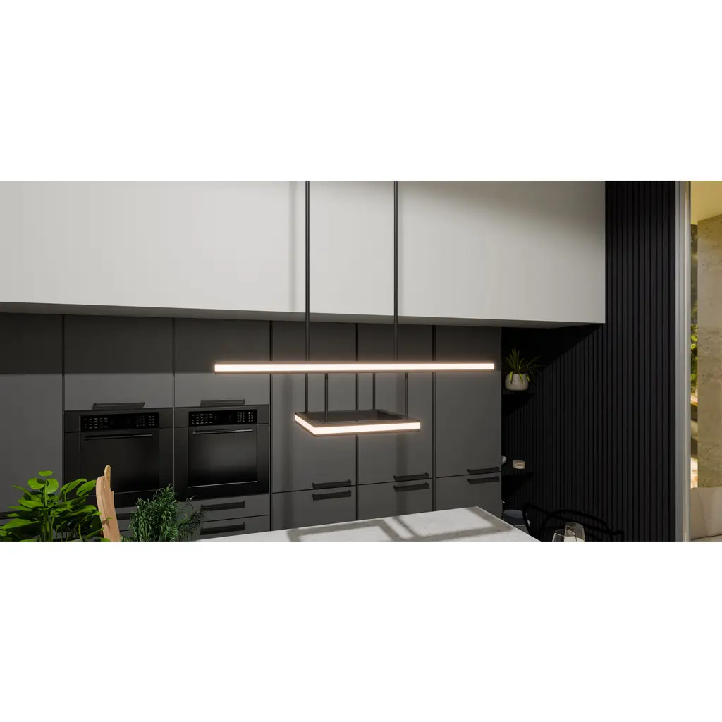 Contemporary and sleek, Aydin makes a perfect addition to the Platinum by Quoizel collection. The island light offers a multi-layered sculptural design in a strong matte black finish. A built-in LED light source completes the modern look and creates a soft glow - perfect over a kitchen island, table or desk.