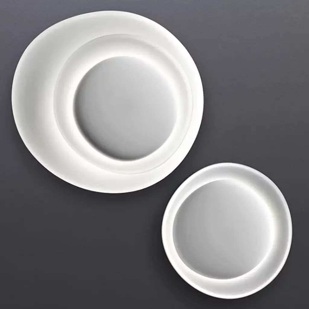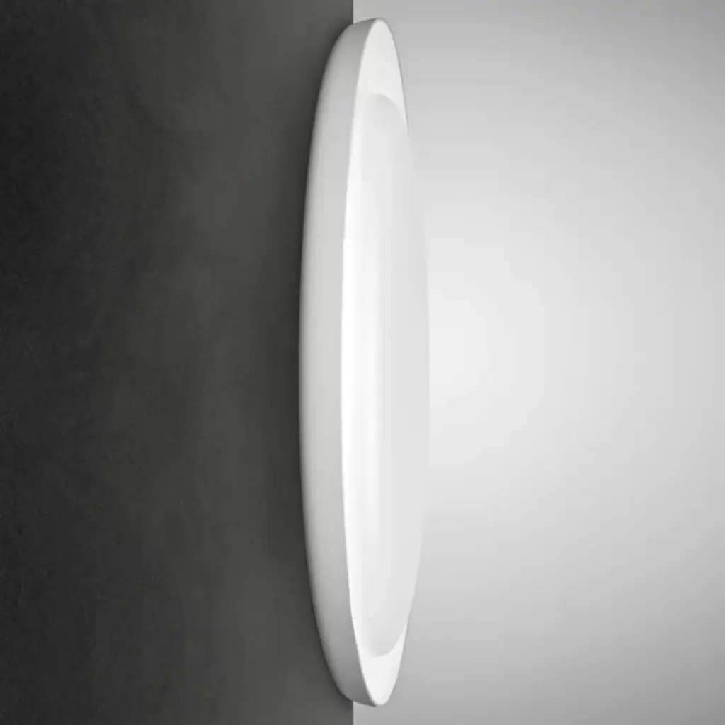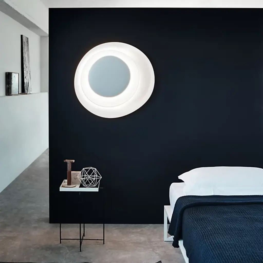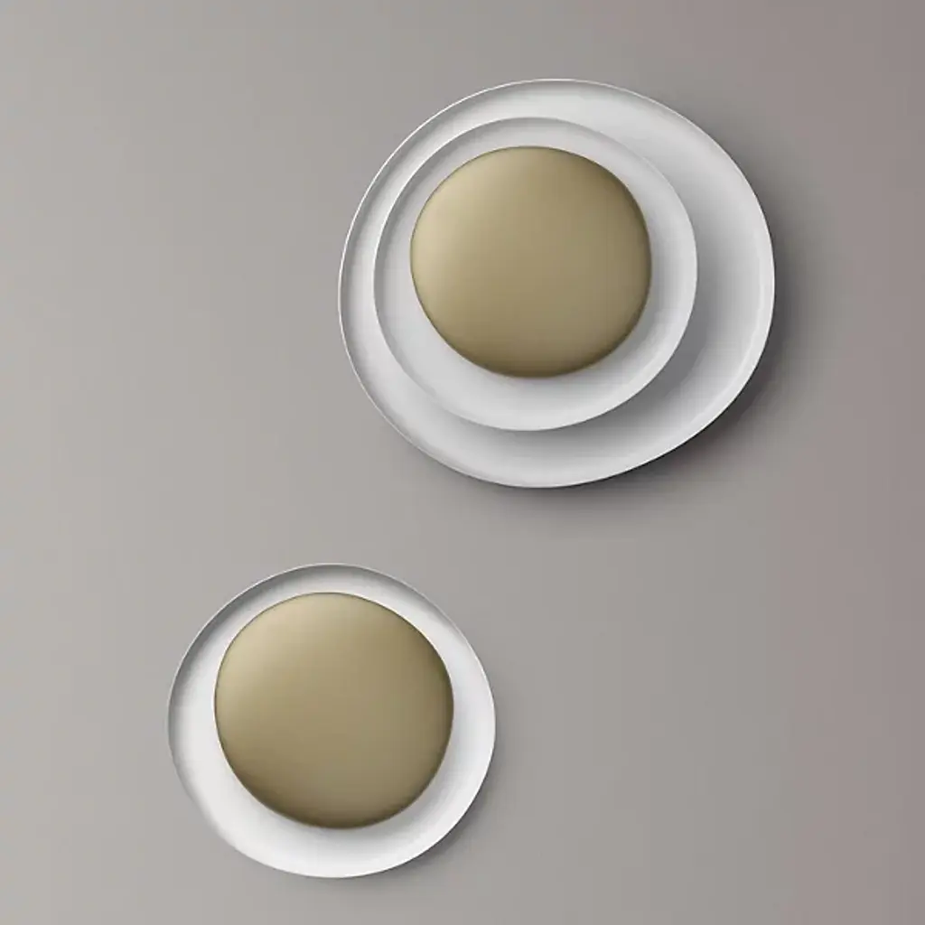 The Foscarini Bahia Wall/Ceiling Light seems to have harnessed the shape of ripples on water, featuring layered disks of indirect light. Composed of white polycarbonate, the central diffuser obscures the LED light source, revealing halos of light as the rings pan outward. An intriguing source of illumination for both wall and ceiling applications, the slender profile provides both functional and artful light that craves to be installed in modular applications.