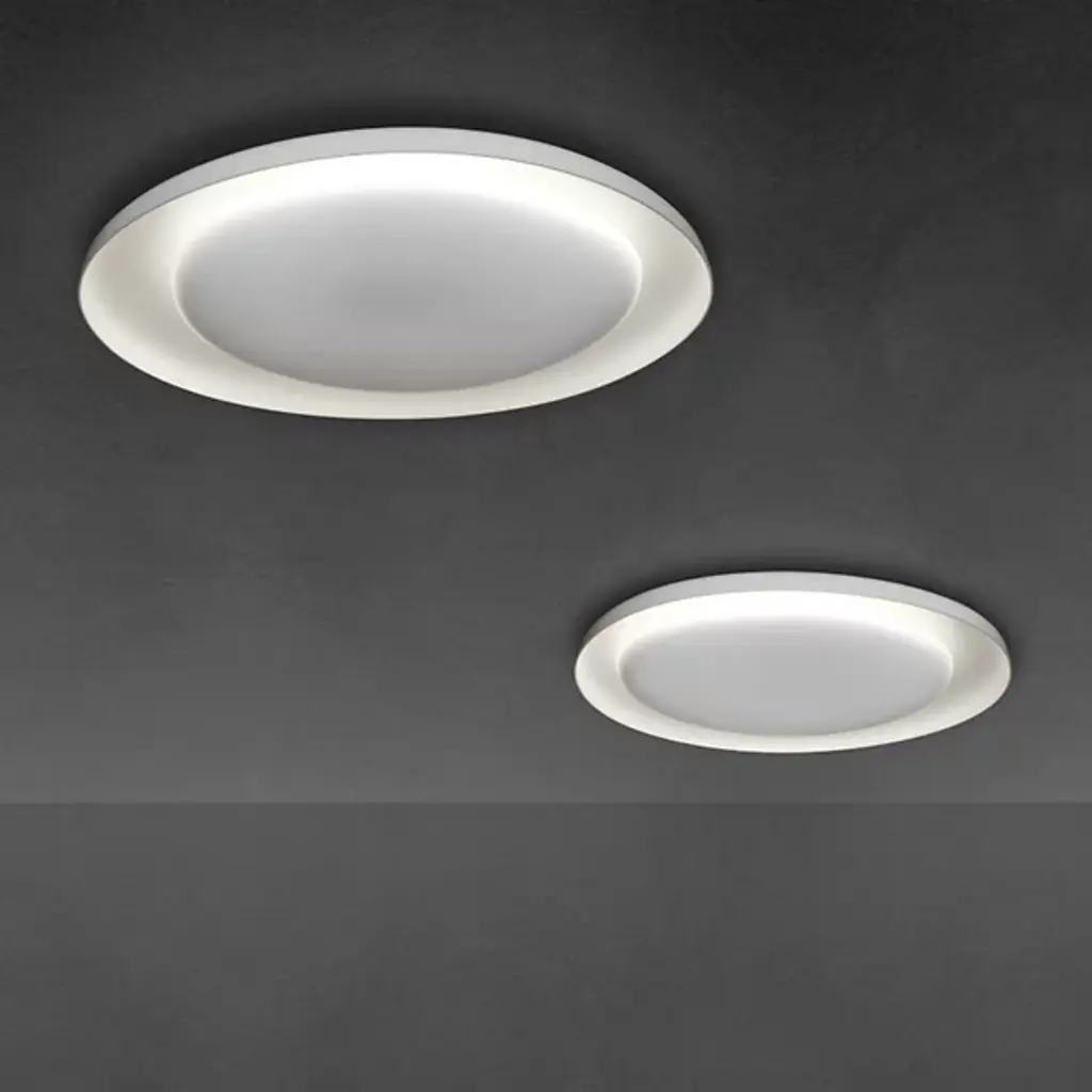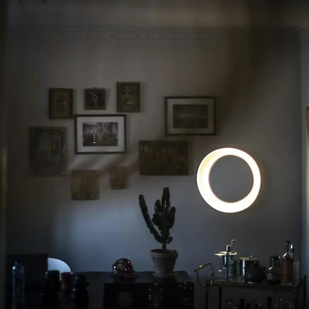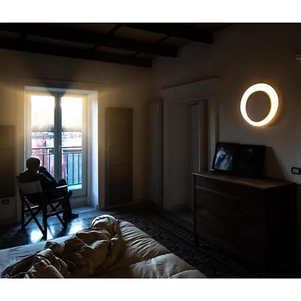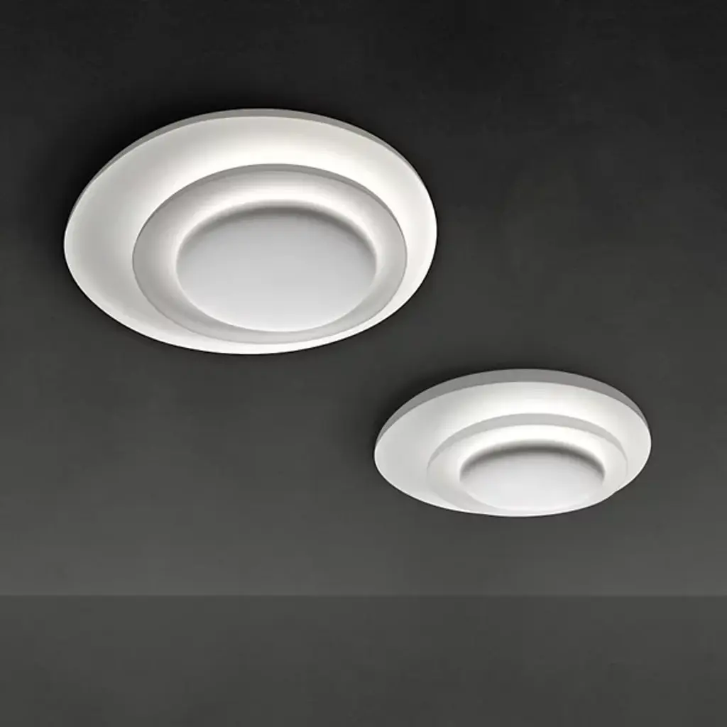 The Foscarini Bahia Wall/Ceiling Light seems to have harnessed the shape of ripples on water, featuring layered disks of indirect light. Composed of white polycarbonate, the central diffuser obscures the LED light source, revealing halos of light as the rings pan outward. An intriguing source of illumination for both wall and ceiling applications, the slender profile provides both functional and artful light that craves to be installed in modular applications.