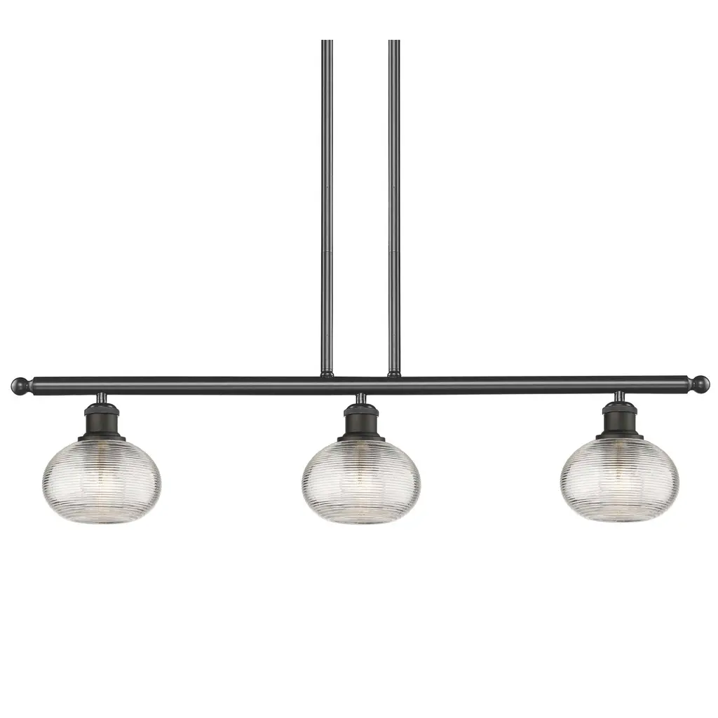 The Athens 3 Light Island Light is part of the Ballston Collection. Includes 10 Feet Wire. Includes 2-6 and 4-12 inch Stems With Solid Brass 90 Degree Hang Straight Swivels for Sloped Ceilings. Solid Brass 90 Degree Hang Straight Swivel for Sloped Ceilings Included