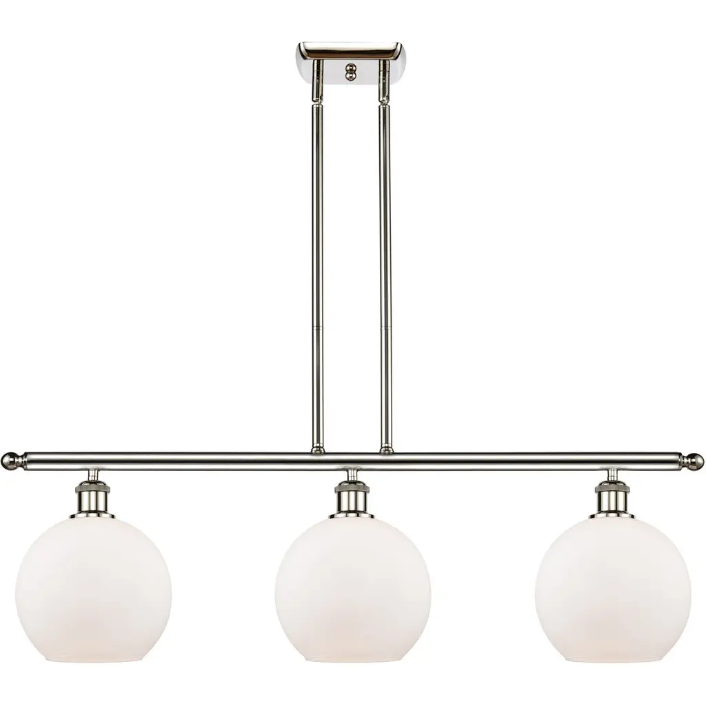The Athens 4 Light Island Light is part of the Ballston Collection. Includes 10 Feet Wire. Includes 2-6 and 4-12 inch Stems With Solid Brass 90 Degree Hang Straight Swivels for Sloped Ceilings. Solid Brass 90 Degree Hang Straight Swivel for Sloped Ceilings Included