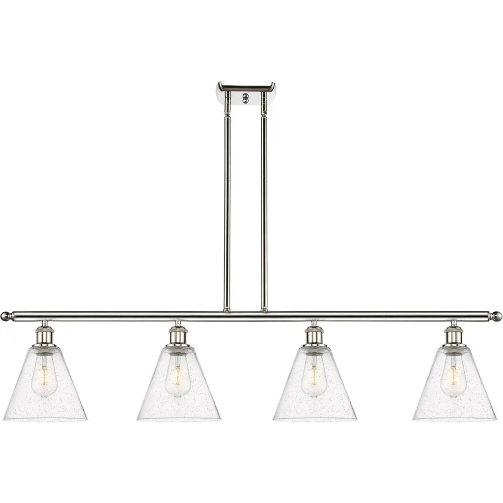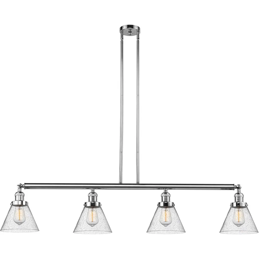 Ballston Ballston Cone 4 Light 48 Inch Polished Chrome Island Light Ceiling Light In Seedy Glass