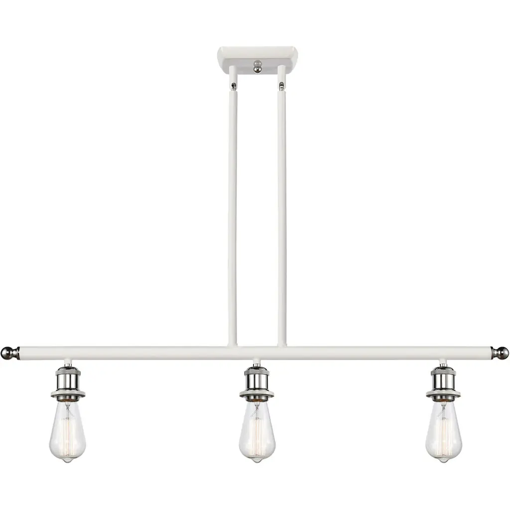 The Bare Bulb 3 Light Island Light is part of the Ballston Collection. Includes 10 Feet Wire. Includes 2-6 and 4-12 inch Stems With Solid Brass 90 Degree Hang Straight Swivels for Sloped Ceilings. Solid Brass 90 Degree Hang Straight Swivel for Sloped Ceilings Included