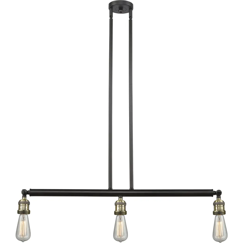 The Bare Bulb 3 Light Island Light is part of the Ballston Collection. Includes 10 Feet Wire. Includes 2-6 and 4-12 inch Stems With Solid Brass 90 Degree Hang Straight Swivels for Sloped Ceilings. Solid Brass 90 Degree Hang Straight Swivel for Sloped Ceilings Included