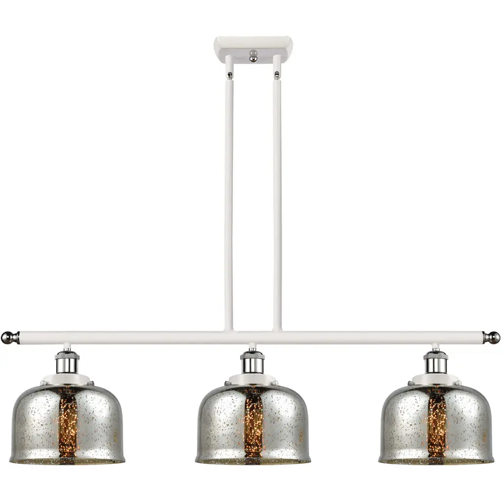 The Large Bell 3 Light Island Light is part of the Ballston Collection. Includes 10 Feet Wire. Includes 2-6 and 4-12 inch Stems. Additional Stems sold separately.. Solid Brass 90 Degree Hang Straight Swivel for Sloped Ceilings Included