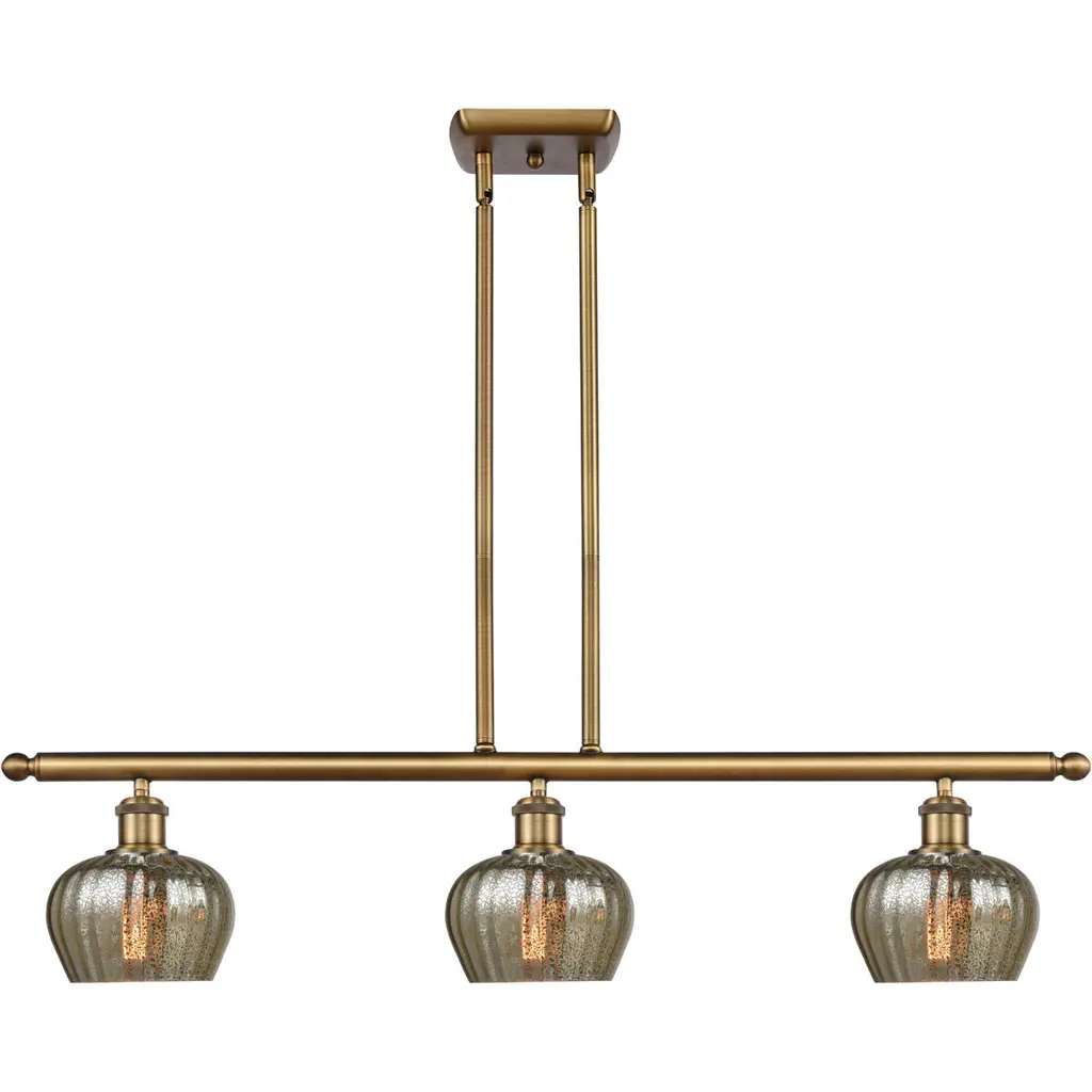 The Small Bell 3 Light Island Light is part of the Ballston Collection. Includes 10 Feet Wire. Includes 2-6 and 4-12 inch Stems With Solid Brass 90 Degree Hang Straight Swivels for Sloped Ceilings. Solid Brass 90 Degree Hang Straight Swivel for Sloped Ceilings Included